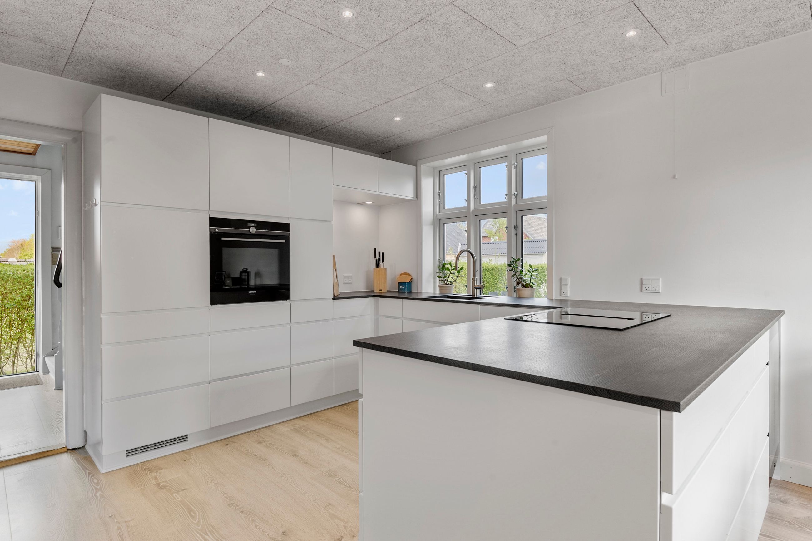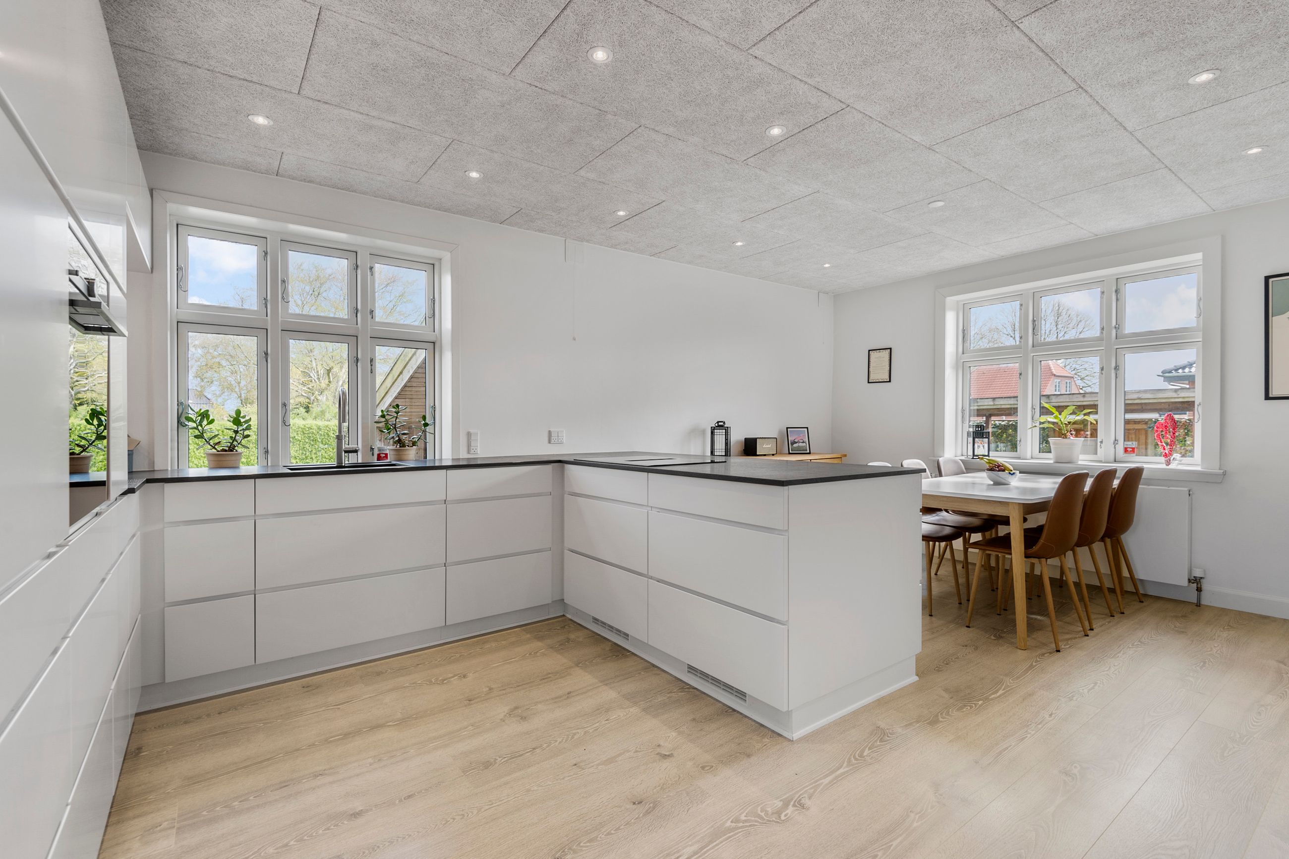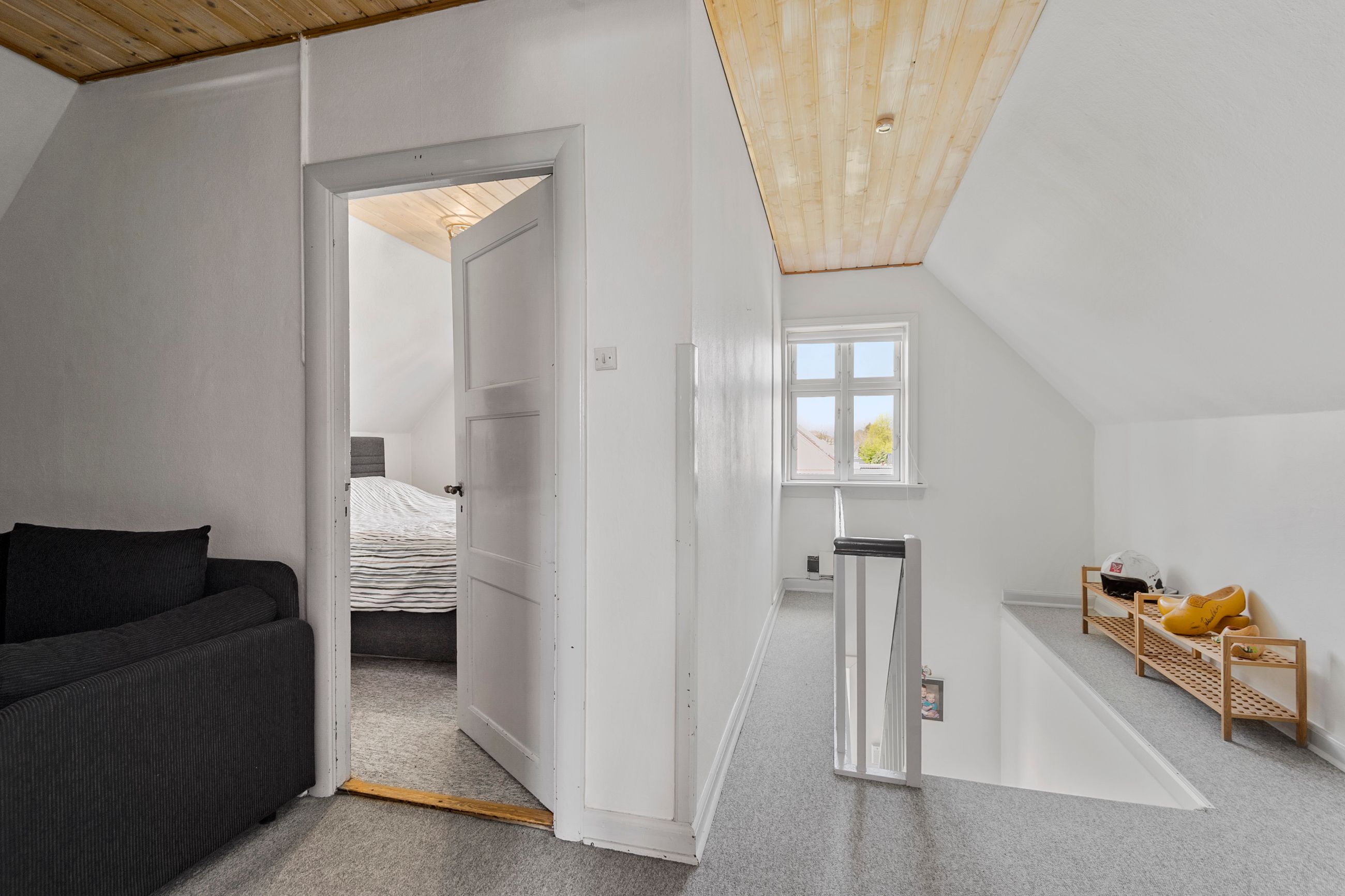 I stueetagen møder du et lyst badeværelse, et flot Kvik-køkken med god skabsplads og et naturligt samlingspunkt i form af en rummelig spisestue og hyggelig opholdsstue. På førstesalen finder du tre gode værelser – ideelle som børneværelser, kontor eller soveværelse – alt efter behov. Kælderen byder på flere disponible rum med mange anvendelsesmuligheder, f.eks. som hobbyrum, opbevaring eller værksted.