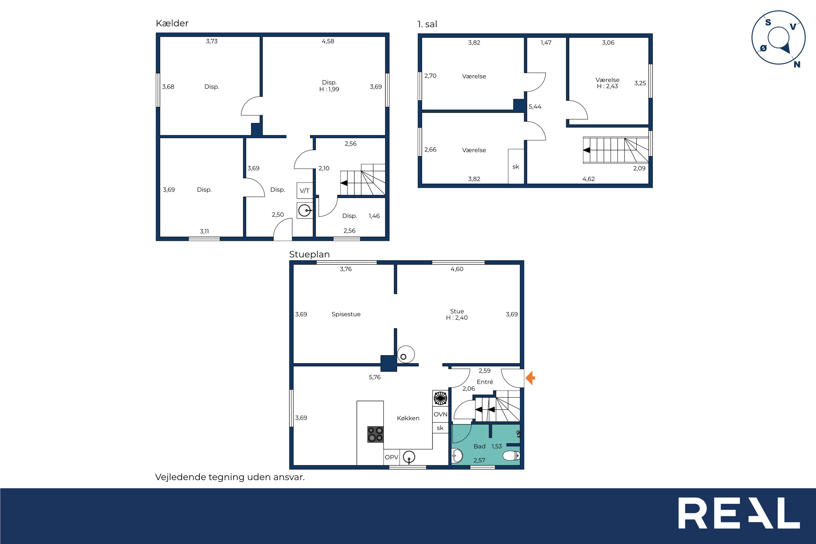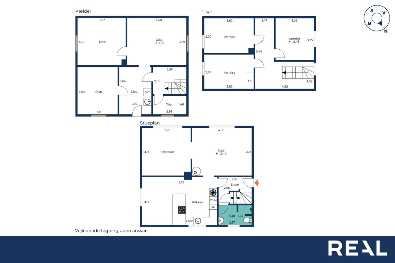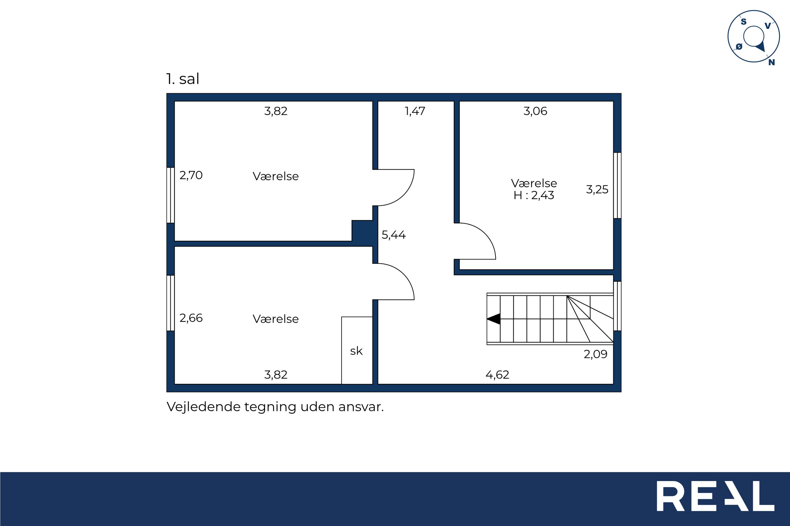 I stueetagen møder du et lyst badeværelse, et flot Kvik-køkken med god skabsplads og et naturligt samlingspunkt i form af en rummelig spisestue og hyggelig opholdsstue. På førstesalen finder du tre gode værelser – ideelle som børneværelser, kontor eller soveværelse – alt efter behov. Kælderen byder på flere disponible rum med mange anvendelsesmuligheder, f.eks. som hobbyrum, opbevaring eller værksted.
