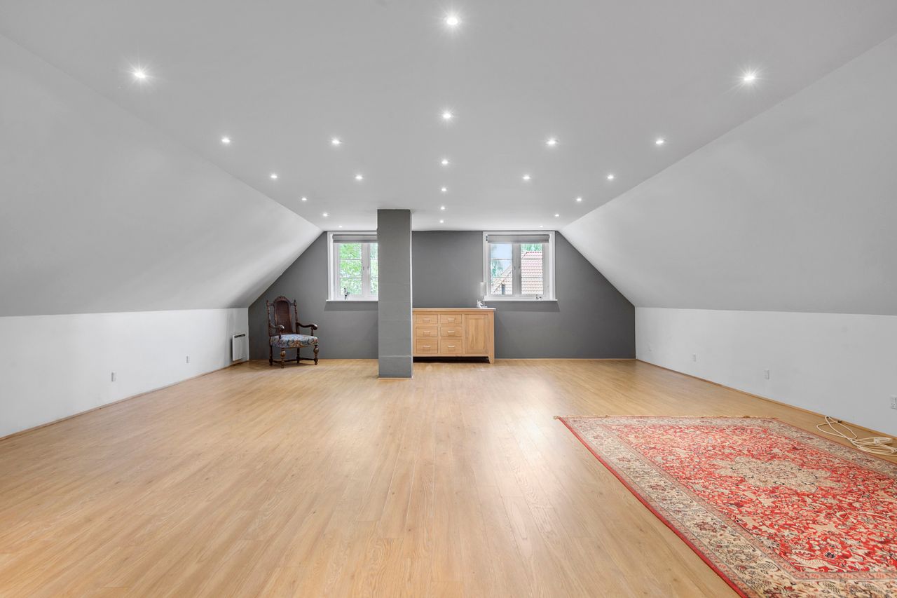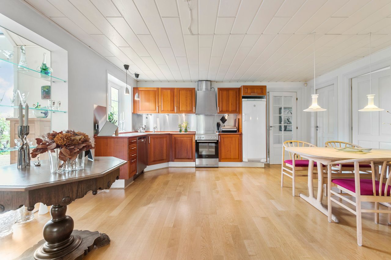 Boligen rummer fem store og lyse værelser, som let kan tilpasses både børnefamilien, hjemmearbejdspladsen
