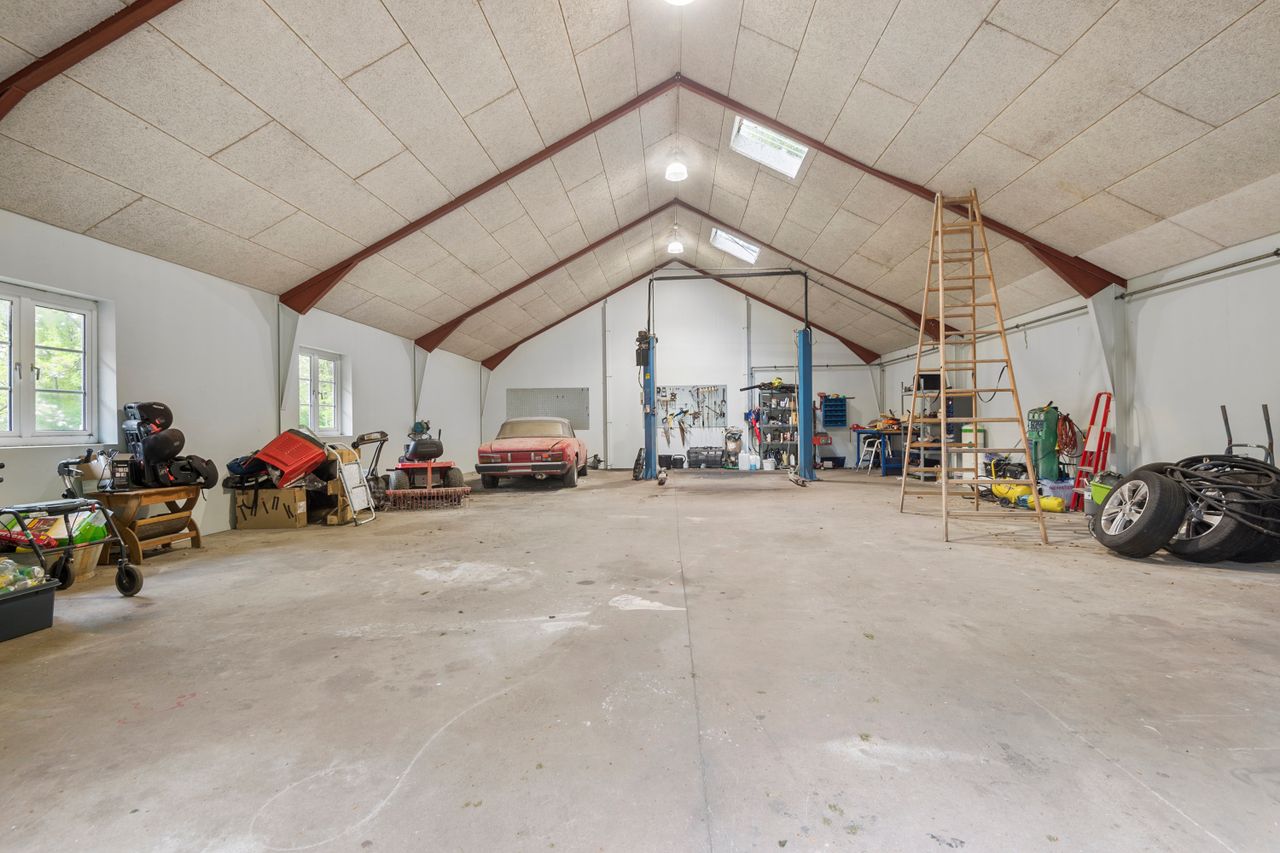 Prikken over i'et er den 150 kvadratmeter store garage/værksted, som giver gode muligheder for