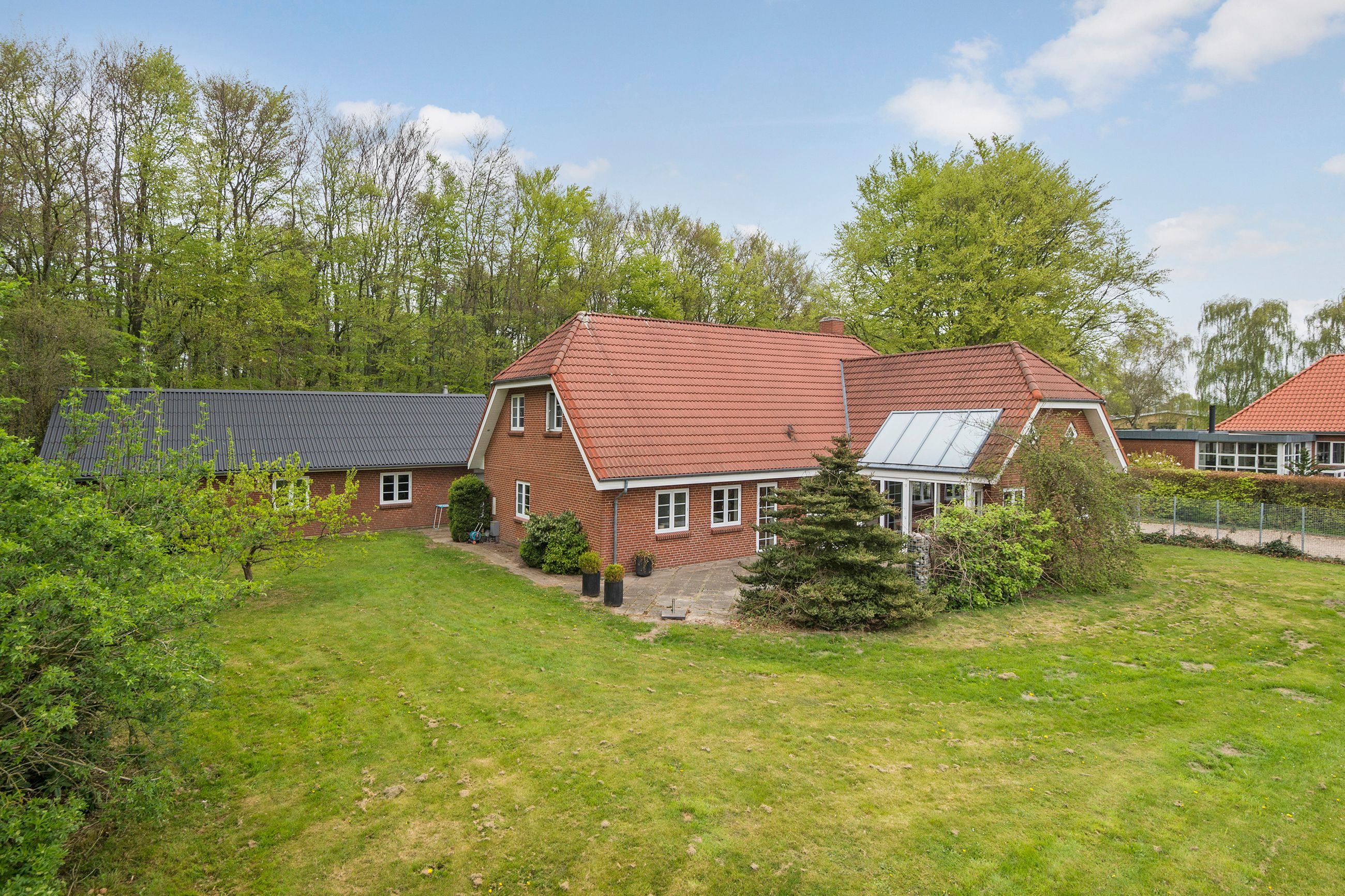 Ejendommen er placeret på en skøn grund på hele 2.600 kvadratmeter, omgivet af grønne omgivelser, der