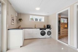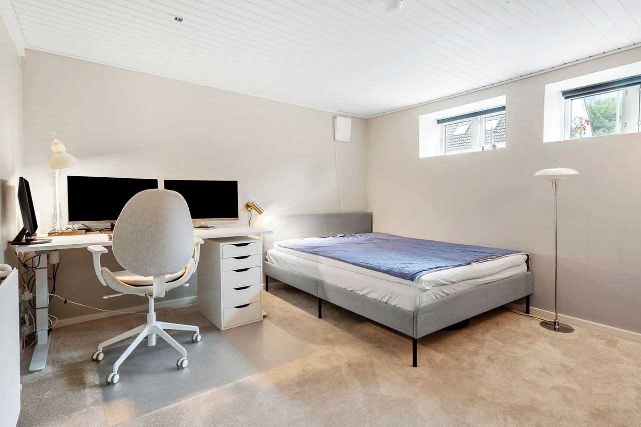 Kælderen byder på to gode disponible rum, der kan bruges til hobby, opbevaring eller hjemmekontor – mulighederne er mange. Her er også et praktisk bryggers samt endnu et pænt og opdateret badeværelse, hvilket gør kælderen til et værdifuldt supplement til boligen.