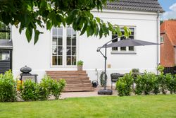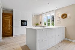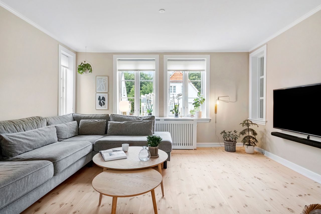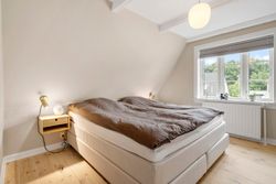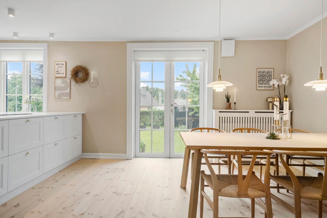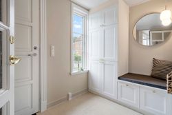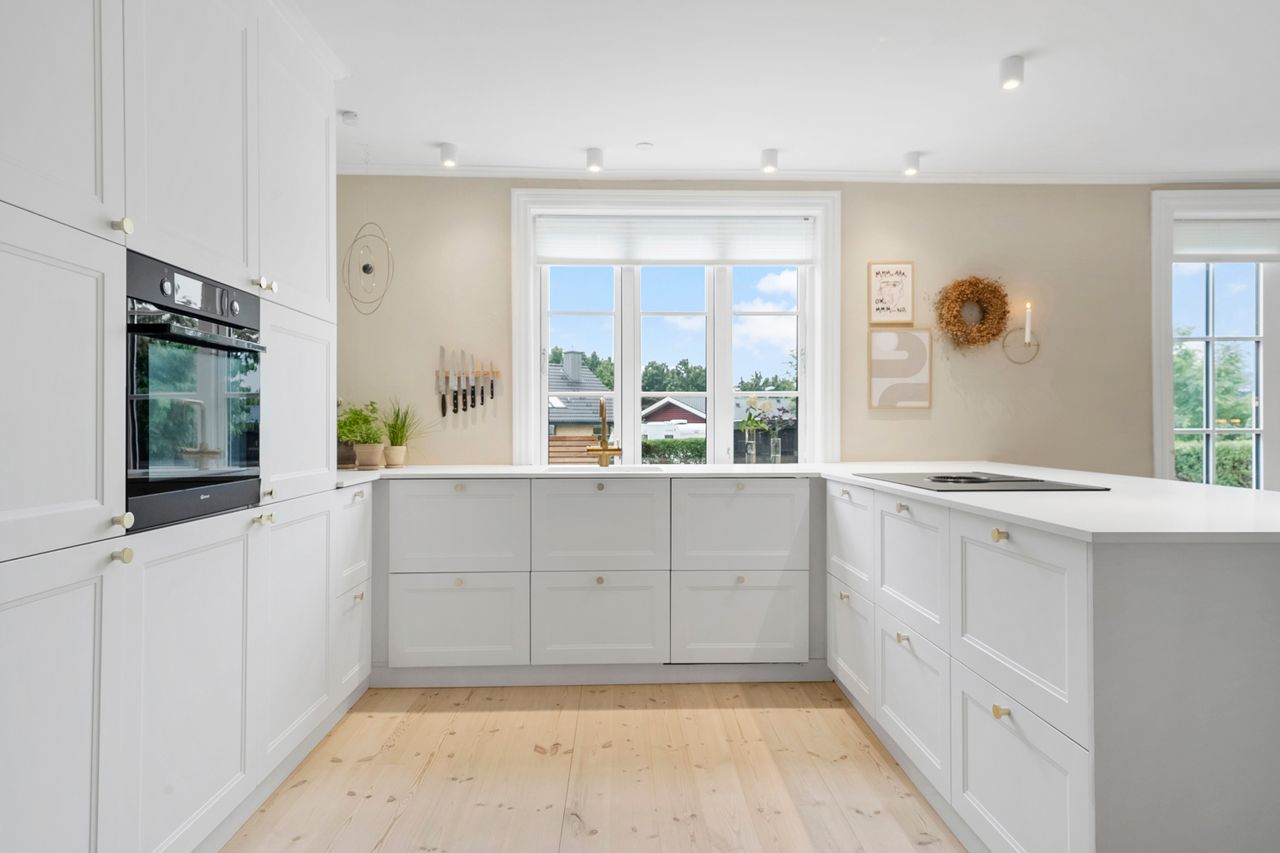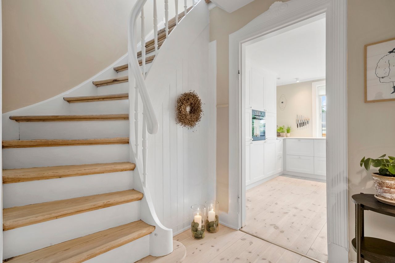 På første sal finder du tre store værelser, herunder to oplagte børneværelser og et lyst soveværelse. Et elegant og moderne badeværelse fuldender etagen og sikrer en velfungerende hverdag for familien.
