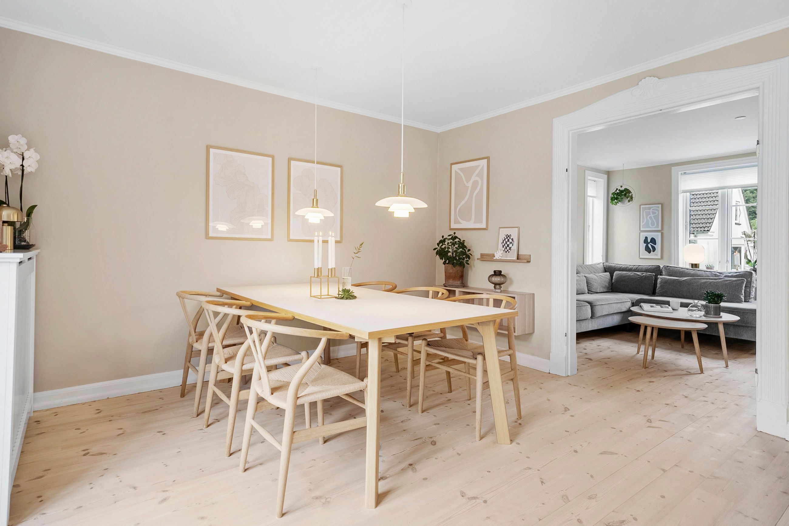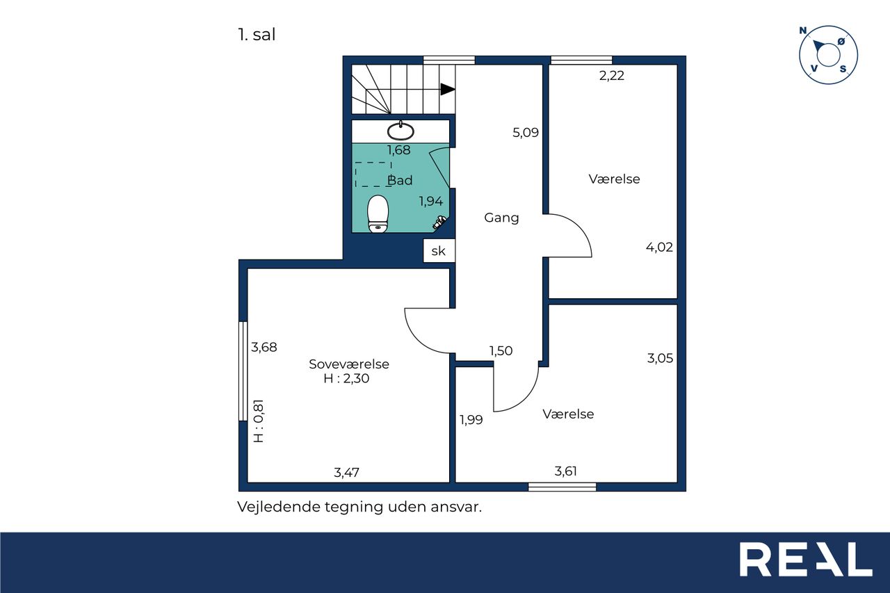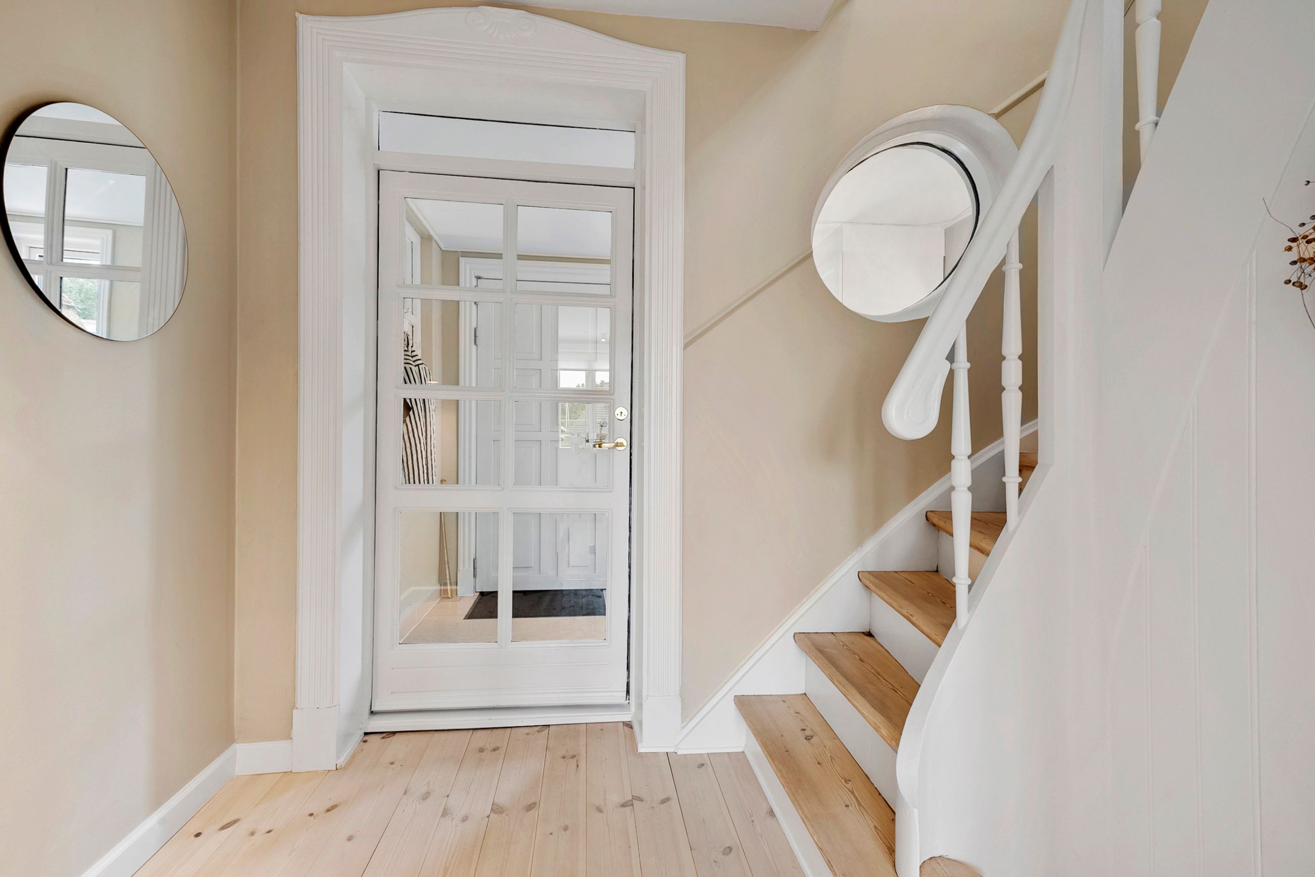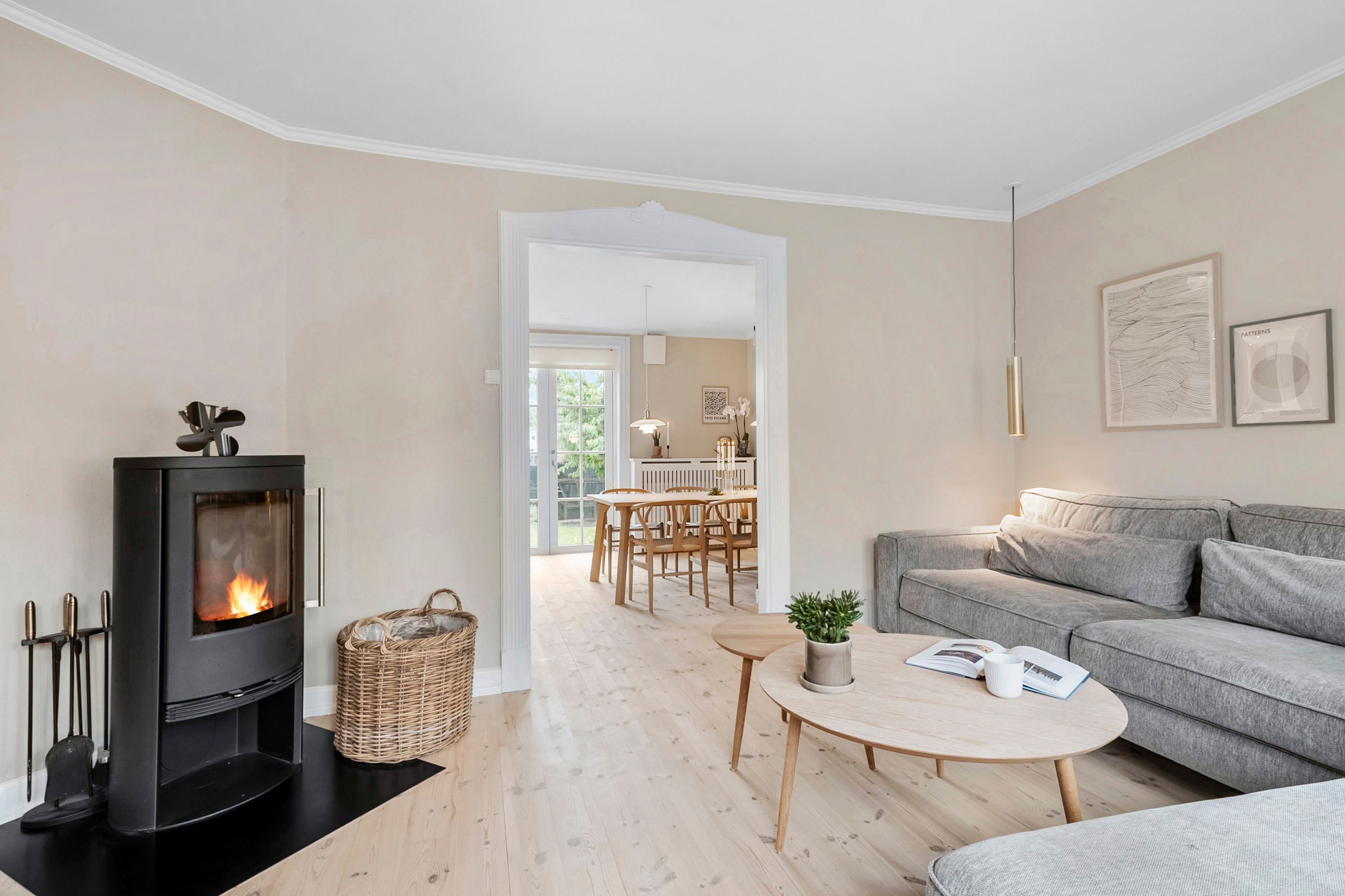 På første sal finder du tre store værelser, herunder to oplagte børneværelser og et lyst soveværelse. Et elegant og moderne badeværelse fuldender etagen og sikrer en velfungerende hverdag for familien.