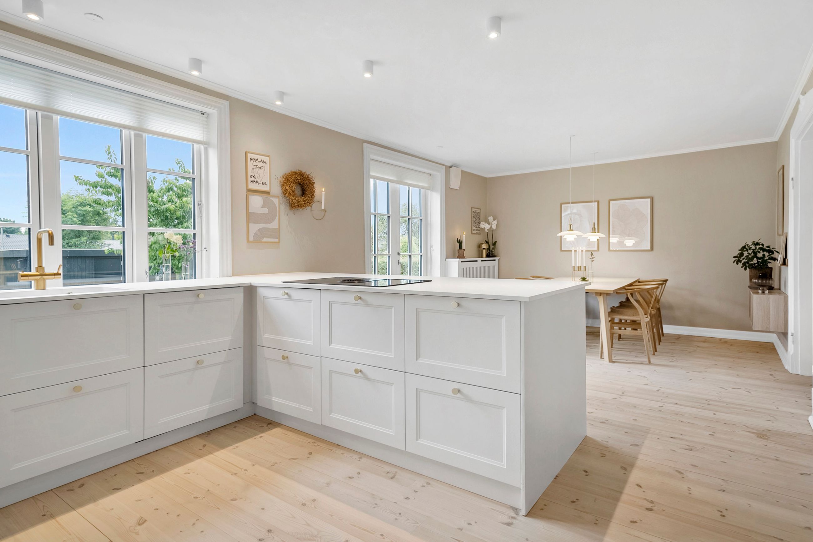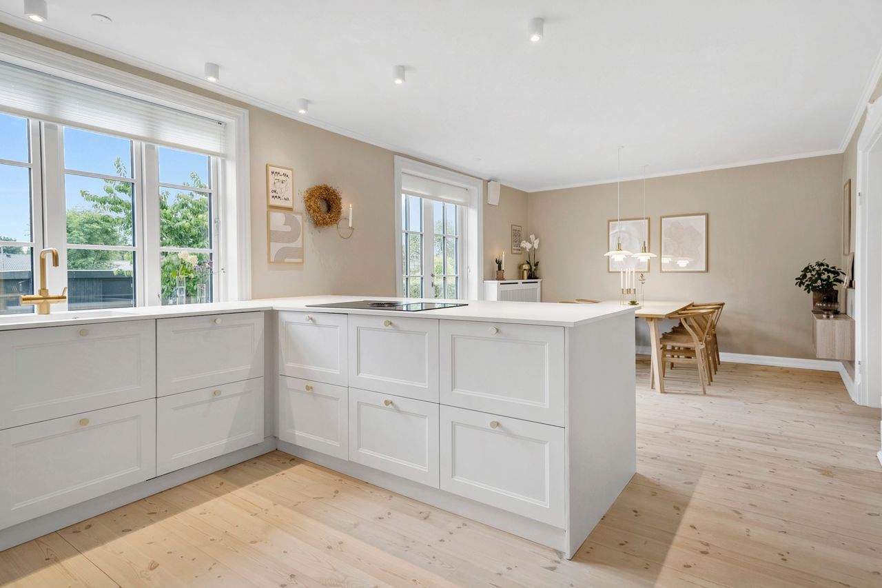 Når du træder ind i stueetagen, mødes du af en rummelig og indbydende entré, der fører dig direkte videre til boligens hjerte: et stilrent og moderne køkken/alrum med god plads til både hverdag og gæster. Herfra er der åben forbindelse til en lys og rummelig opholdsstue, hvor der er masser af plads til hygge og samvær.