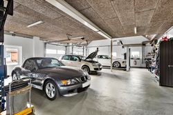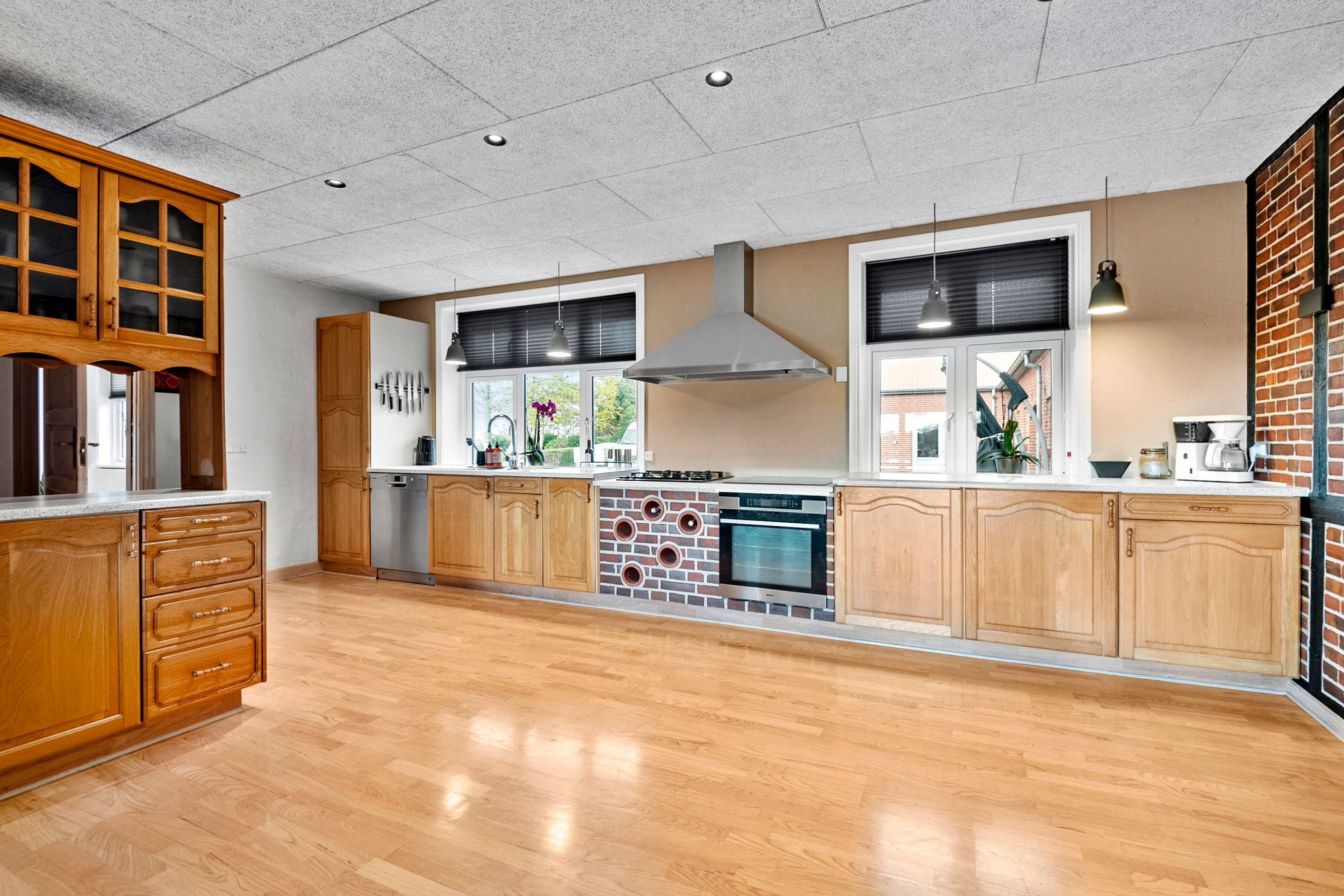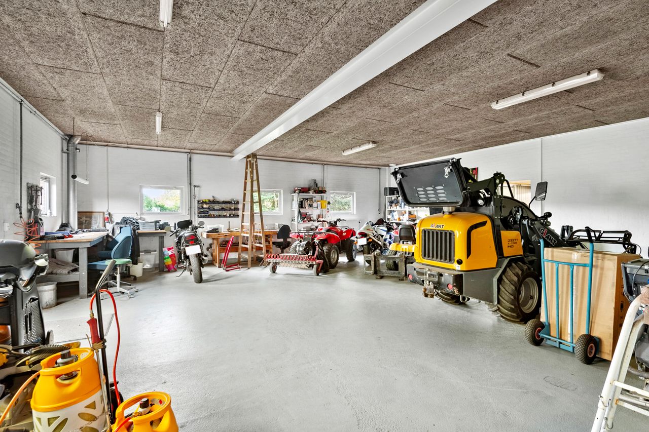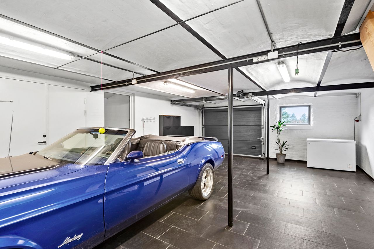 Ejendommen imponerer også med sine fede udbygninger, der blandt andet tæller garage, værksted og gildesal. Fra garagen er der direkte adgang til boligen, så du altid kan komme tørskoet indenfor. Værkstedet er ideelt til dig, der drømmer om at skrue i biler, dyrke hobbyer eller blot ønsker ekstra meget plads.