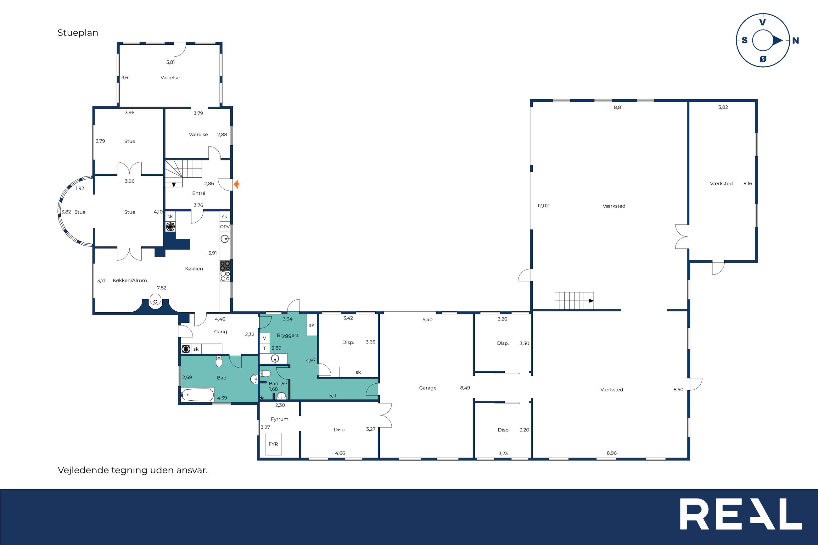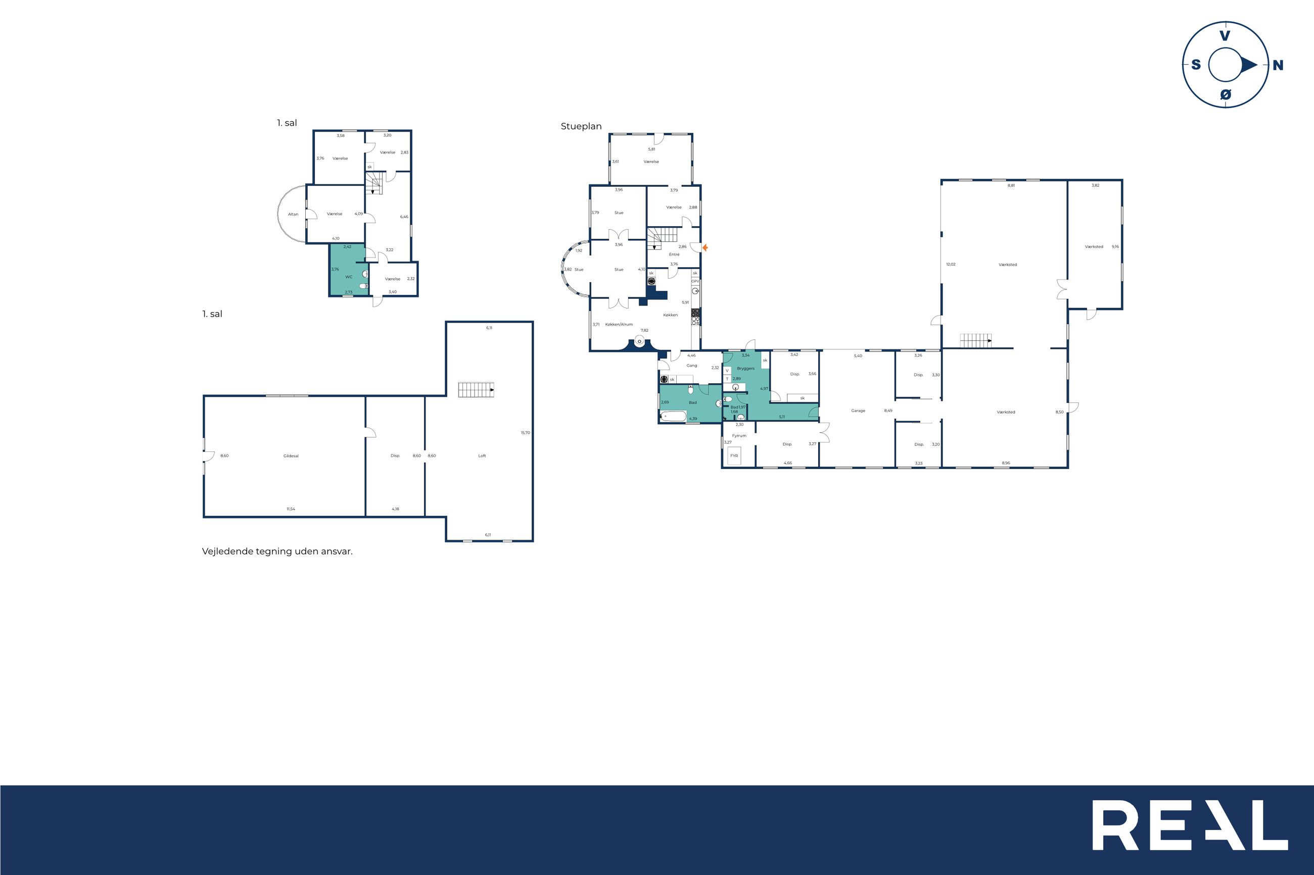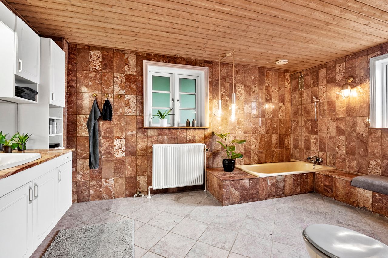 Ejendommen imponerer også med sine fede udbygninger, der blandt andet tæller garage, værksted og gildesal. Fra garagen er der direkte adgang til boligen, så du altid kan komme tørskoet indenfor. Værkstedet er ideelt til dig, der drømmer om at skrue i biler, dyrke hobbyer eller blot ønsker ekstra meget plads.