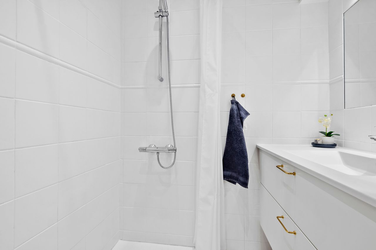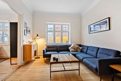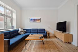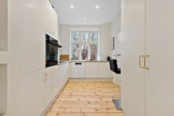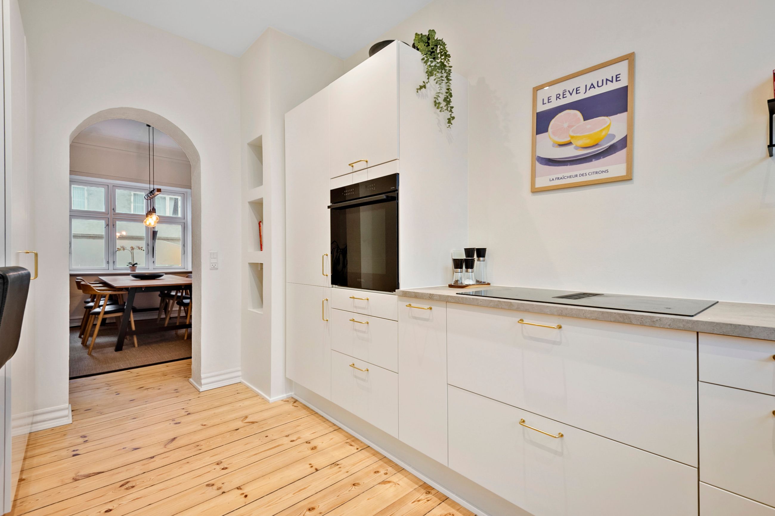 Køkkenet er udskiftet og fremstår moderne med stilrene elementer og god opbevaringsplads. Herfra er der direkte udgang til bagtrappen, hvilket giver nem og praktisk adgang til lejligheden, særligt når du parkerer i gården.