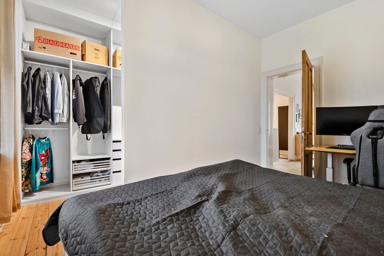 Den rummelige stue indbyder til hygge og afslapning, og soveværelset imponerer med god plads samt et stort walk-in-closet, der giver optimale opbevaringsmuligheder.