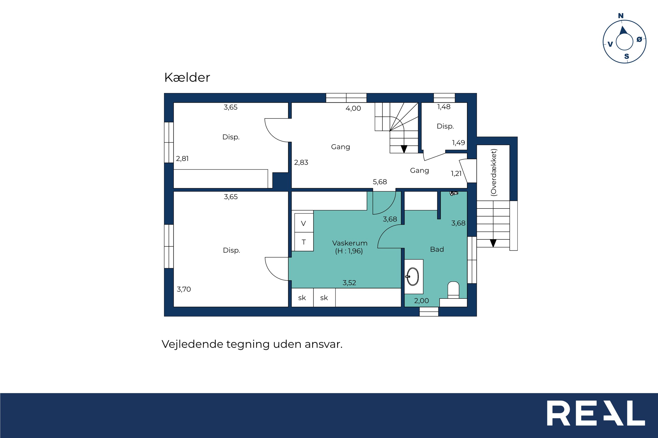 I kælderen finder du yderligere gode disponible rum, samt vaskerum og