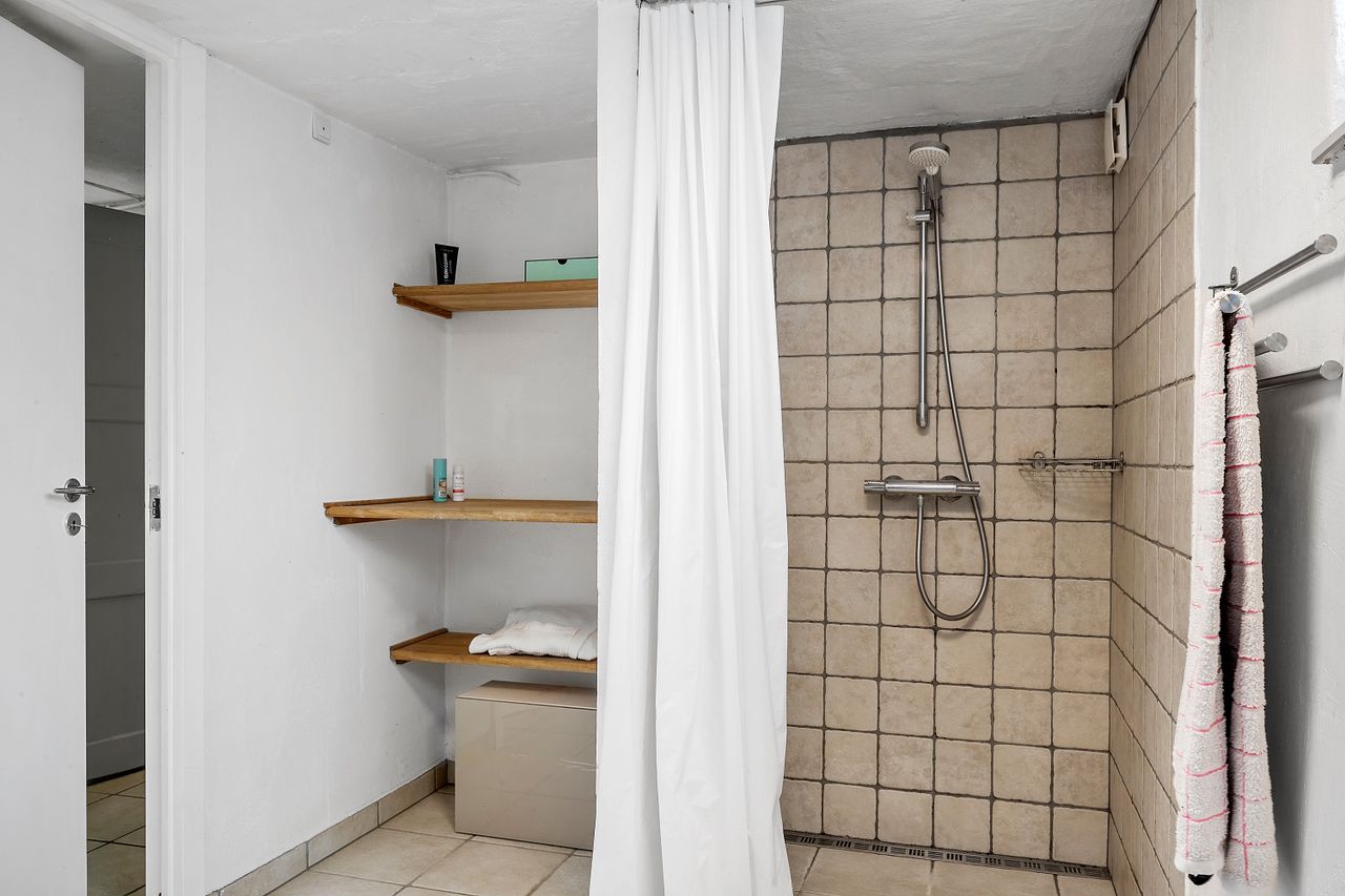 rummeligt badeværelse. Kælderen har et godt indeklima og de disponible rum