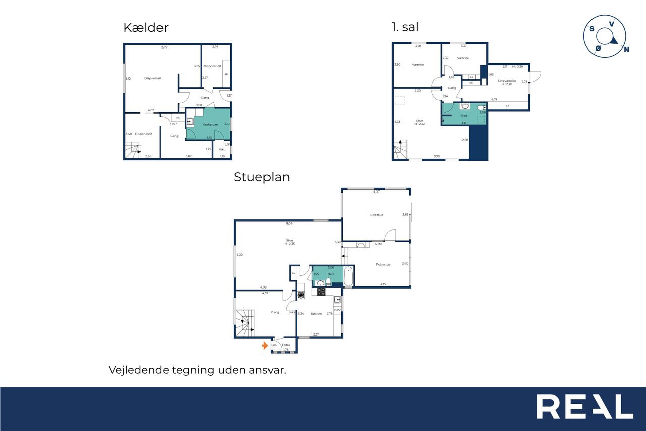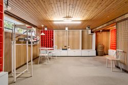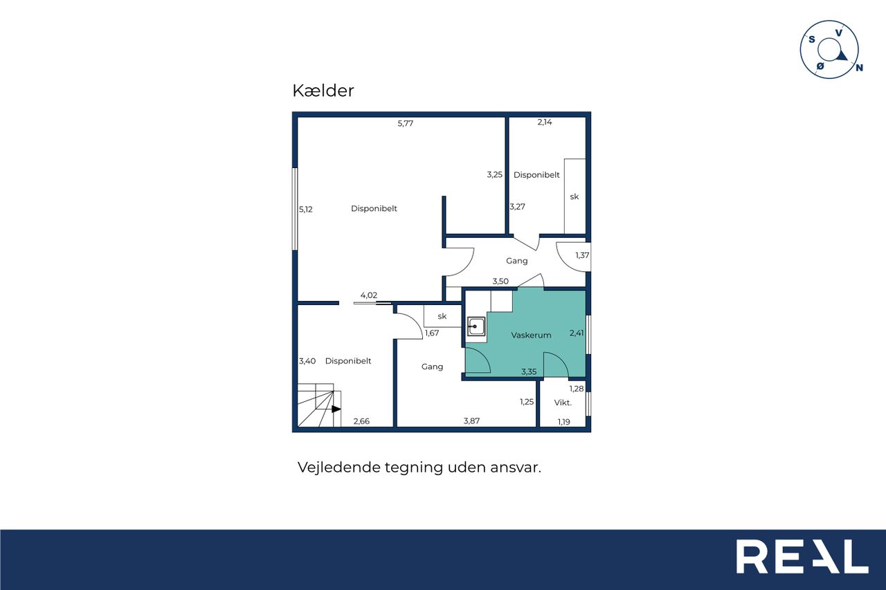 Den tørre kælder byder på et praktisk vaskerum samt flere disponible rum med mange anvendelsesmuligheder – hvad enten du drømmer om hobbyrum, værksted eller ekstra opbevaringsplads.