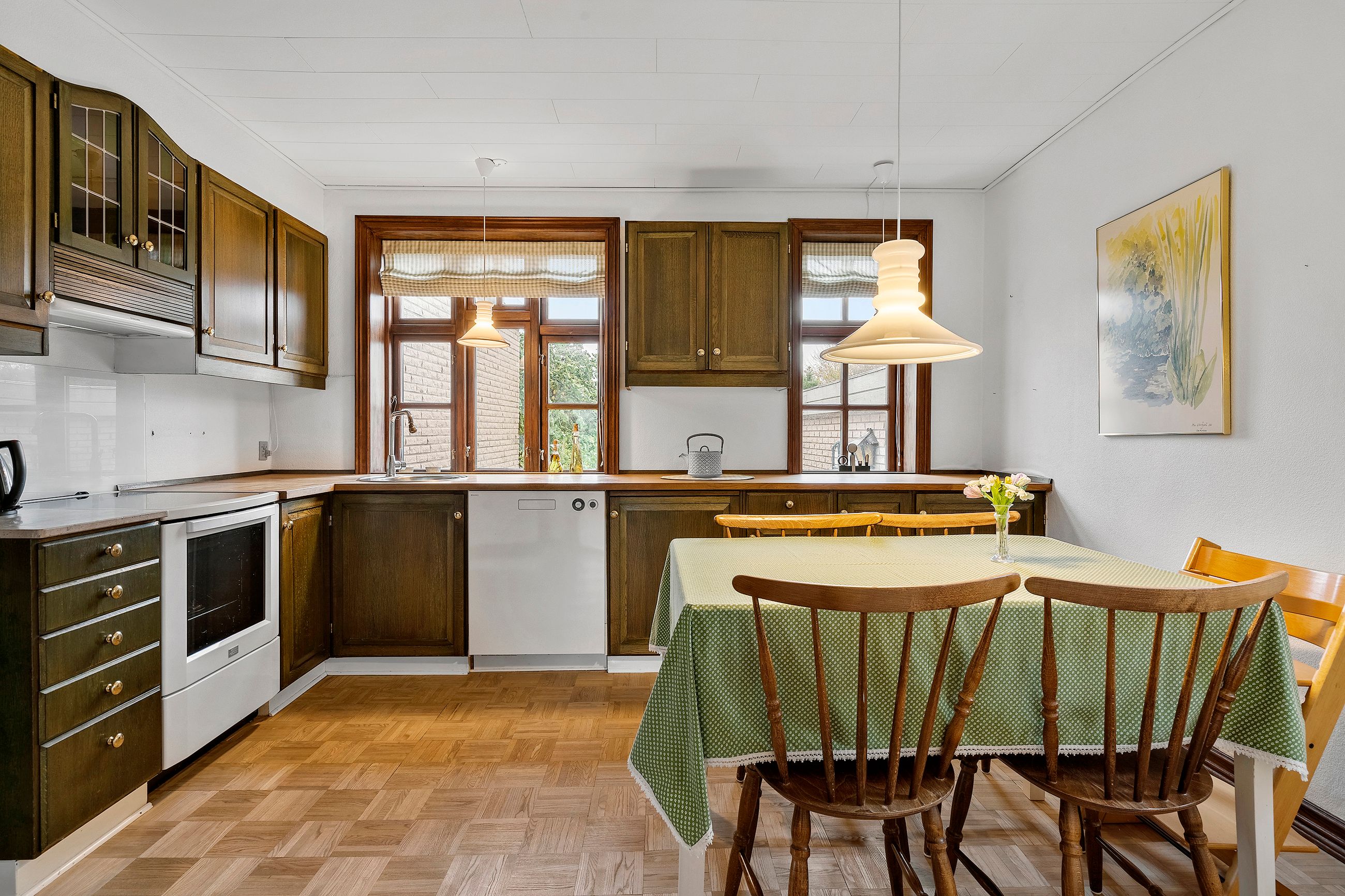 Boligen byder på hele 266 etagemeter, fordelt på stue, 1. sal og en god kælder. I stueplanen mødes du af nogle helt fantastiske opholdsrum, hvor der er plads til både hverdag og gæster. Køkkenet har en hyggelig spiseplads, og i forlængelse heraf finder du skønne stuer samt en dejlig havestue med udsigt til den velplejede have – et perfekt sted at nyde eftermiddagskaffen. Et badeværelse fuldender etagen.