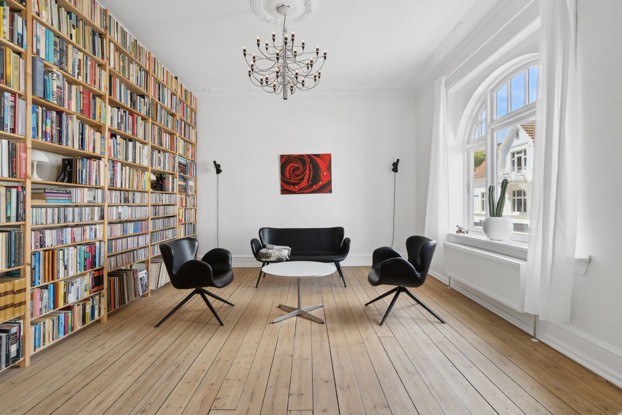 Smukke Detaljer og Klassisk Charme Når du træder ind i huset, bliver du mødt af en helt særlig atmosfære. De imponerende stuklofter, smukke trægulve og de klassiske kanarper giver hjemmet en unik og tidløs karakter. Her er ikke noget, der er til sammenligning.