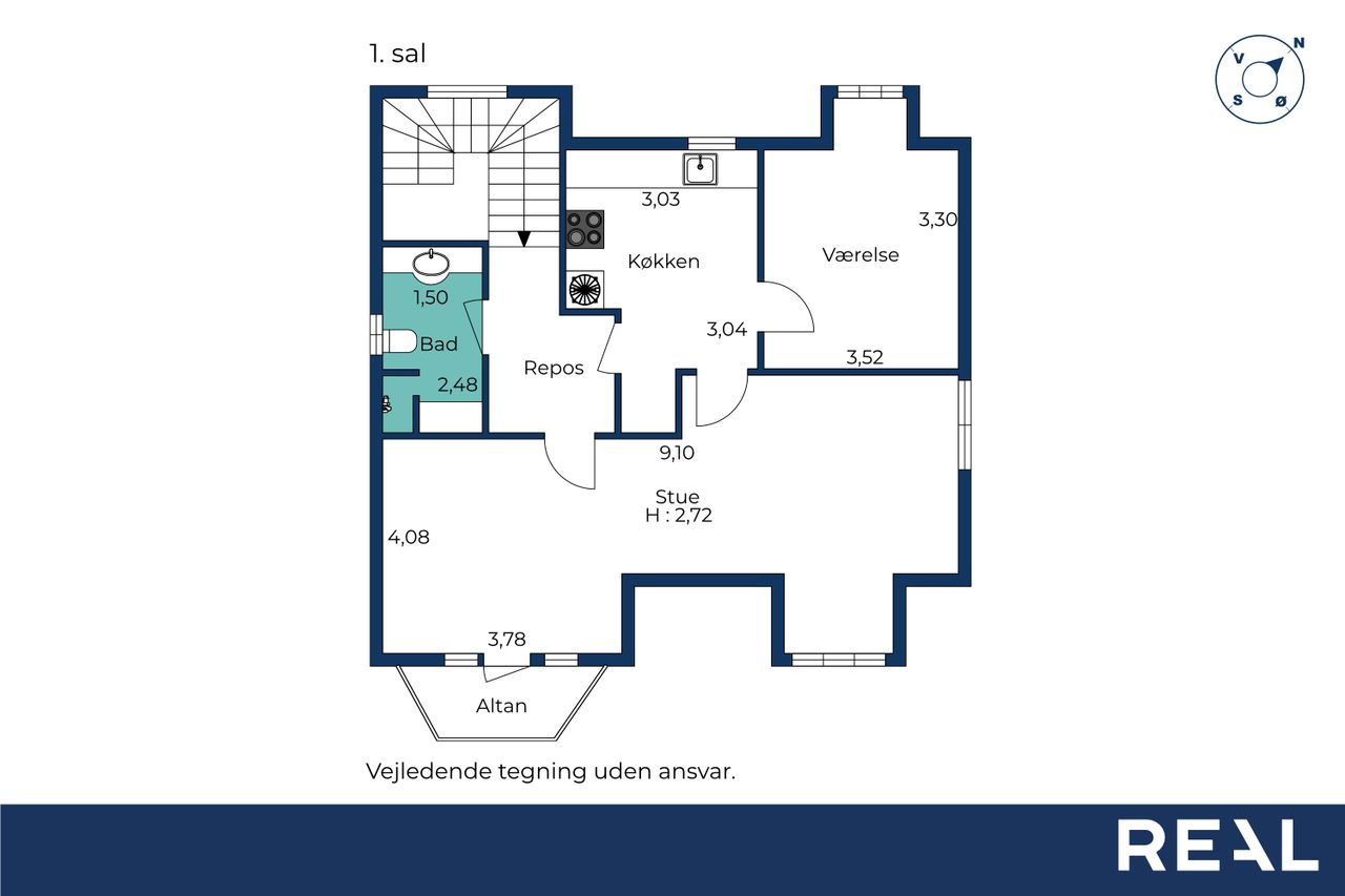 1. Sal med Godt Potentiale – Omdan til Separat Lejlighed På første sal finder du to gode værelser, der nemt kan omdannes til tre værelser, hvis behovet opstår. Der er også et badeværelse her, hvilket gør første salen ideel til børneafdeling eller som et ekstra privat område. Derudover er første sal perfekt til at blive omdannet til en separat lejlighed, hvilket giver dig mulighed for at skabe et selvstændigt boligareal til fx gæster, lejere eller som et hjemmekontor med privat adgang.