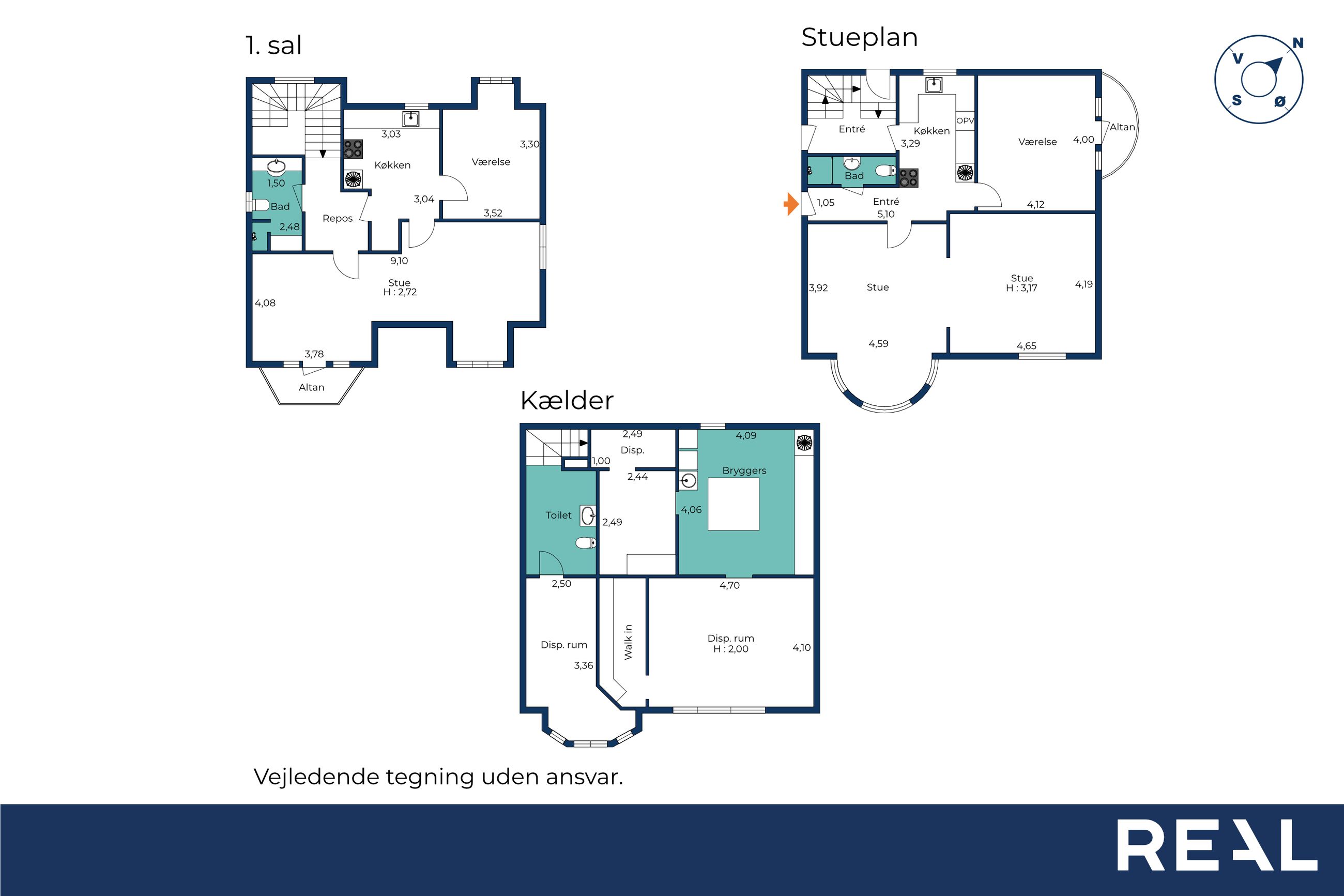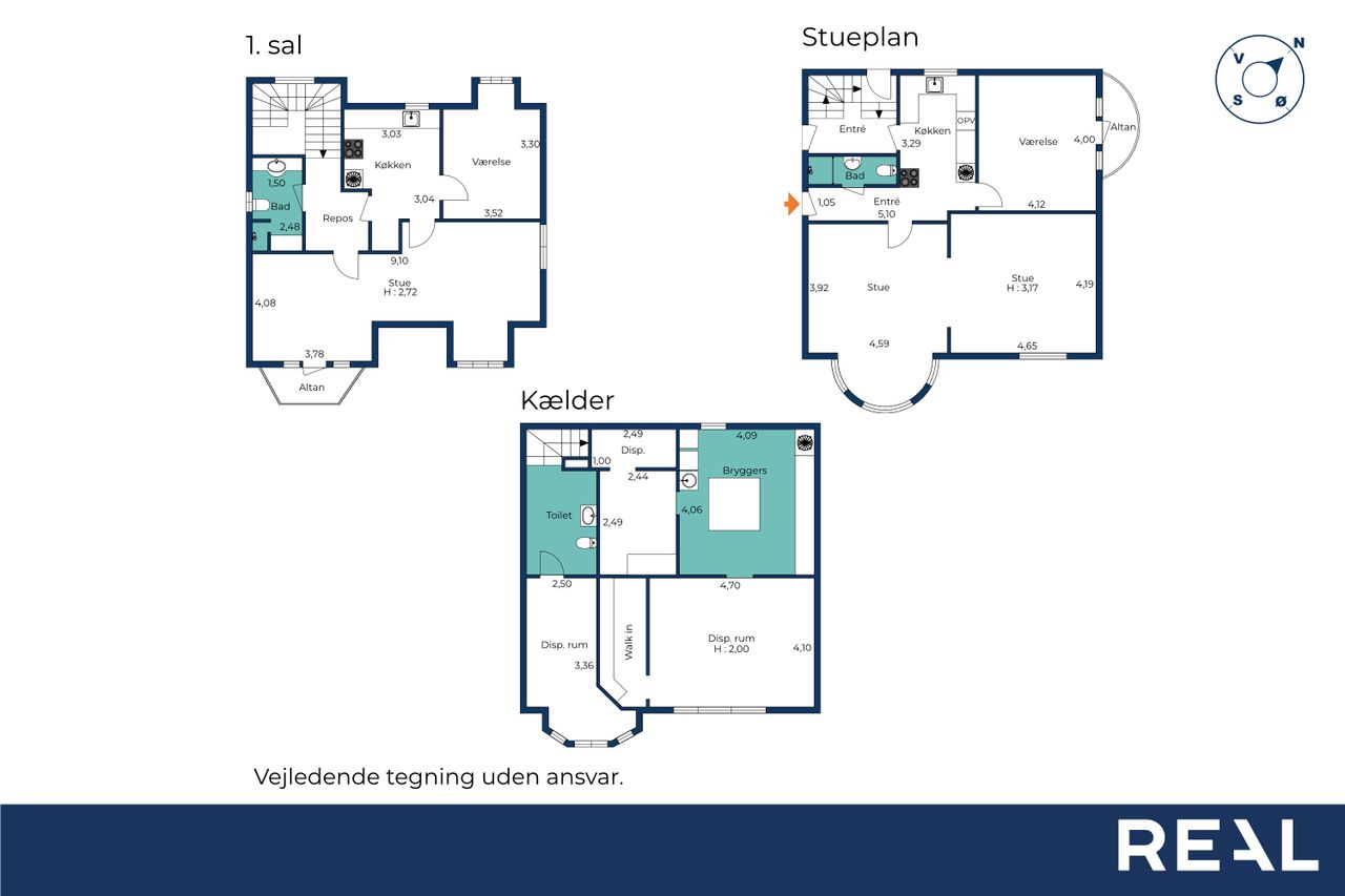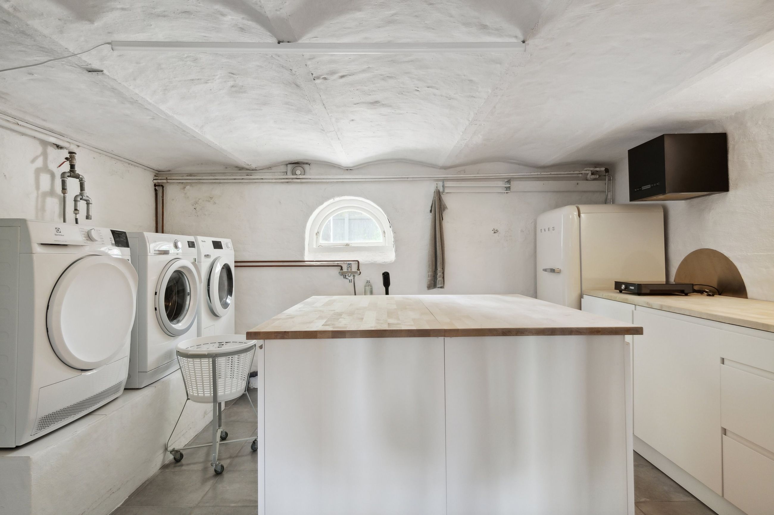 Kælder og Praktiske Rum Kælderen rummer gode disponible rum, som kan tilpasses dine behov, samt et praktisk bryggers til vask og opbevaring.