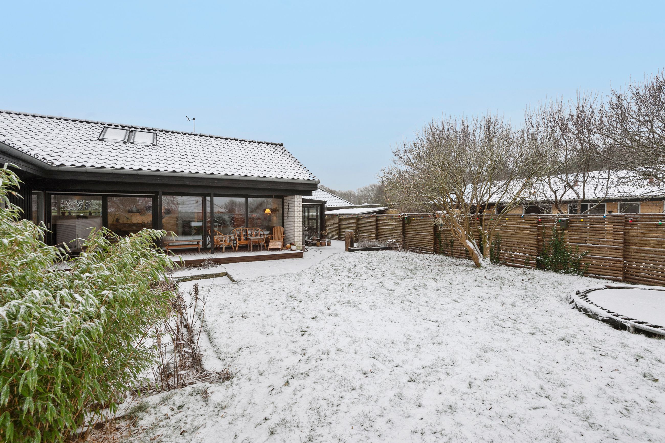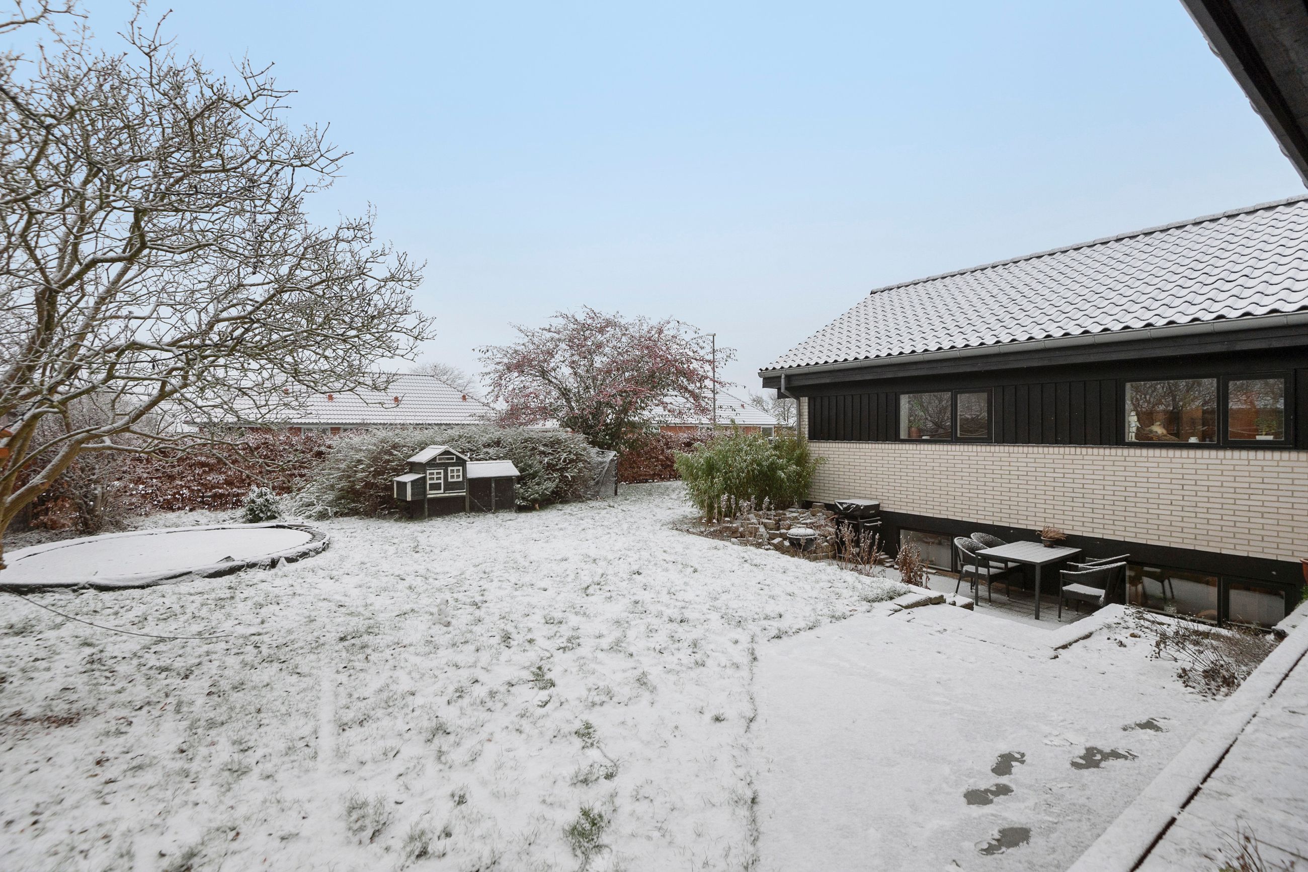 Beliggenheden er ideel med kort afstand til Dyrskoven, indkøbsmuligheder og Vita Skolen, og samtidig får I en skøn, solrig have med god plads til både leg og afslapning. Til ejendommen hører desuden garage og en flot, velanlagt have.