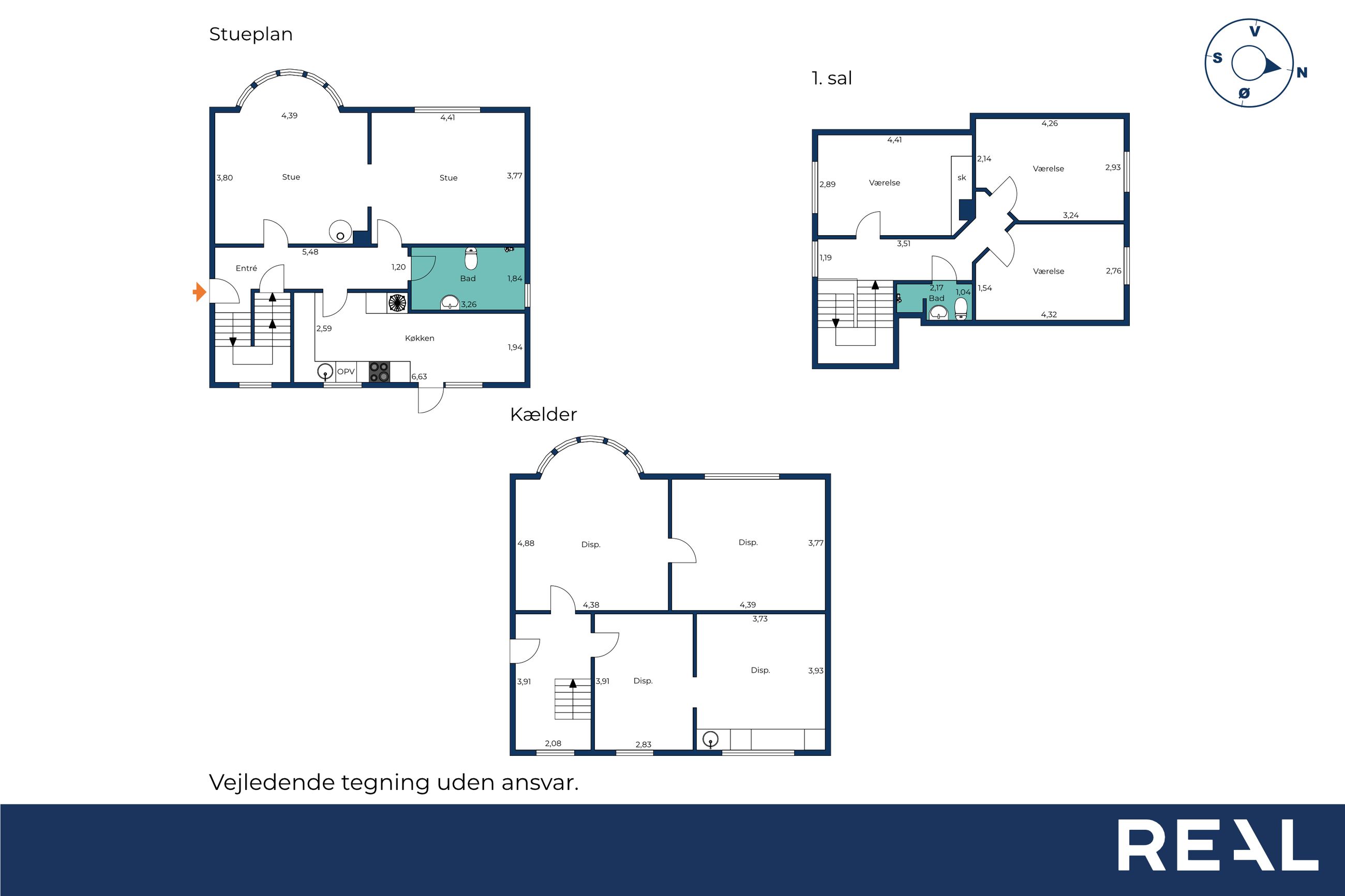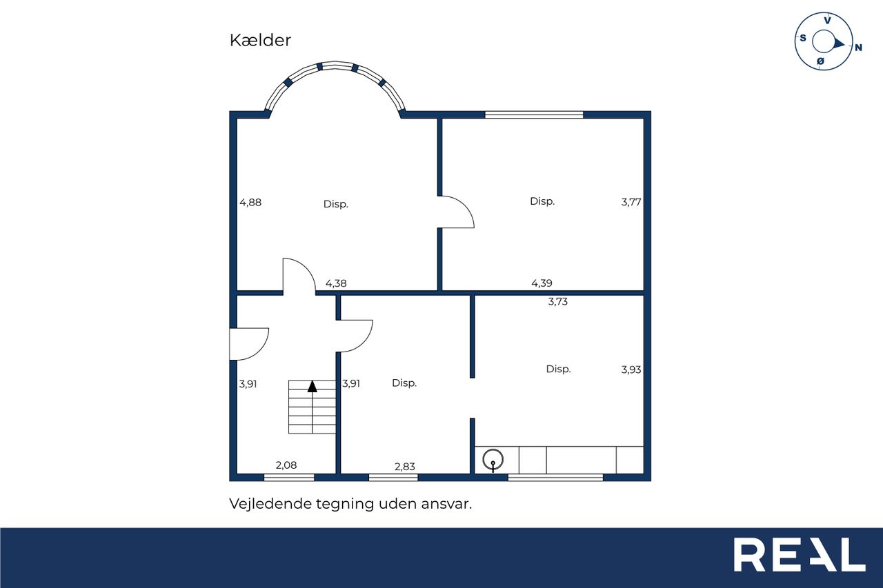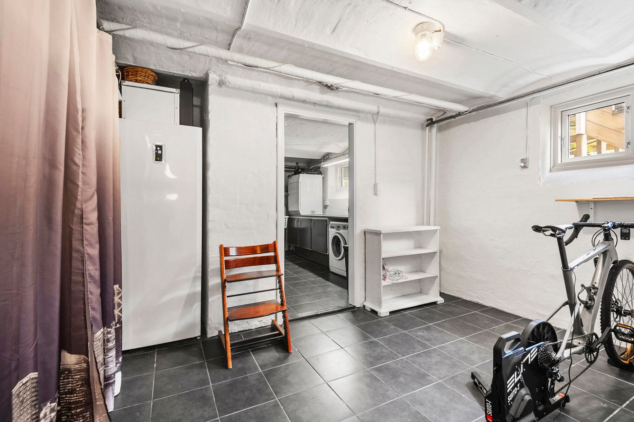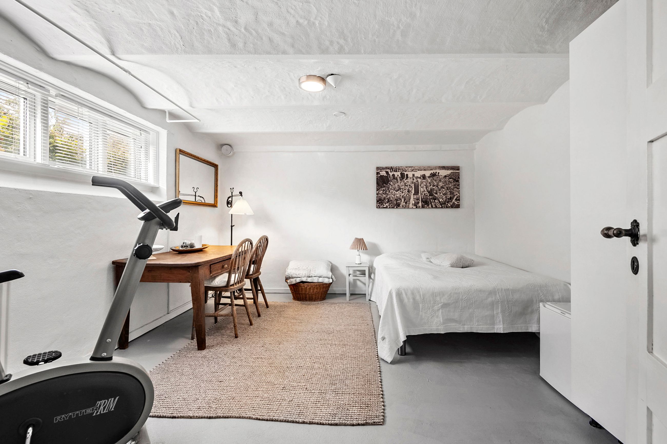 Kælderen er særdeles anvendelig og giver mange muligheder. Her finder du, udover et vaskerum og et opbevaringsrum, to store disponible rum – perfekt til teenageren, hobbyrummet eller hjemmekontoret. Kælderen har desuden egen udgang til haven.