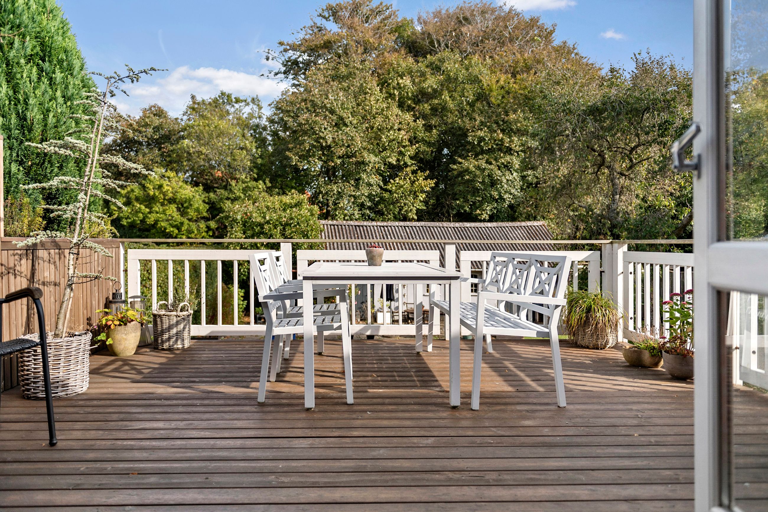 Villaen byder på en skøn have, smukt anlagt med grønne oaser, solrige kroge og en stor træterrasse med udgang direkte fra køkkenet – perfekt til sommerens hyggelige middage under åben himmel. Bagerst i haven finder du et stort, velindrettet værksted, der rummer masser af plads til både kreativ udfoldelse, hobbyprojekter og opbevaring. I haven finder du desuden en dejlig solterrasse, hvor du kan nyde roen og solen hele dagen.