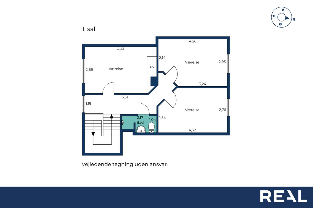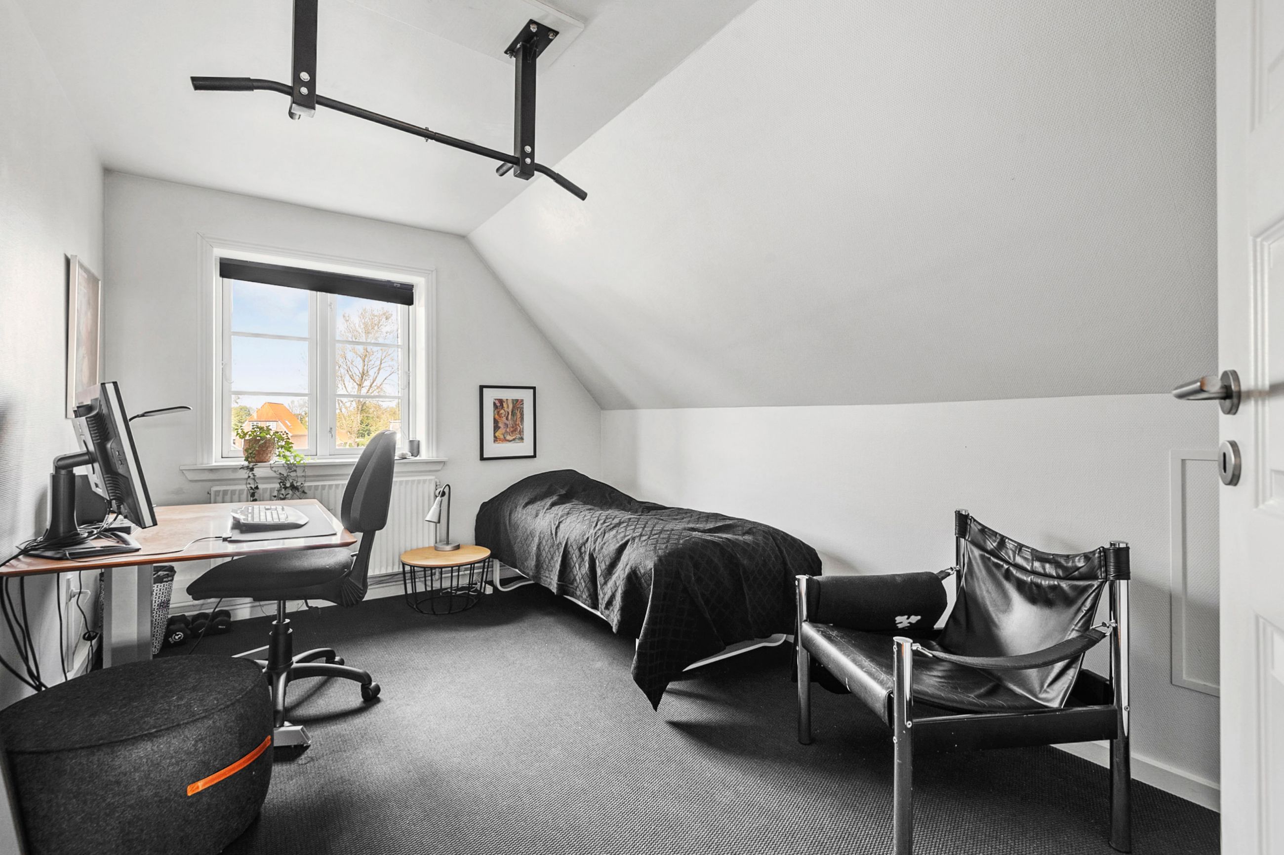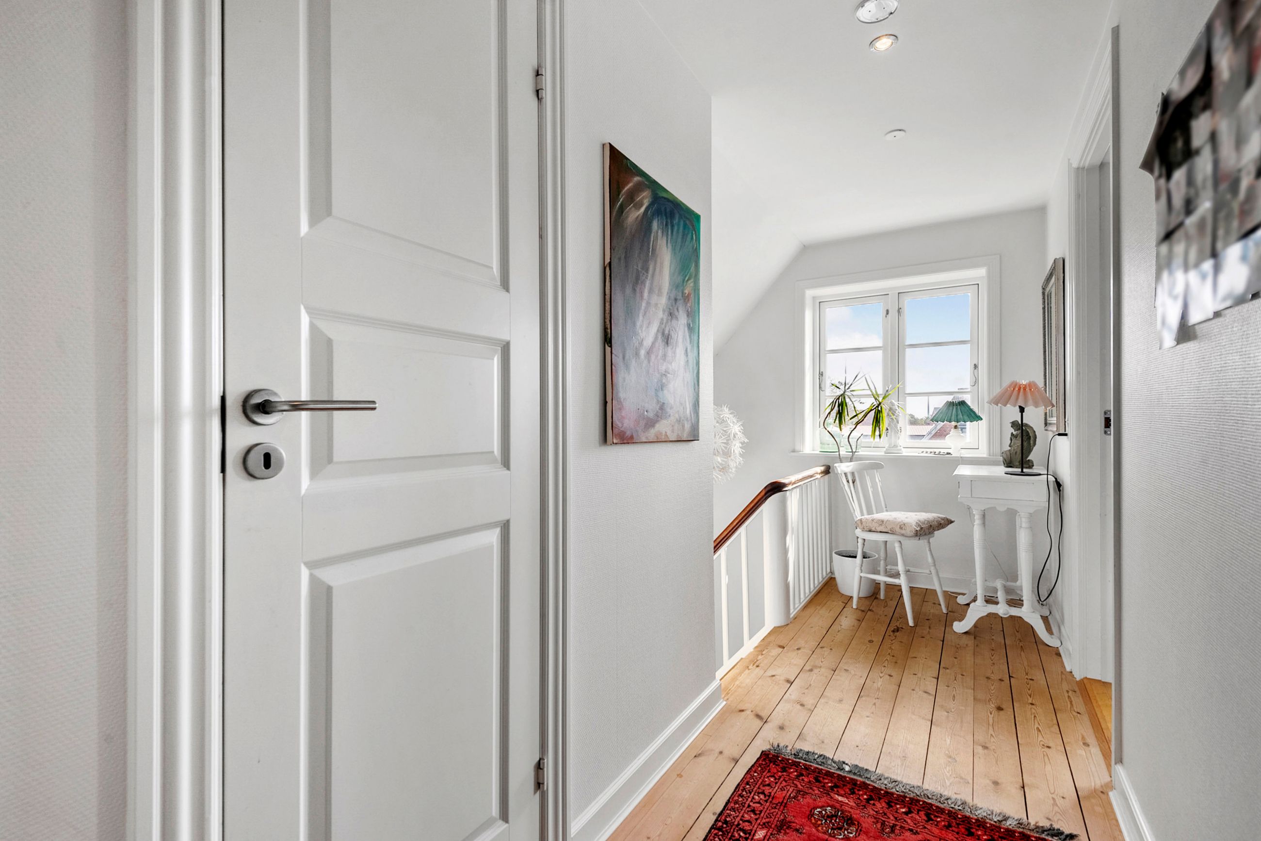 På førstesalen finder du et rummeligt soveværelse samt to store børneværelser og et badeværelse – ideelt til den moderne familie, hvor både børn og voksne får hver deres gode plads.