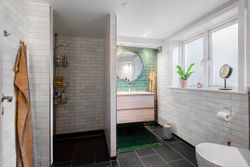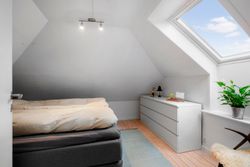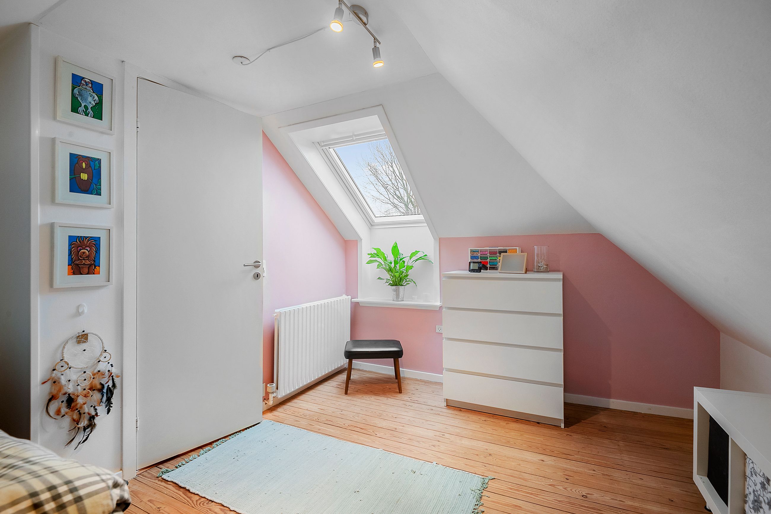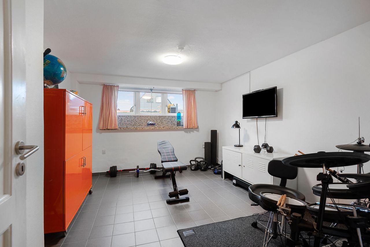 På første sal venter to lyse og velproportionerede værelser – perfekte til børn, kontor eller kreativ udfoldelse. Og kælderen? Den tager virkelig kegler! Her får du et moderniseret badeværelse med gulvvarme, tre store disponible rum, hvoraf to har gulvvarme, samt et stort vaskerum. Alt er gjort klar – alle rør under loftet er skiftet, og kælderen fungerer ideelt som teenageafdeling, hobbyrum eller værksted.
