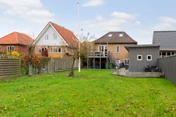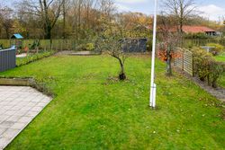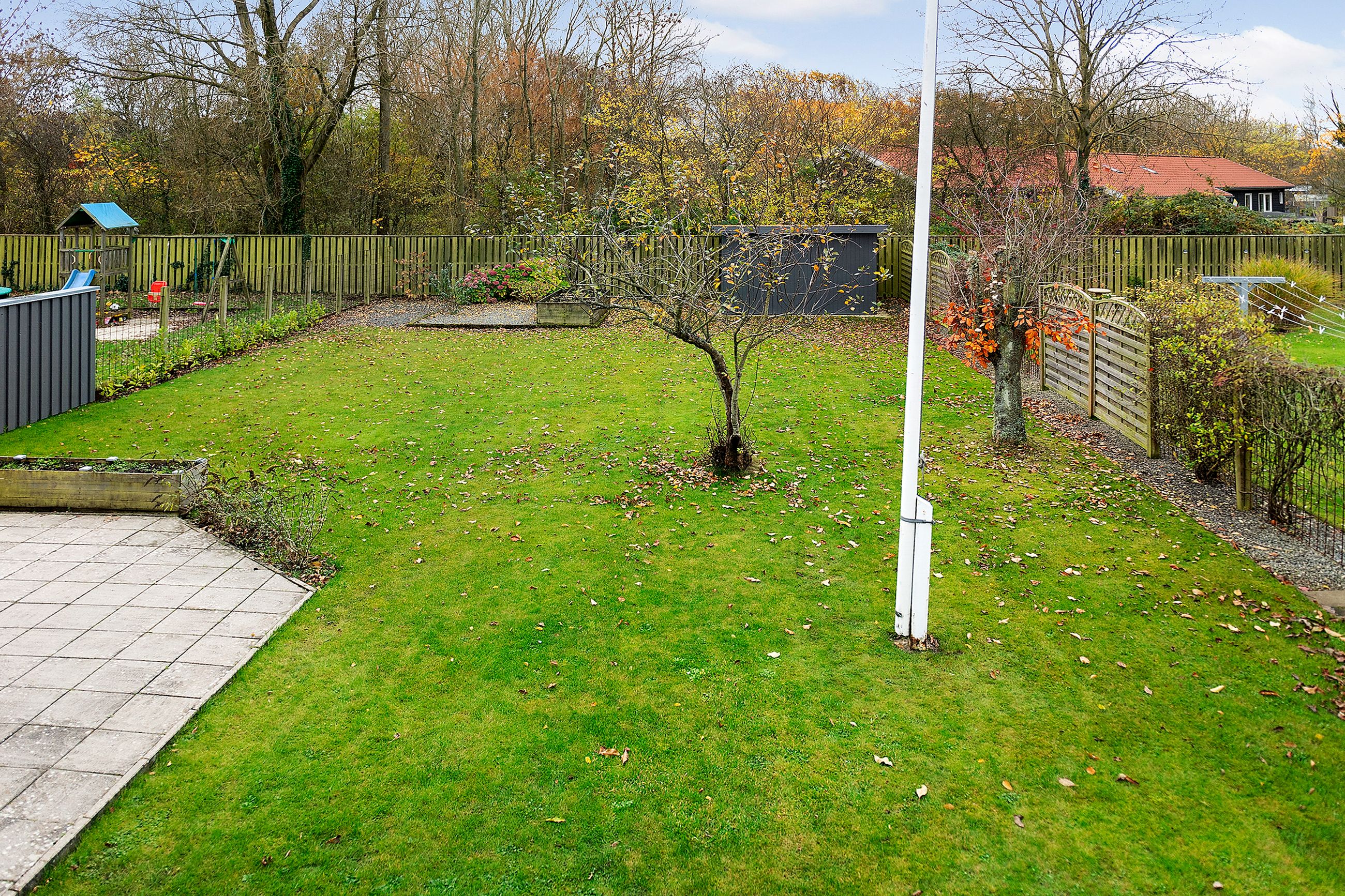 Haven er – flot anlagt med grønne oaser, hyggelige kroge og en stor træterrasse, hvor sommerens aftener nærmest beder om at blive nydt med et glas vin i hånden. Her er både redskabsskur og en rummelig carport med ekstra plads til opbevaring – perfekt til både cykler, haveredskaber og alt det, du ikke vil have indenfor.
