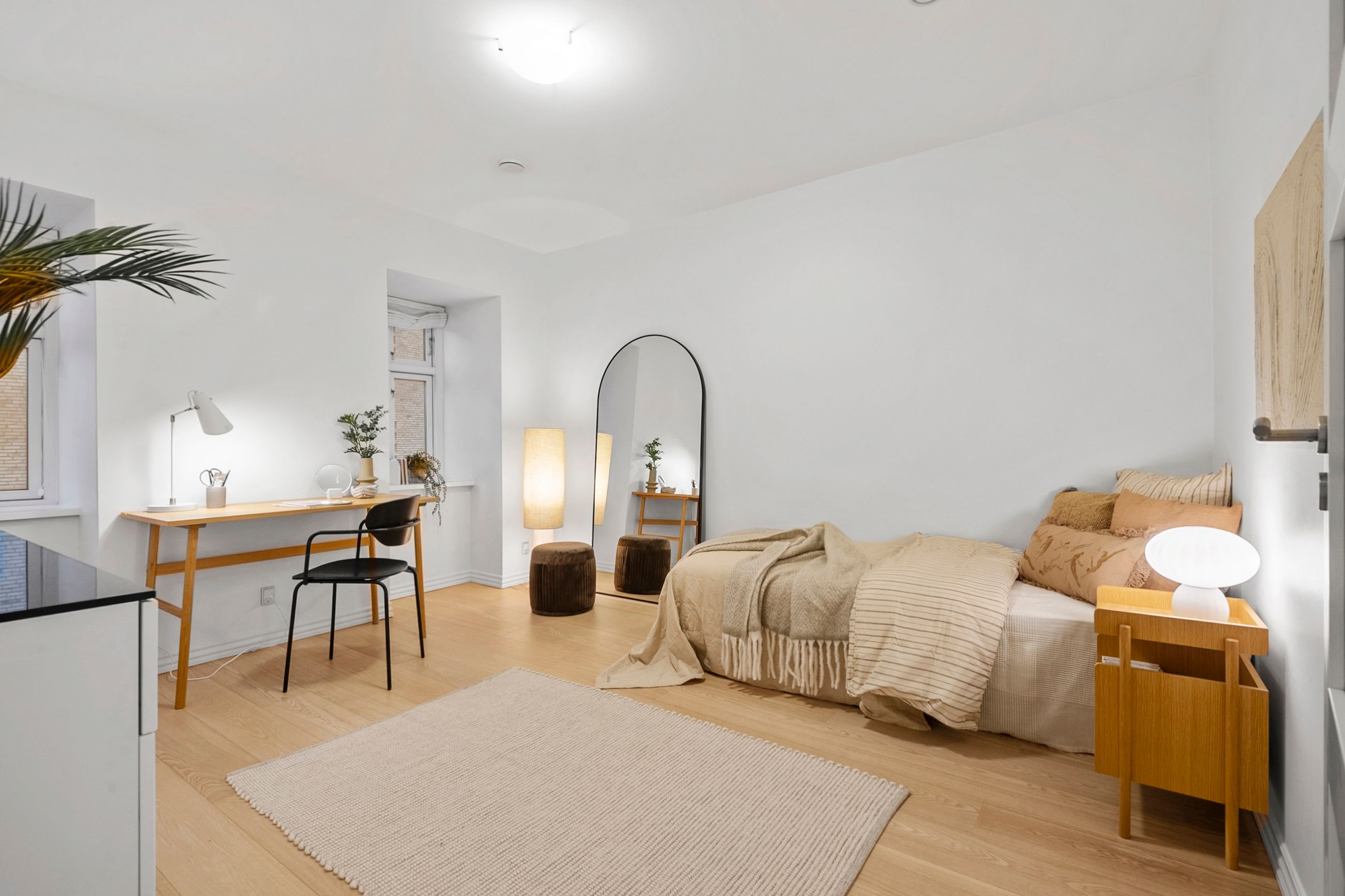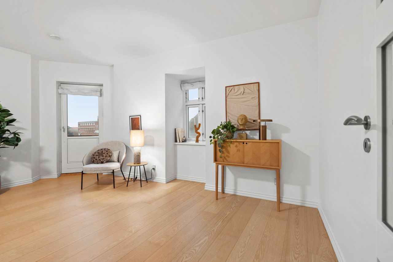Ejendommen fremstår flot og velholdt med renoveret facade, opgang og tag, og lejligheden har gennemgået en omfattende modernisering med fokus på komfort og kvalitet. Der er gulvvarme i hele lejligheden samt Genvex-ventilation, som sikrer et behageligt indeklima året rundt.