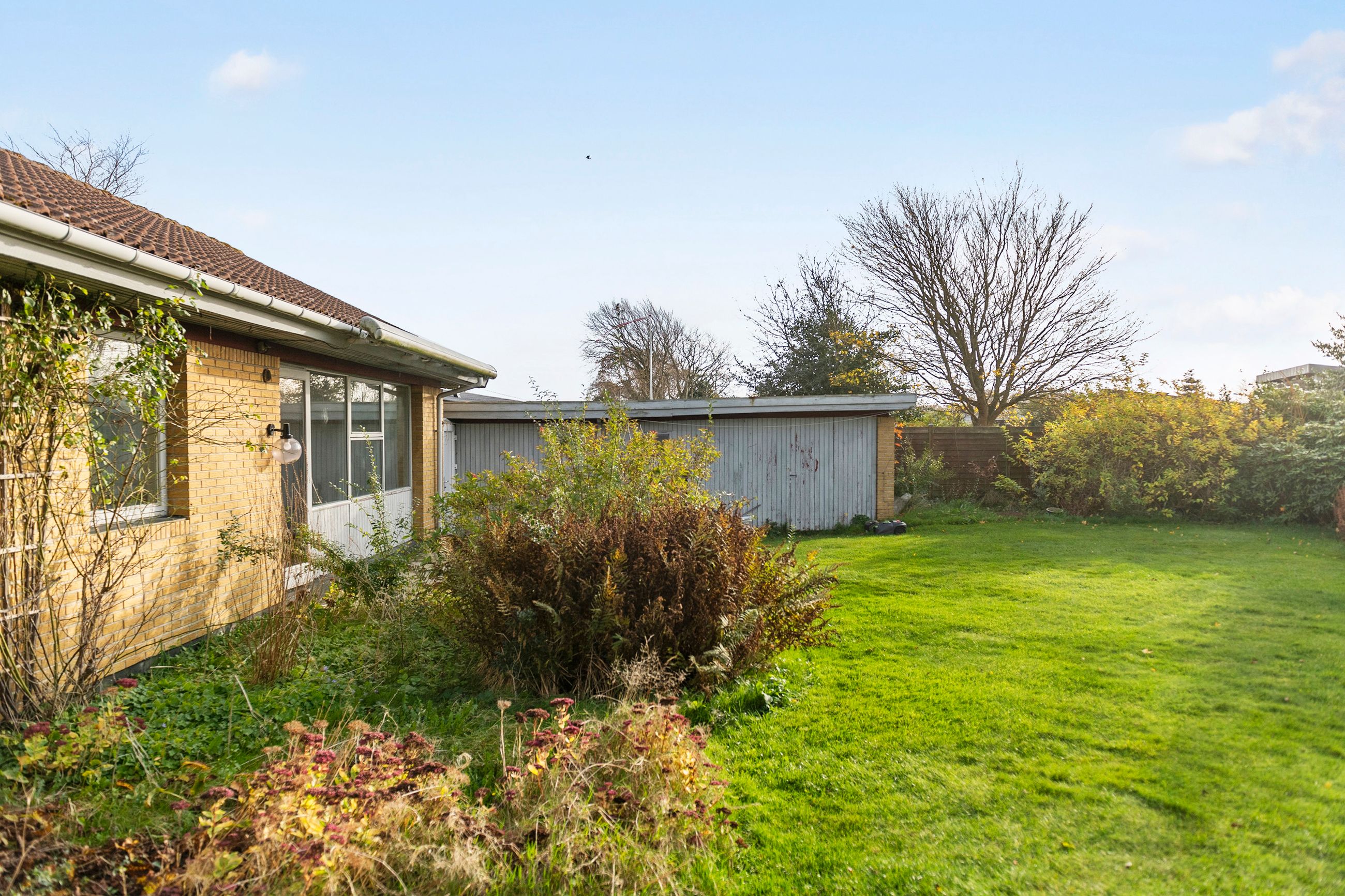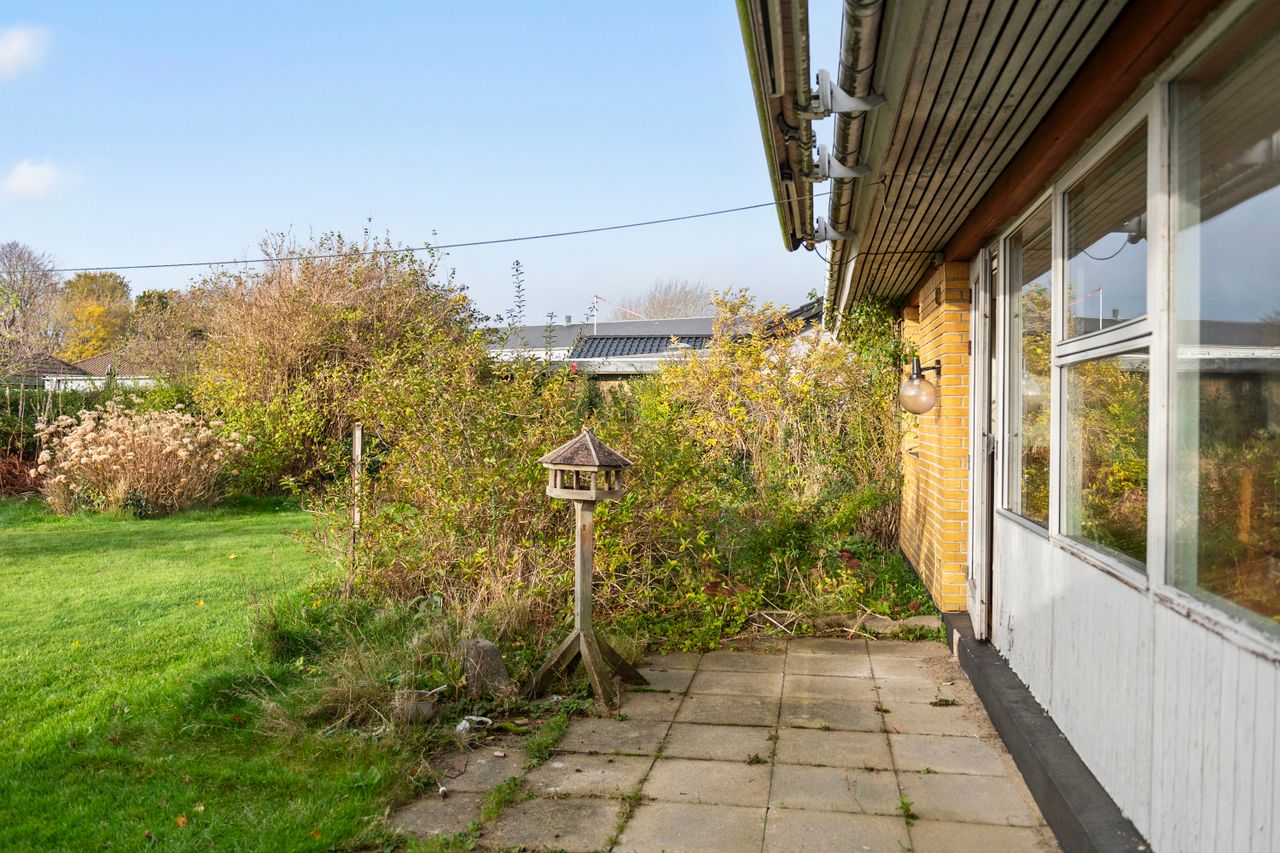 Praktiske faciliteter og gode udendørsarealerDer følger et praktisk bryggers, hvor dagligdagens funktioner kan klares nemt og bekvemt. Til boligen hører også en garage, som både giver plads til bilen og mulighed for ekstra opbevaring eller værksted. Haven er solvendt og rummelig – et perfekt udgangspunkt for at skabe en hyggelig oase med plads til leg, afslapning og udeliv.