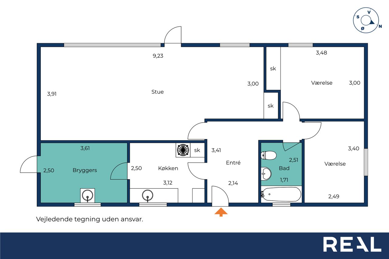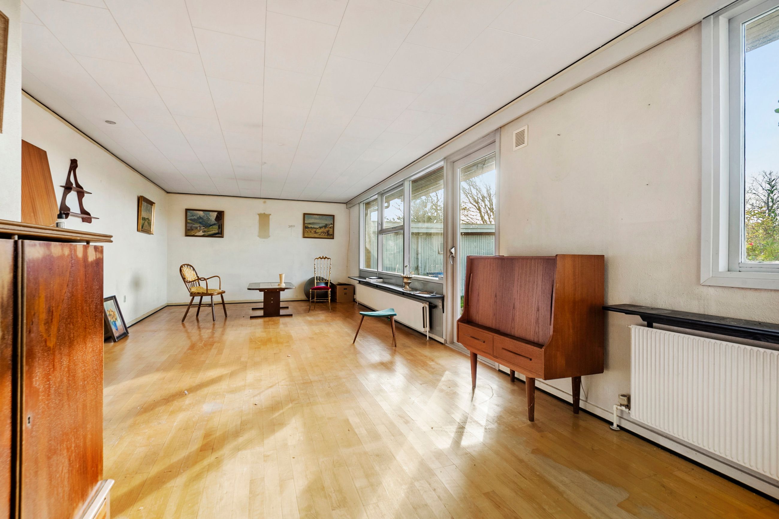 Plads til at tænke kreativtI sin nuværende indretning rummer boligen to gode værelser, men planløsningen gør det nemt at etablere tre regulære værelser, hvis behovet er der. Det eksisterende køkken kan med fordel åbnes op mod stuen og omdannes til et lyst og indbydende køkken/alrum, som vil give boligen et helt nyt flow og et skønt samlingspunkt for familie og venner.