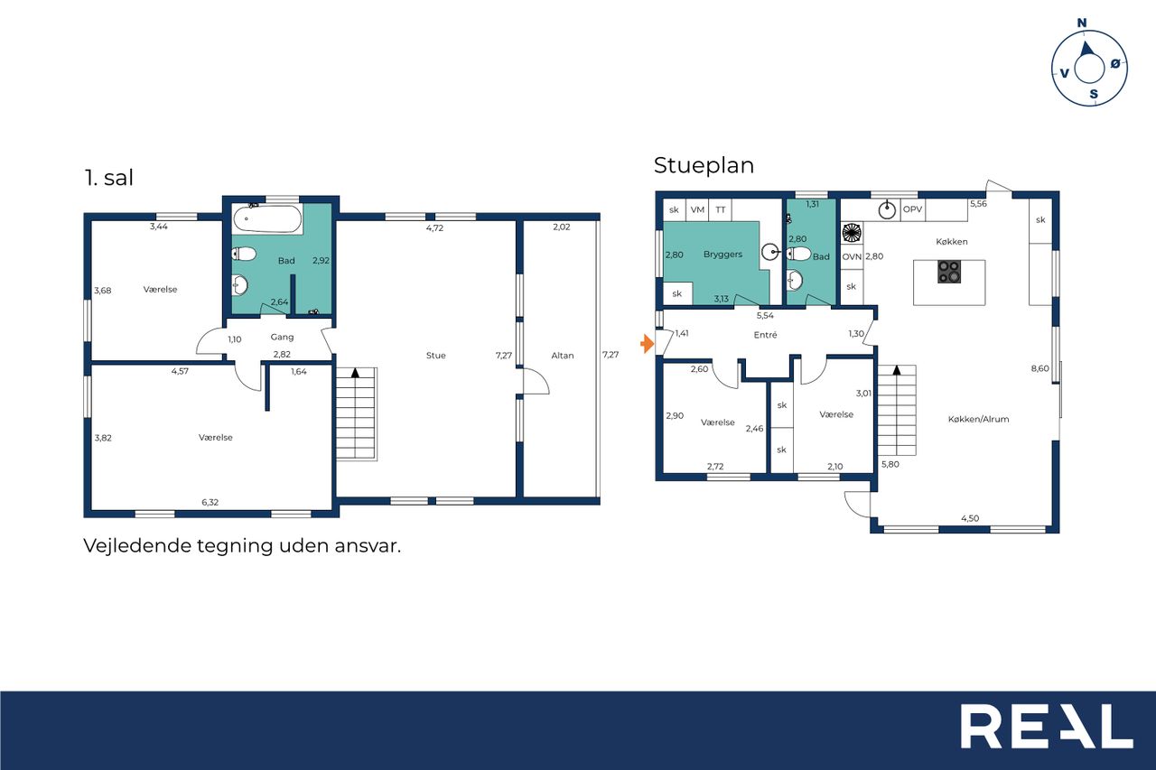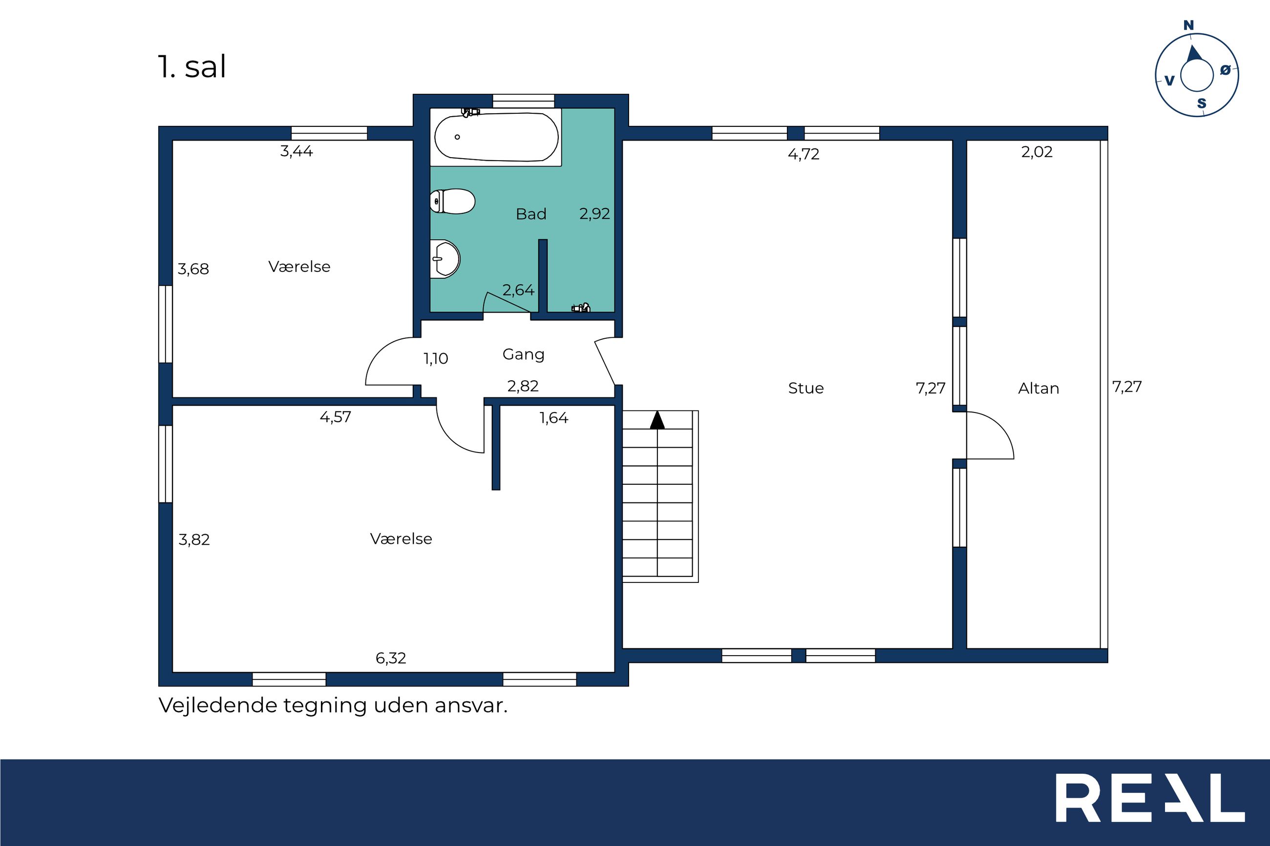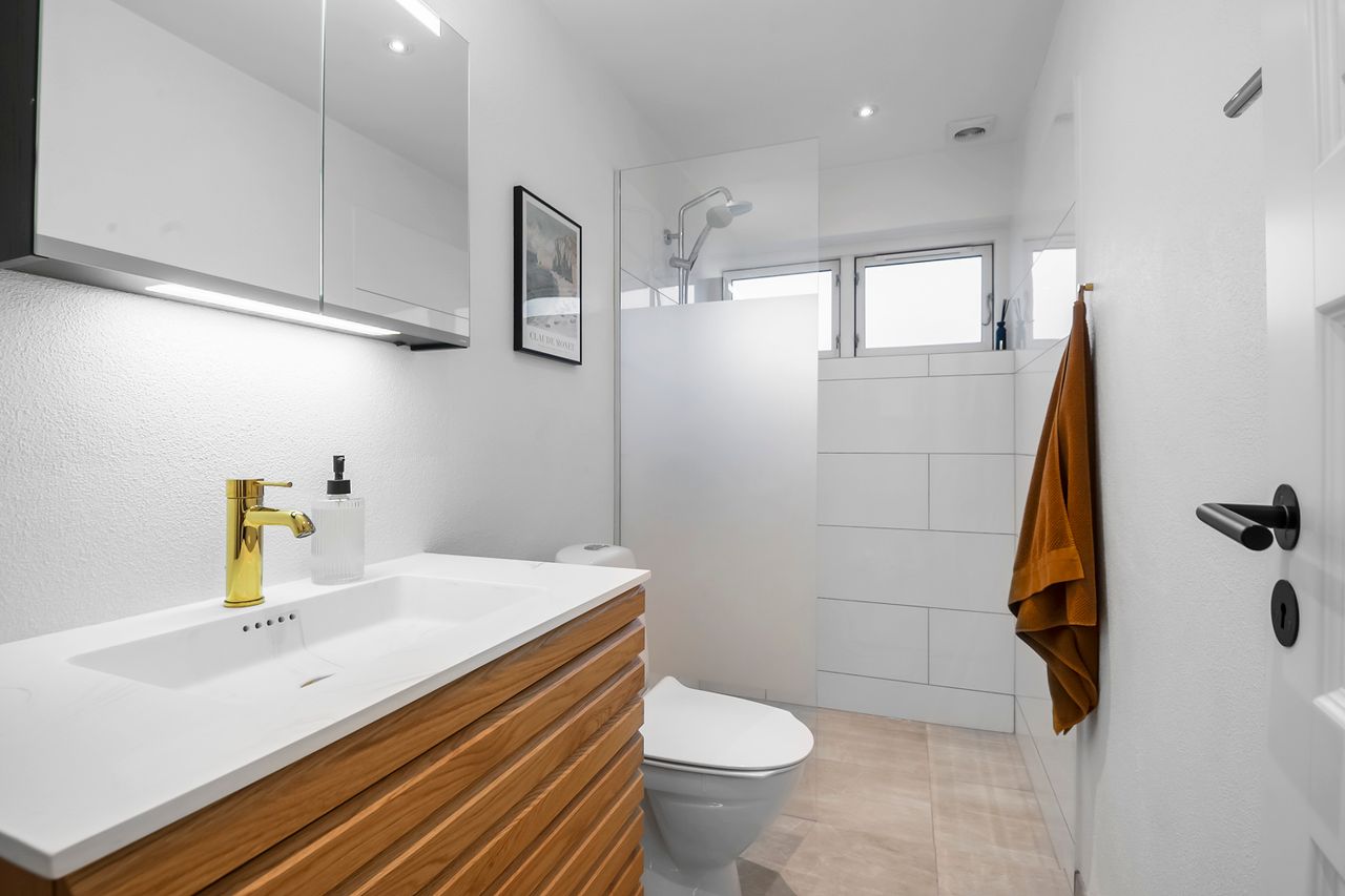 Velindrettet bolig med plads til hele familienHuset byder på fire rummelige værelser, som er perfekt fordelt med to på 1. sal og to i stueplan – ideelt til både børnefamilien, hjemmekontoret eller gæsteværelset. Hertil kommer et lækkert badeværelse på hver etage, som giver en ekstra grad af komfort i hverdagen.