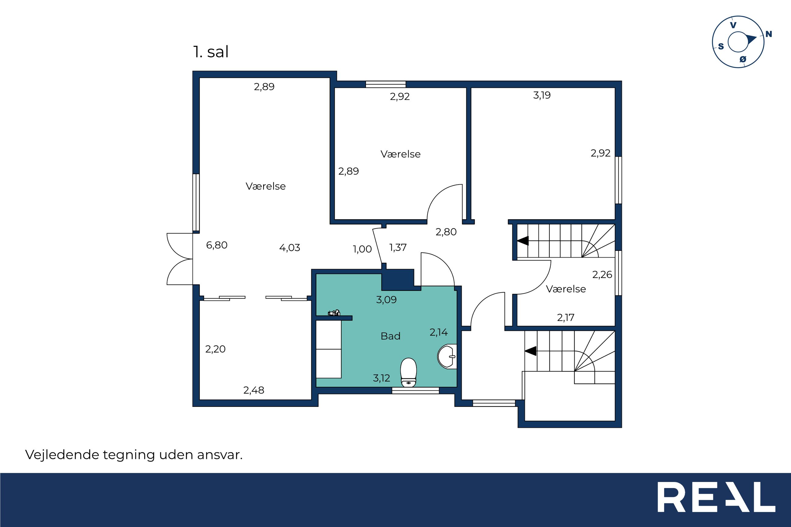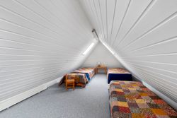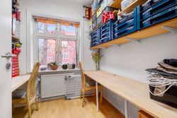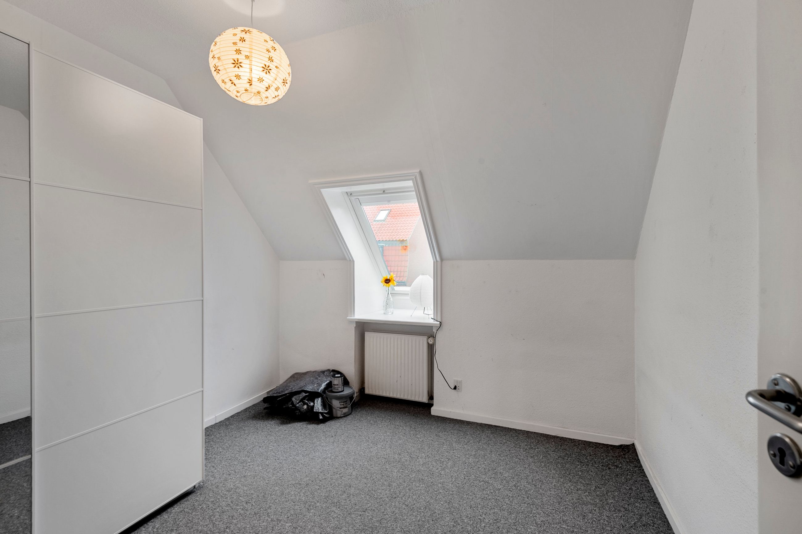 På førstesalen finder du et lyst badeværelse, to gode børneværelser samt et rummeligt soveværelse. Derudover er her et ekstra disponibelt rum, hvor der er udnyttet op til kip, hvilket skaber en helt særlig atmosfære.