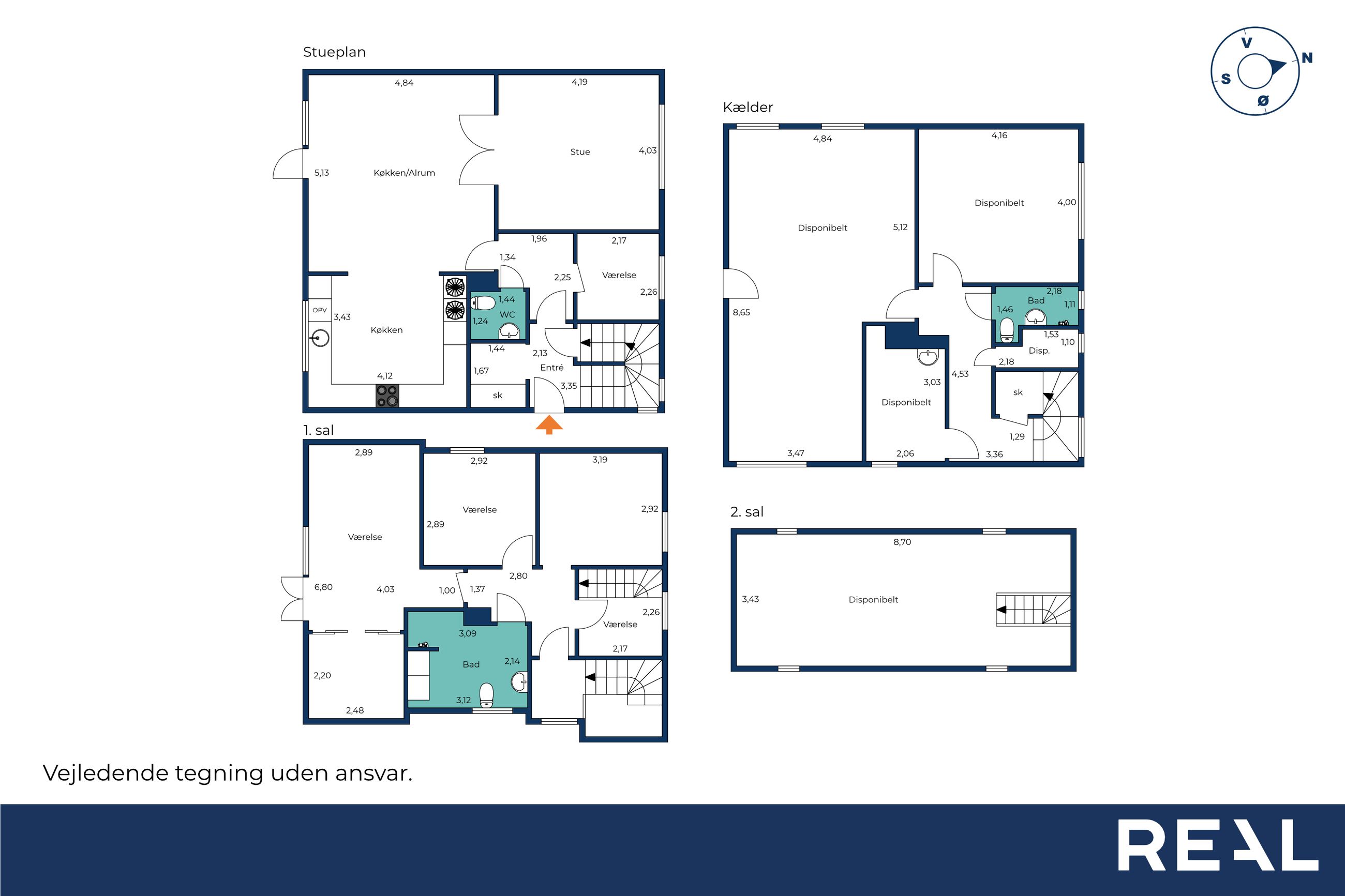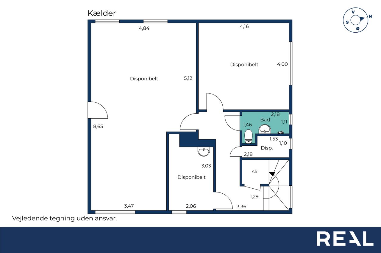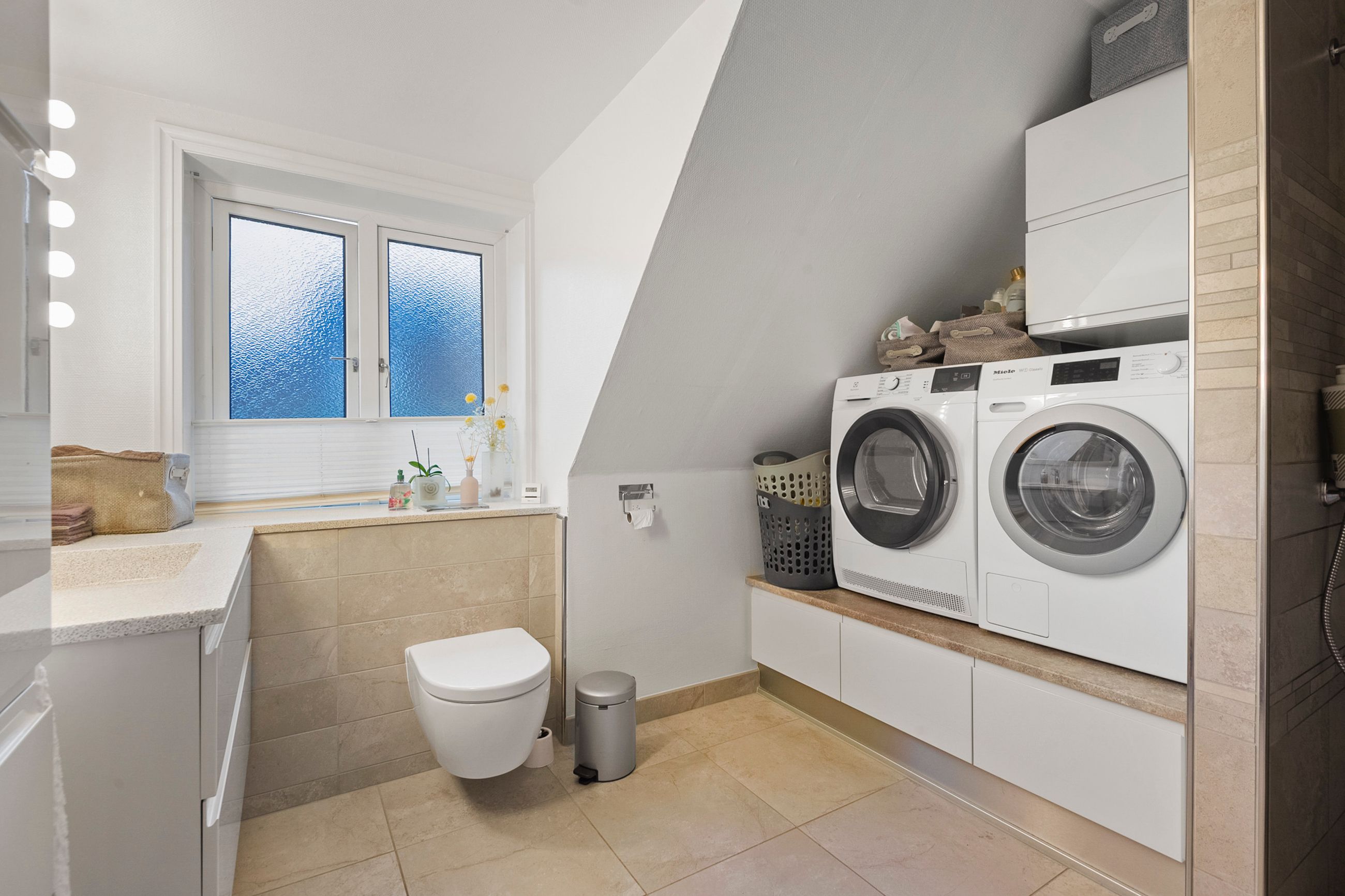 Kælderen giver masser af ekstra plads og muligheder. Her er både vaskerum, badeværelse og to store disponible rum – ideelt til teenager-afdeling, hobbyrum eller gæstefaciliteter. Kælderen har egen indgang, hvilket øger fleksibiliteten yderligere.