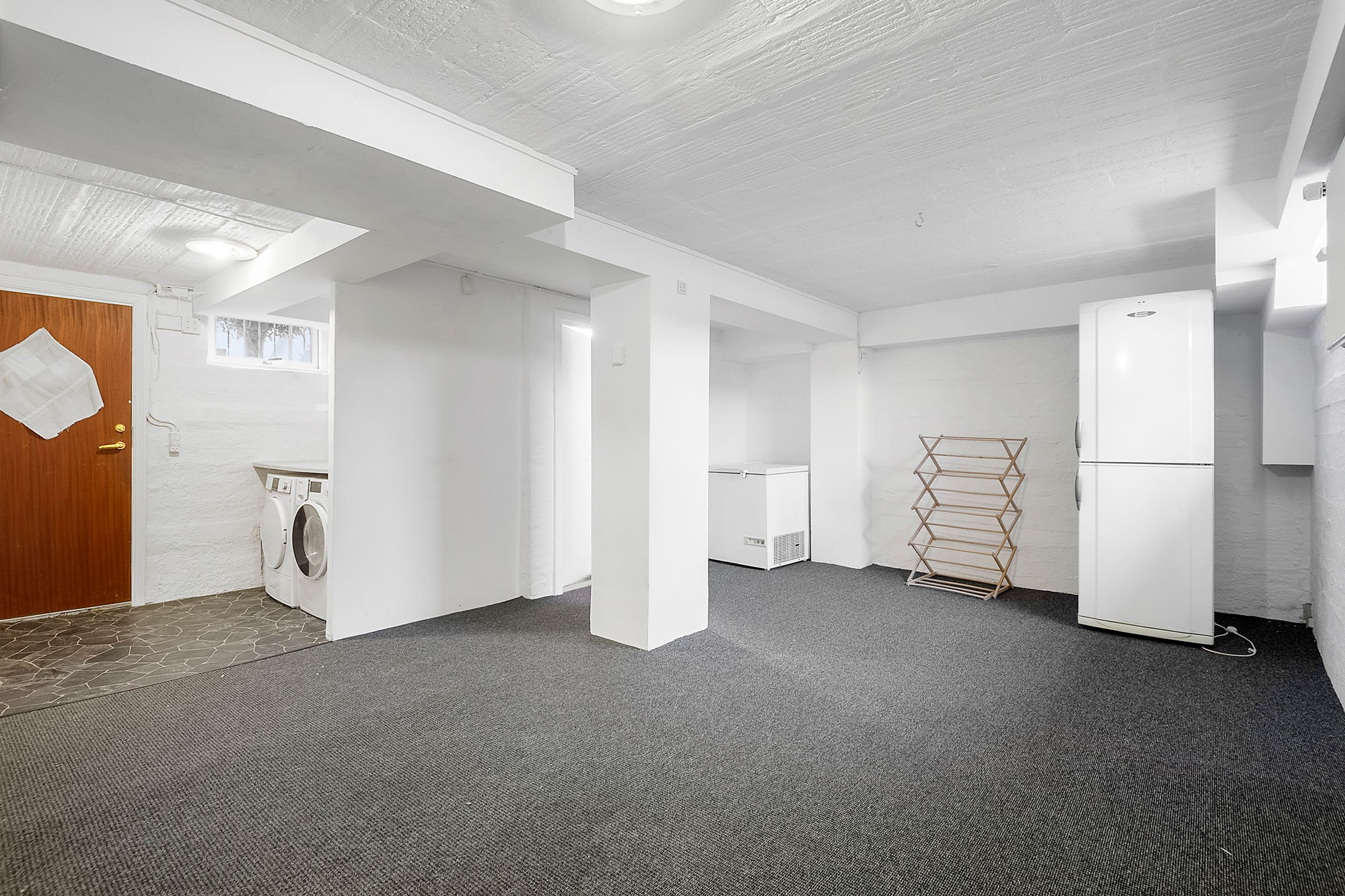 Kælderen byder på ekstra plads og fleksibilitet med eget toilet og rum, som egner sig perfekt til teenageren, hobbyaktiviteter, hjemmekontor eller gæsteafdeling. Et virkelig praktisk og værdifuldt supplement til boligen.