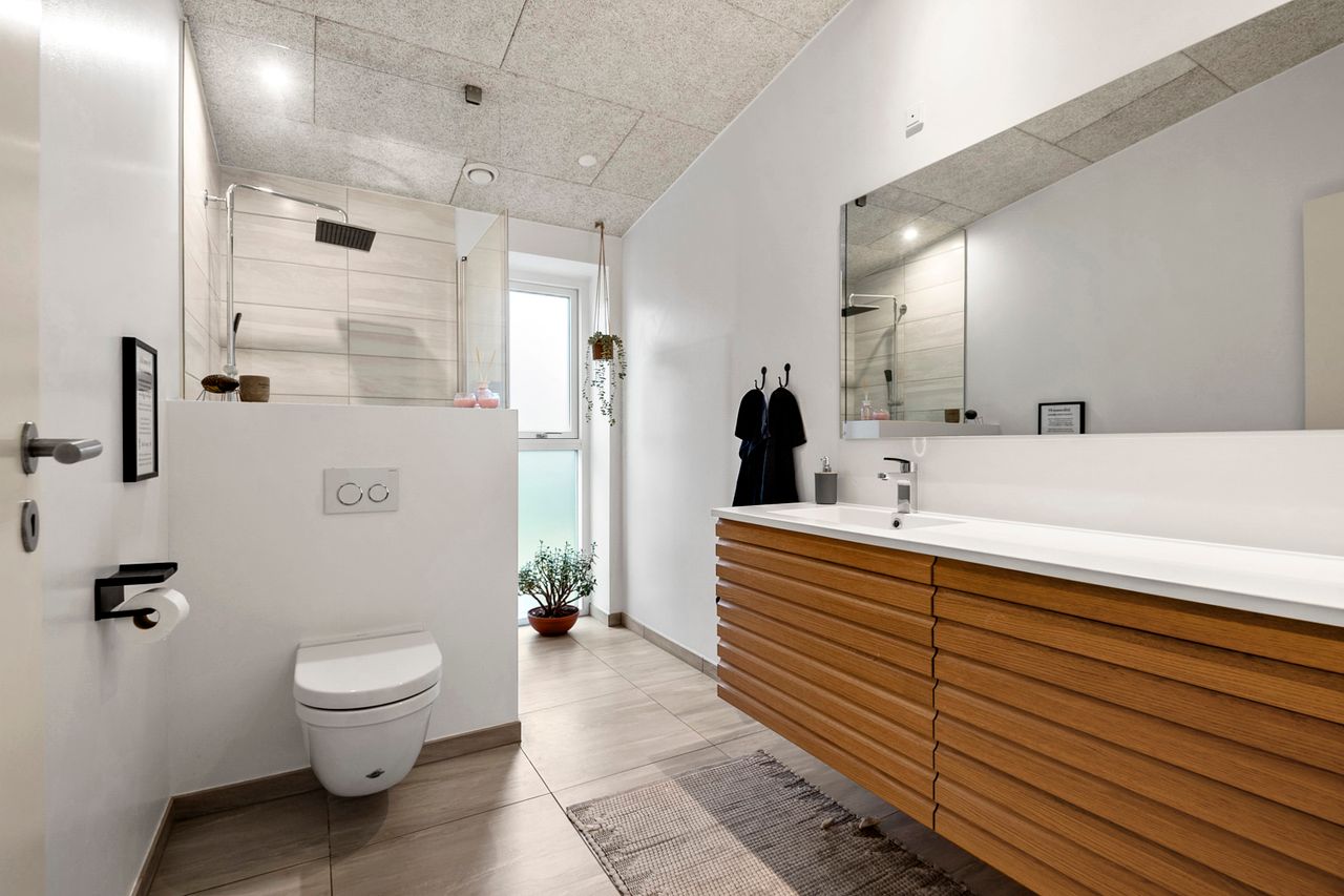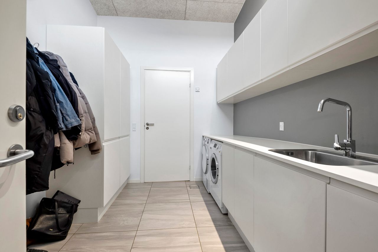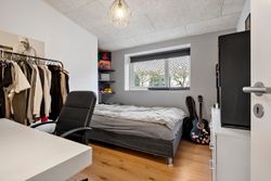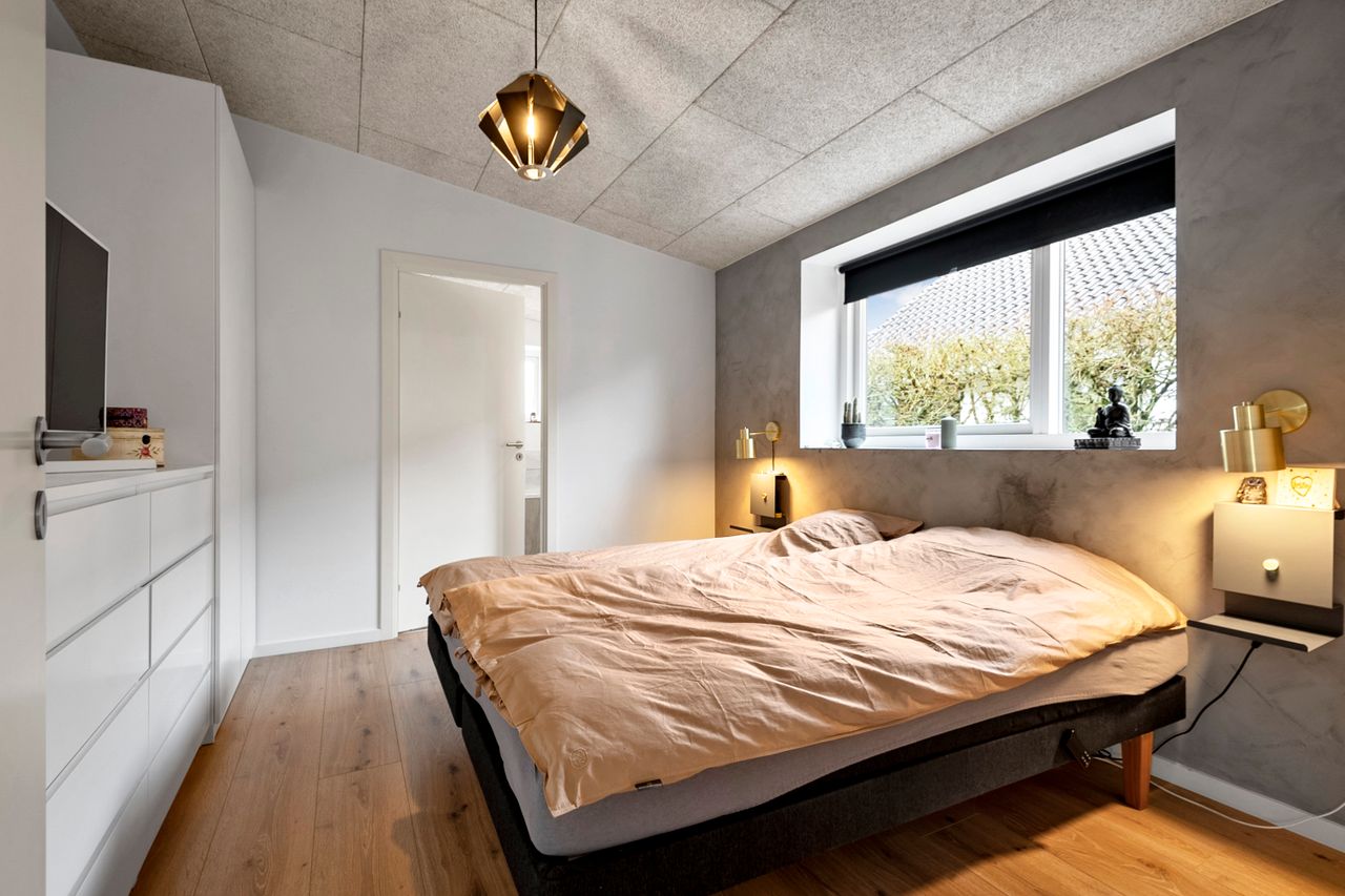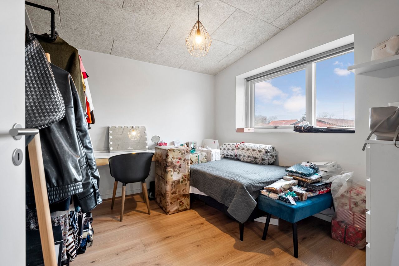 Boligen byder på en gennemtænkt planløsning med et stort bryggers samt fire store børneværelser, der er samlet omkring et stort badeværelse. Forældreafdelingen er separat og indeholder et rummeligt soveværelse med direkte adgang til et stort og lyst badeværelse, hvilket skaber en privat og rolig afdeling.