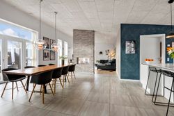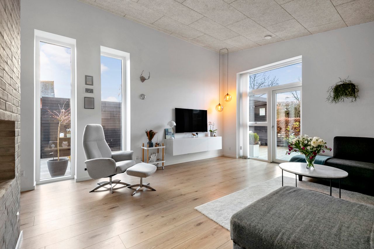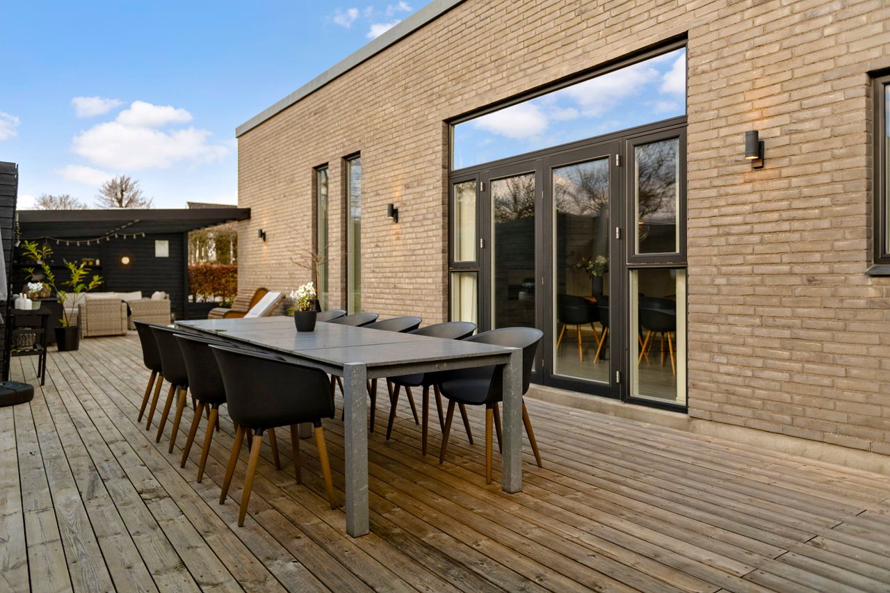 Villaen rummer 184 m2 og er opført med integreret garage, gulvvarme i hele huset samt genvex-anlæg, der sikrer et behageligt indeklima året rundt. Boligens hjerte er det lyse køkken, som ligger i åben forbindelse med den rummelige spiseplads. Herfra er der udgang til den store, lækre træterrasse og den solvendte have, som indbyder til hyggelige stunder udendørs. Spisepladsen har samtidig åben adgang til den hyggelige stue, som er smukt opdelt af en stemningsfuld biopejs.
