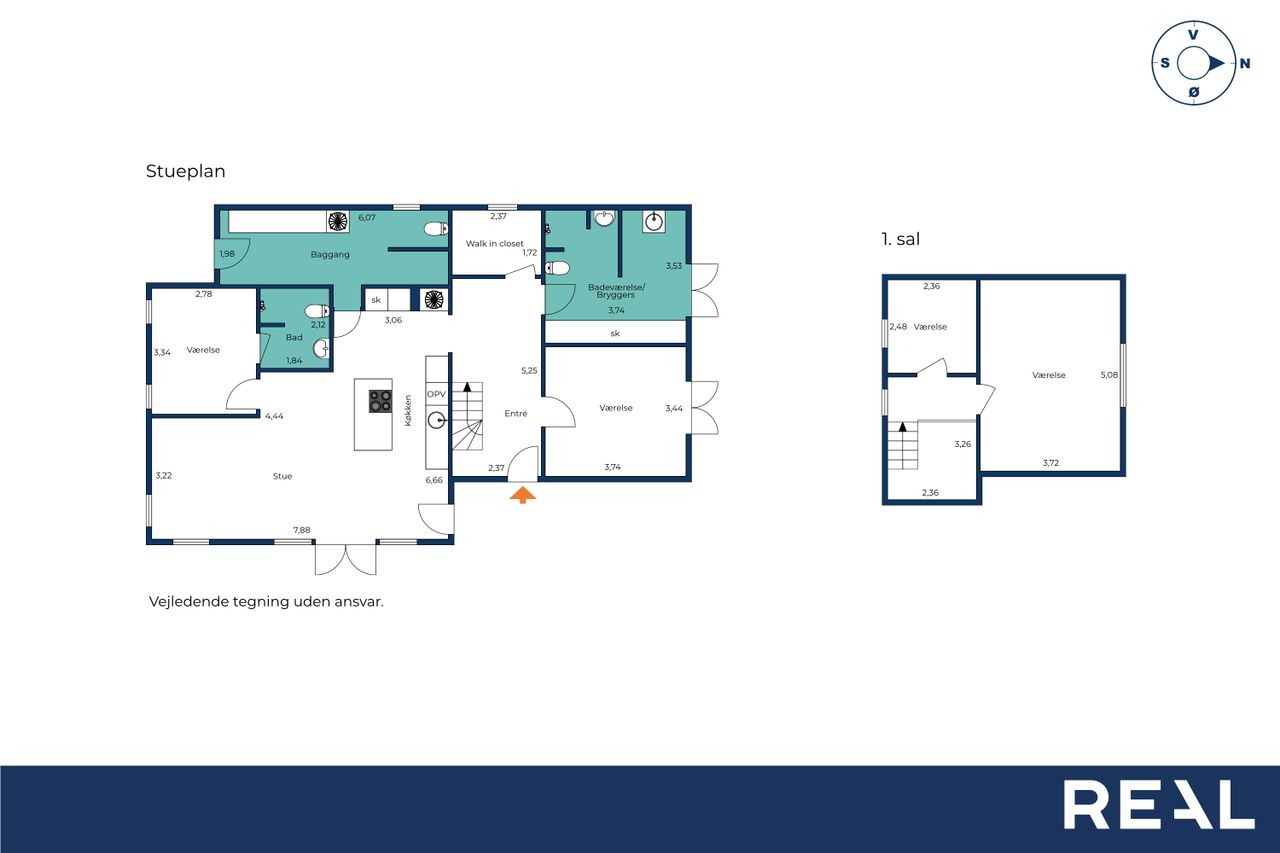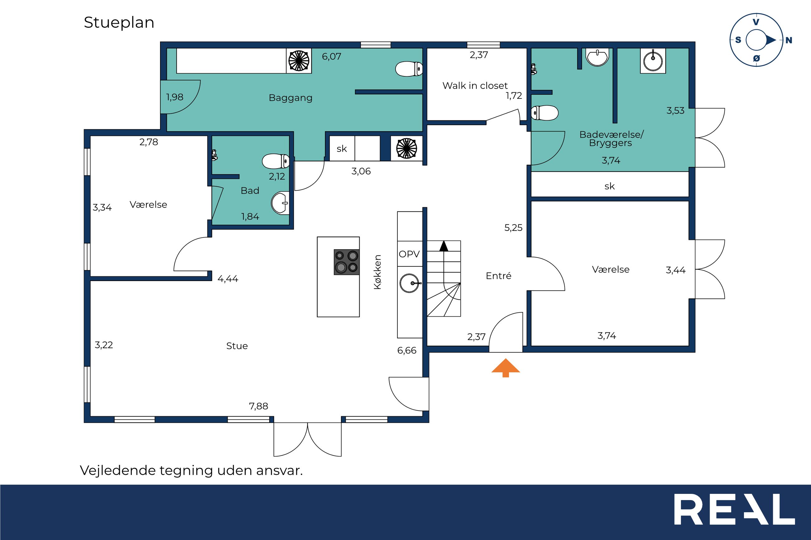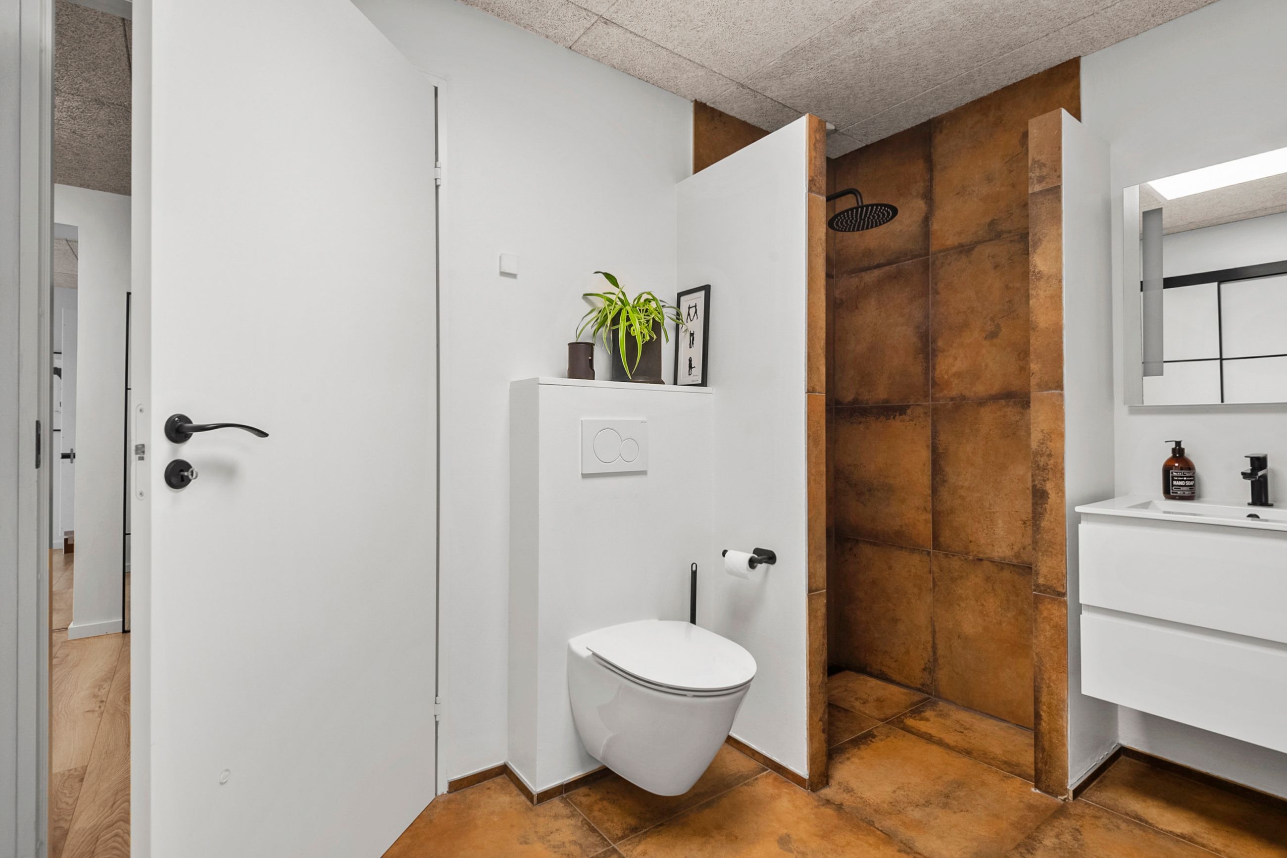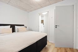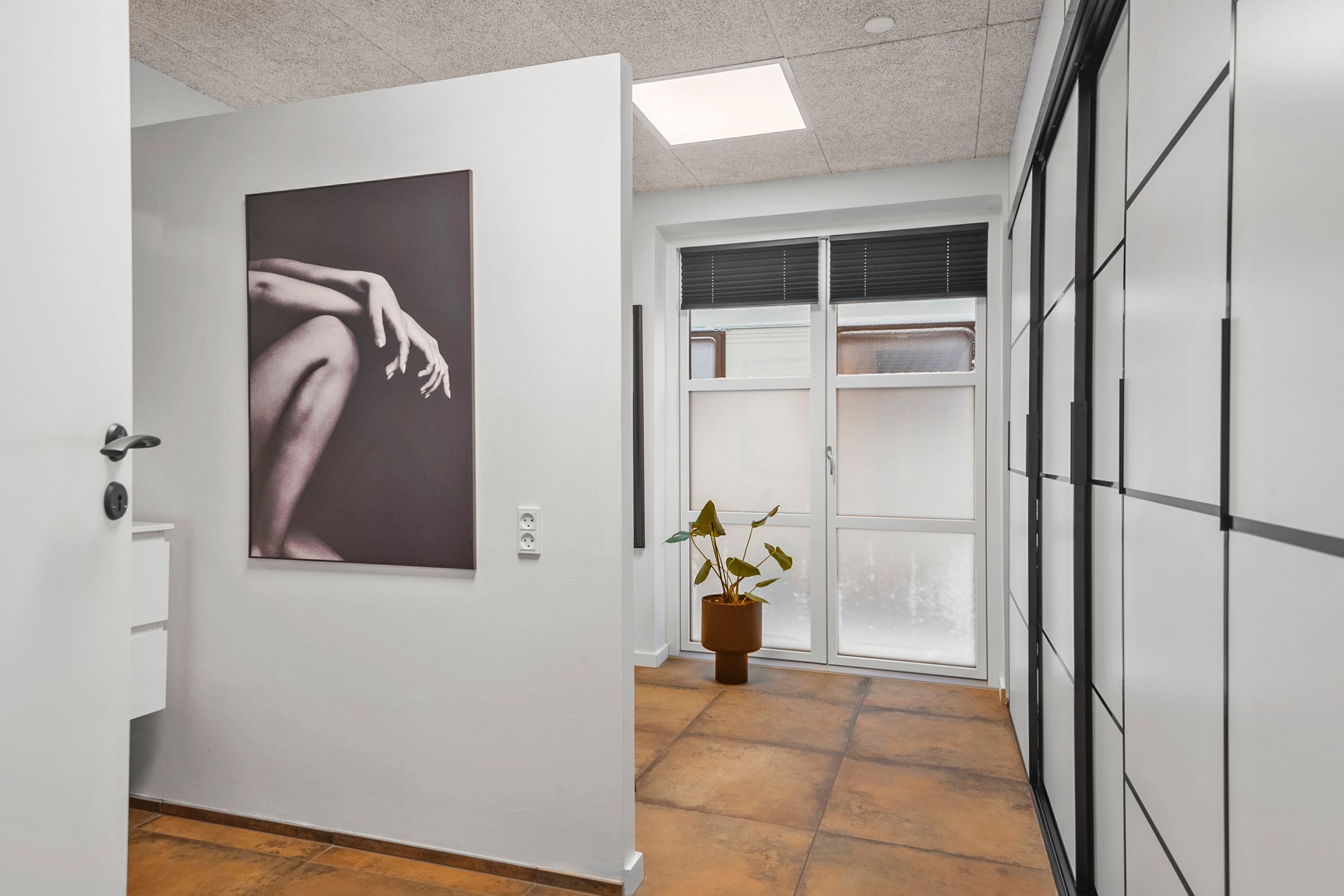 Indenfor bydes du velkommen i en rummelig entré med god plads. Herfra er der adgang til et stort værelse, et moderne og rummeligt badeværelse samt et praktisk walk-in-closet.