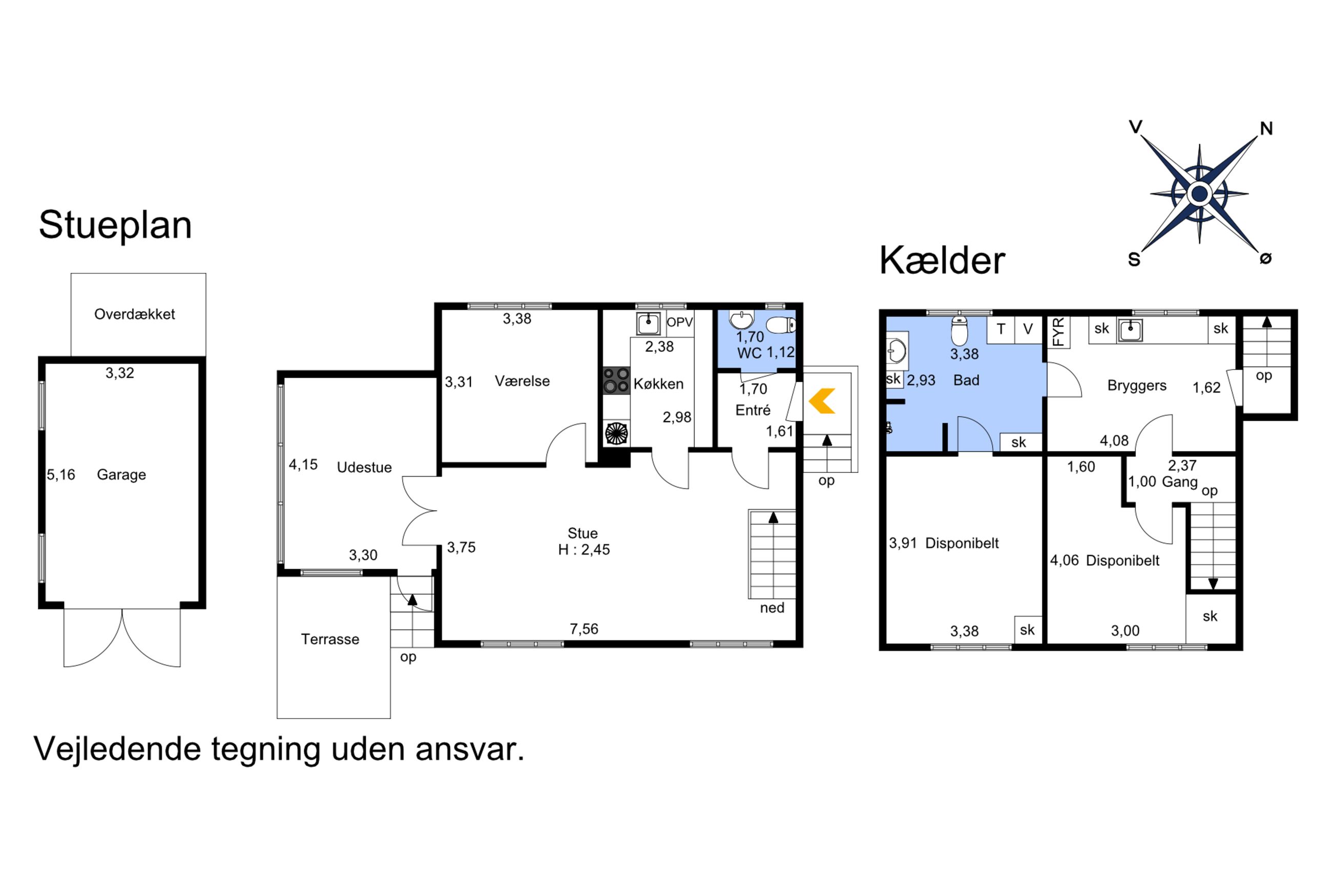 I kælderen findes 2 disponible rum, som begge er blevet brugt til værelser. Disse er dog ikke registreret