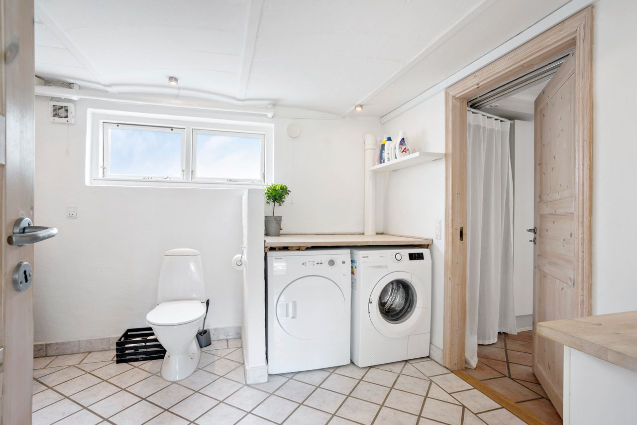 Et stort badeværelse og et godt bryggers med plads til vaskefaciliteter.
