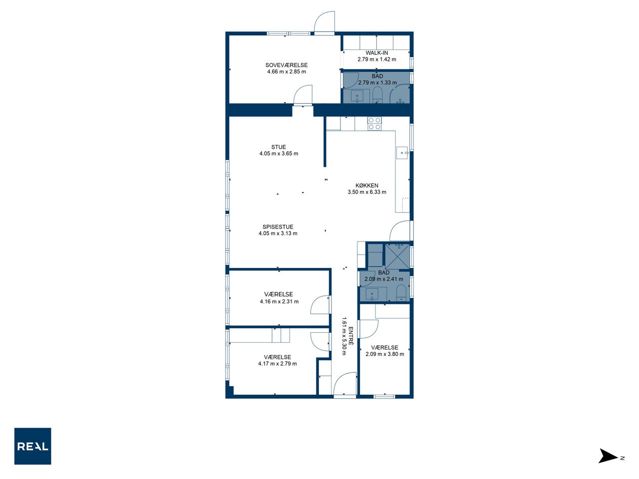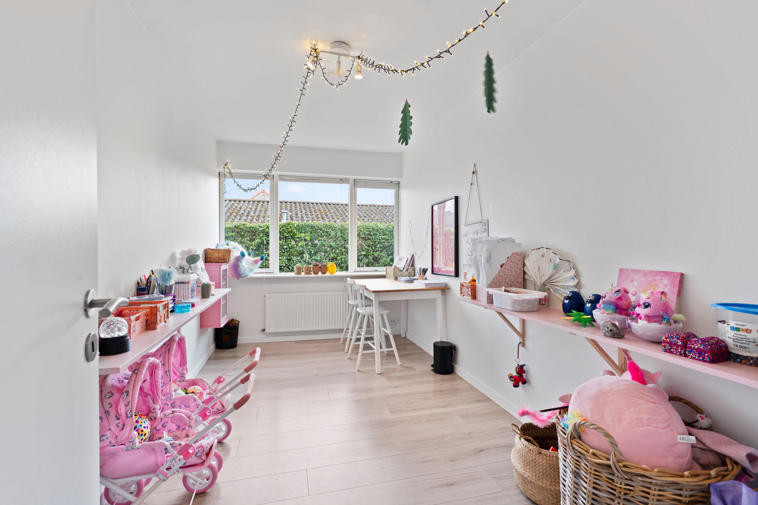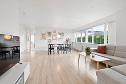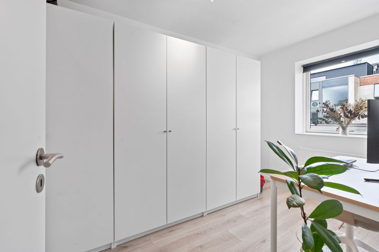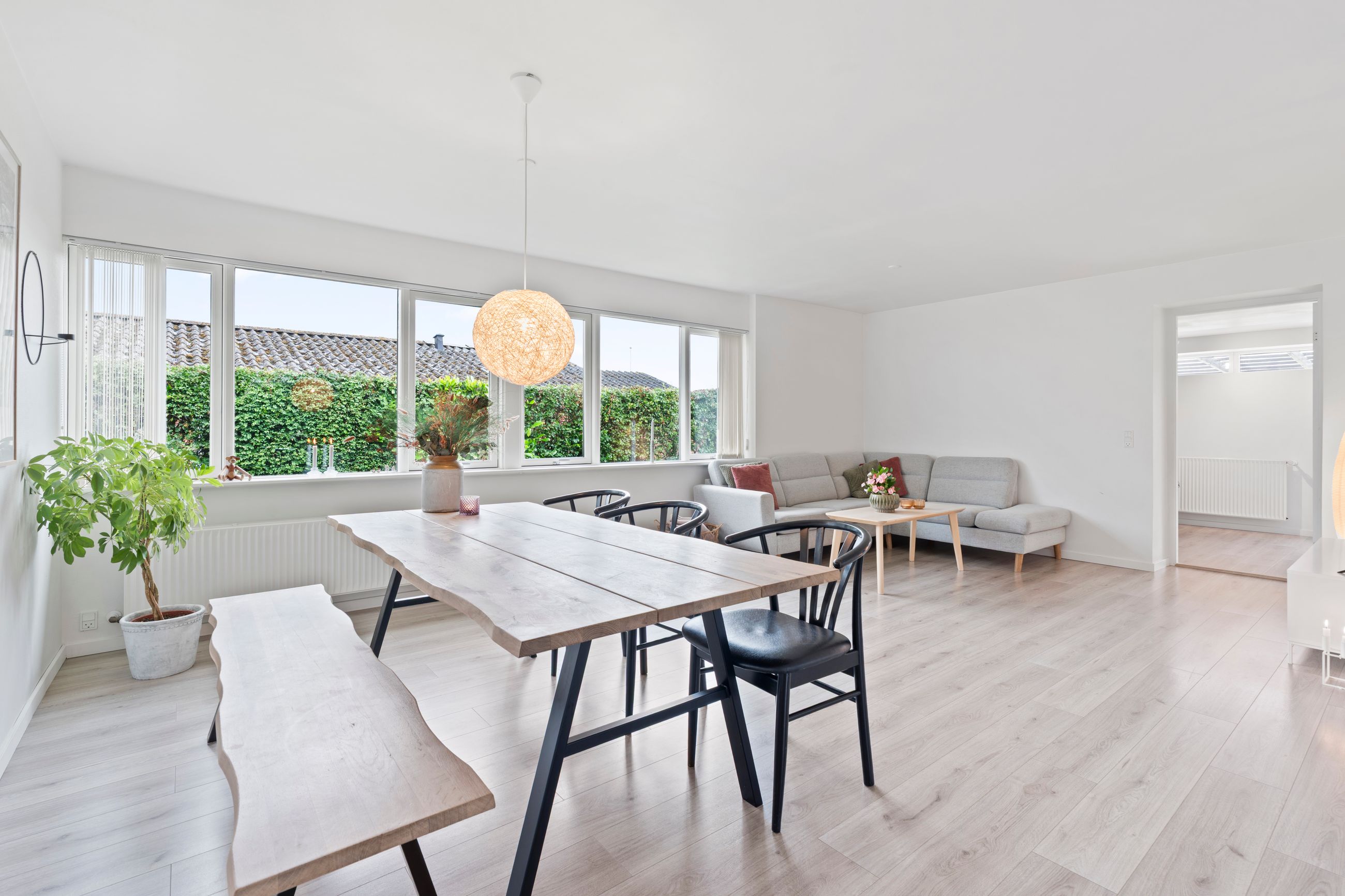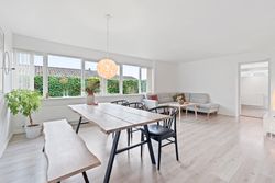 Planløsningen er gennemtænkt med separat forældre- og børneafdeling – perfekt til børnefamilien. I alt rummer boligen fire værelser, to badeværelser samt et stort, lyst og åbent køkken-alrum og stue i ét – husets naturlige samlingspunkt.