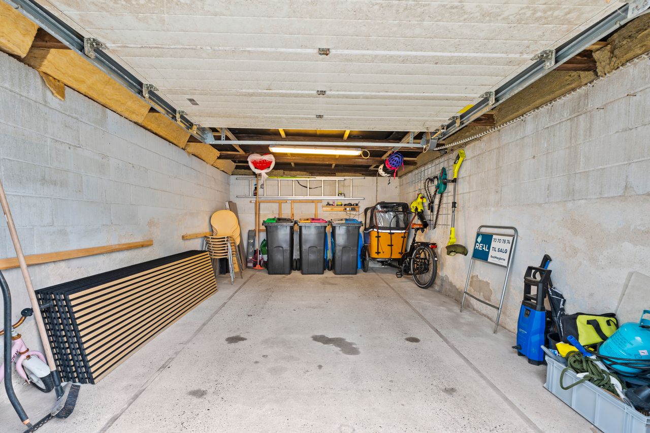 Til huset hører også en god garage, ideel til både bil, opbevaring eller hobby.