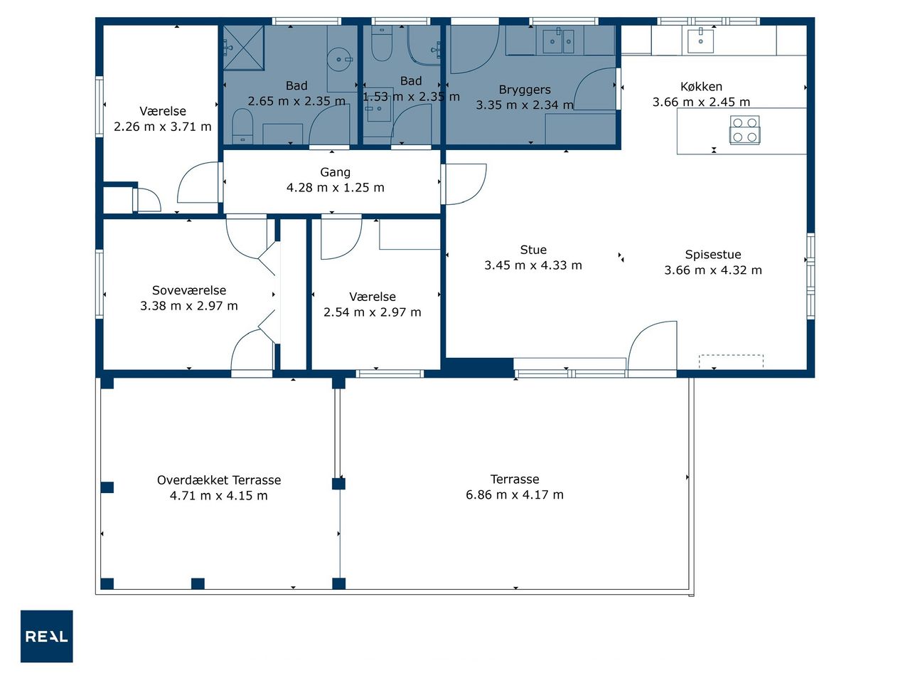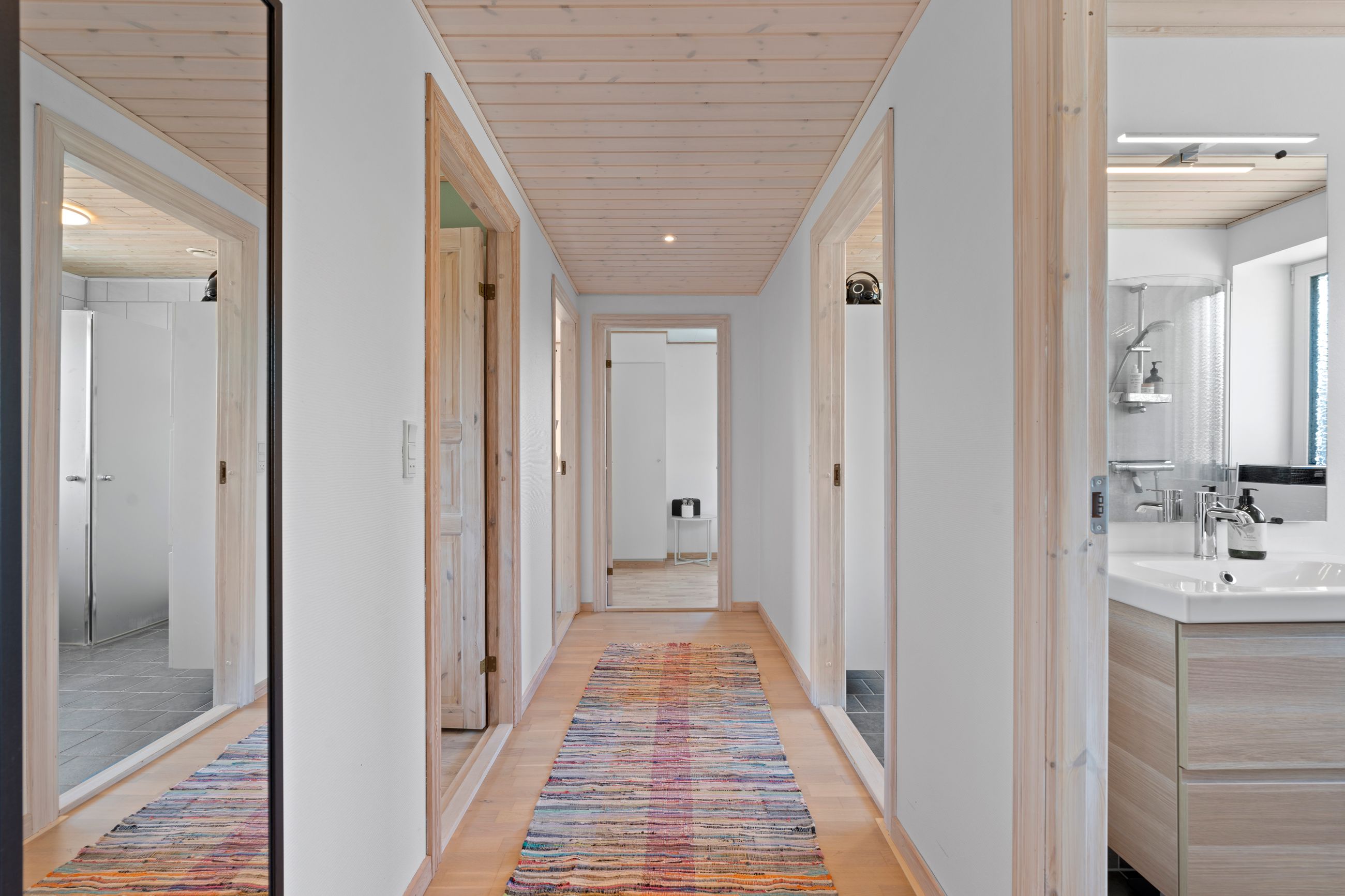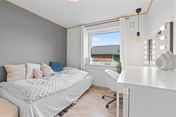 Planløsningen byder desuden på tre regulære værelser og hele to badeværelser. Det ene badeværelse er opført i 2021, mens det andet blev renoveret i 2006 – begge fremstår i pæn og moderne stand. Det gør boligen oplagt til både familier, par og enlige med behov for ekstra plads.