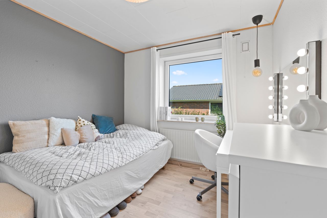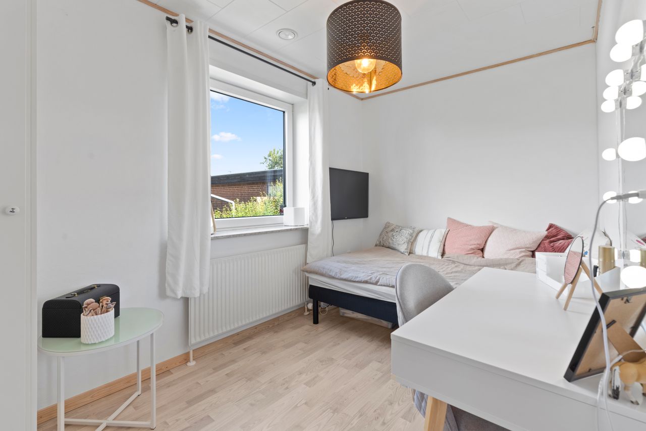 Alt i alt en bolig, der kombinerer hjemlig hygge, funktionel indretning og tryg beliggenhed. Her får du en sjældent helstøbt ramme om hverdagen – både ude og inde.
