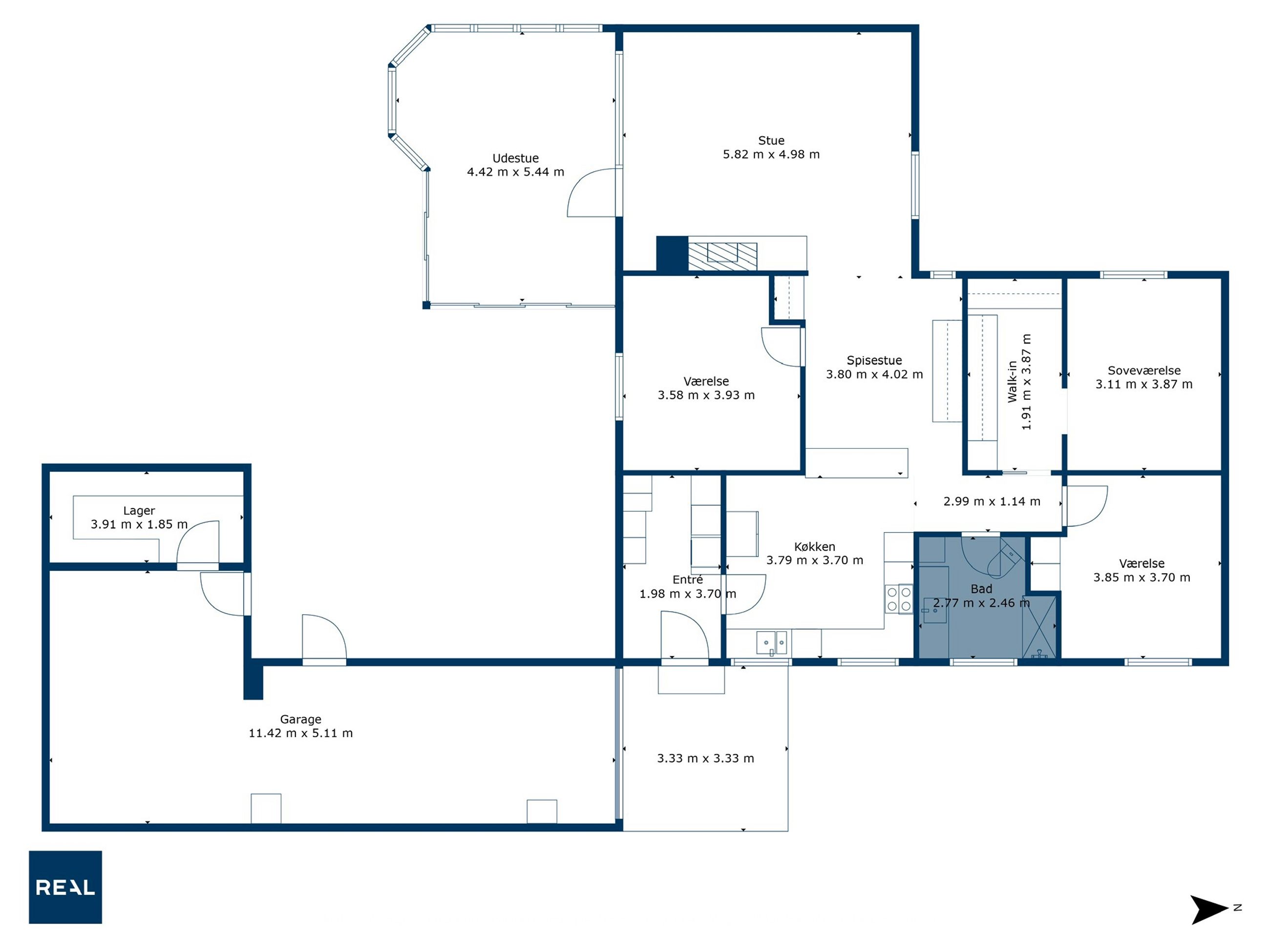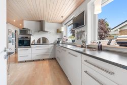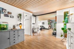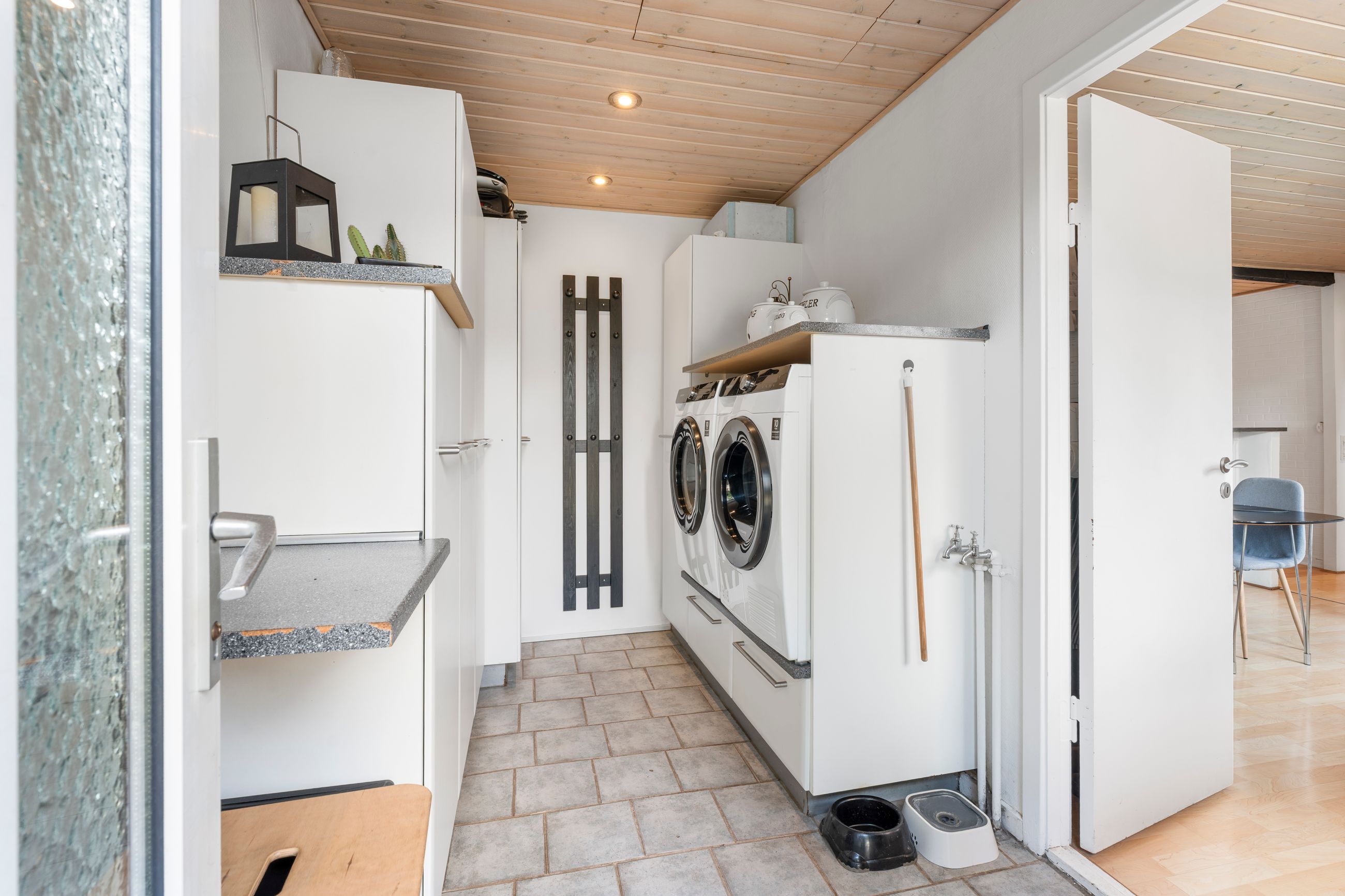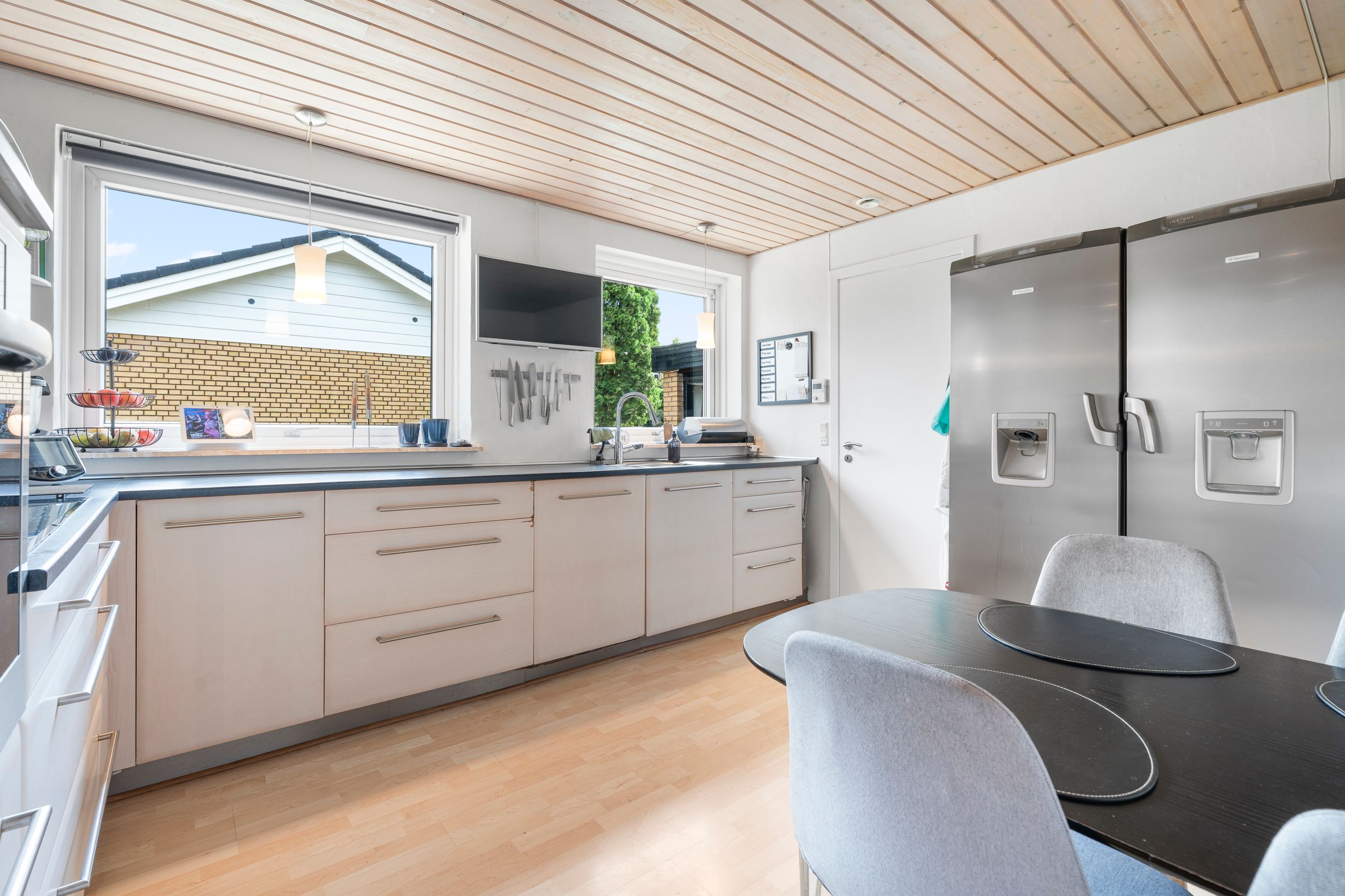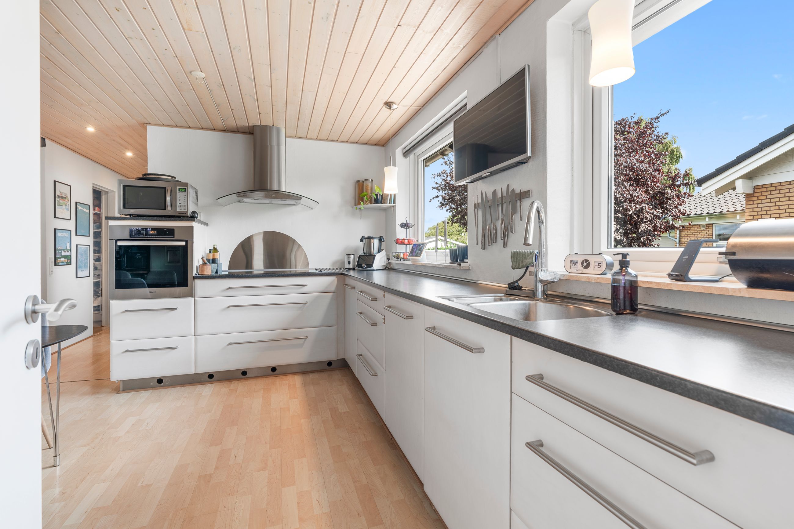 På Starup Fjordvej 14 finder I en velindrettet etplansvilla på 133 m2 med en planløsning, der passer perfekt til familien. Her er tre gode værelser og et stort køkken-alrum, som fungerer som boligens naturlige hjerte. Herfra er der direkte adgang til den 24 m2 store udestue fra 2012, hvor I kan nyde et skønt lysindfald og en afslappet atmosfære året rundt.
