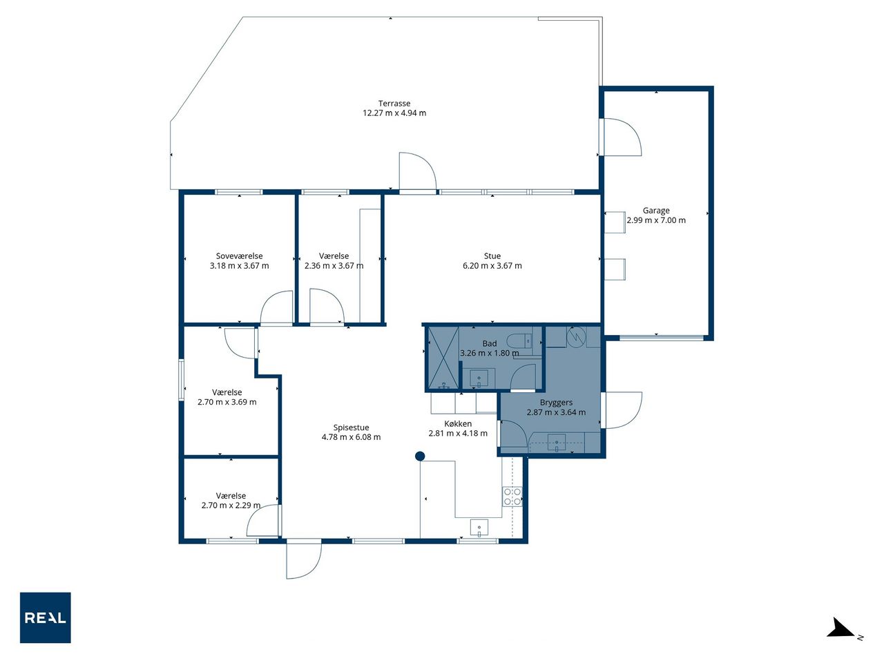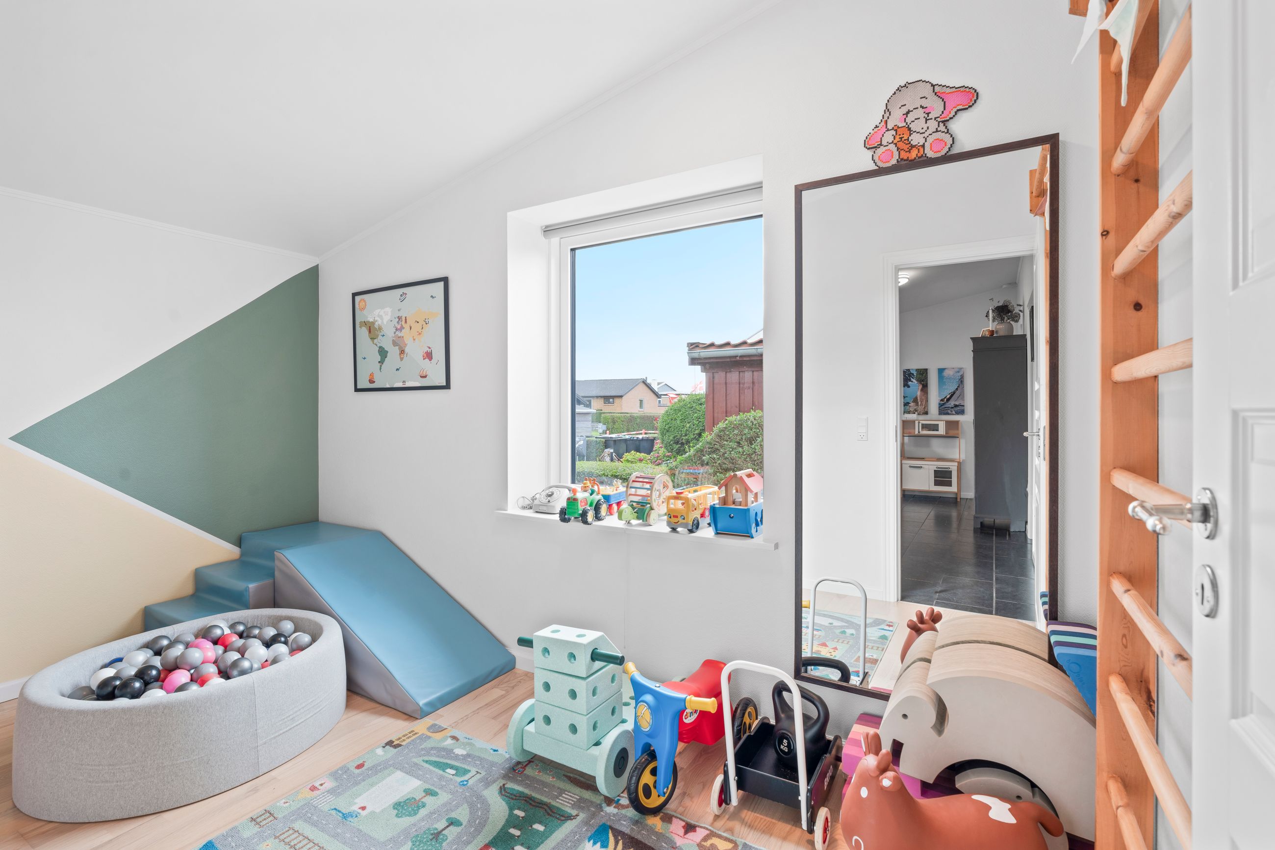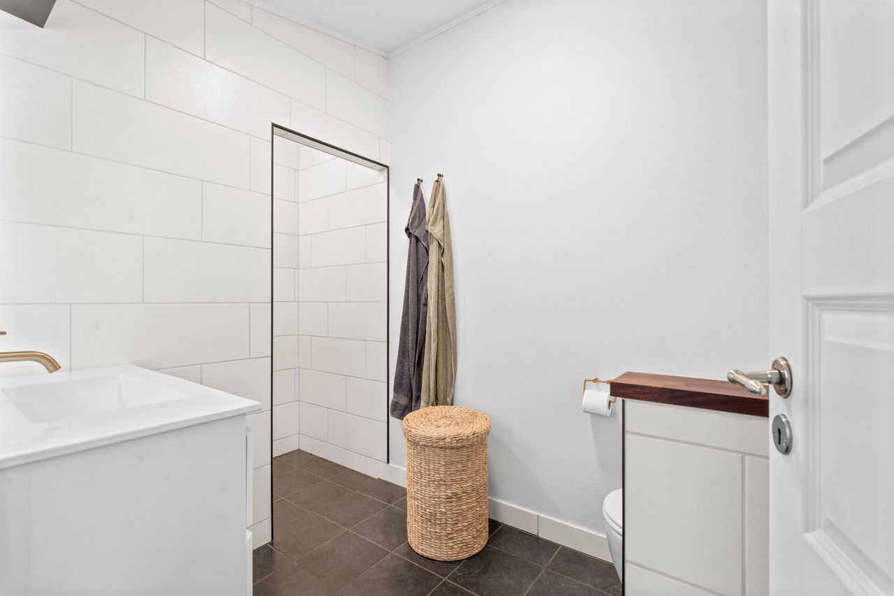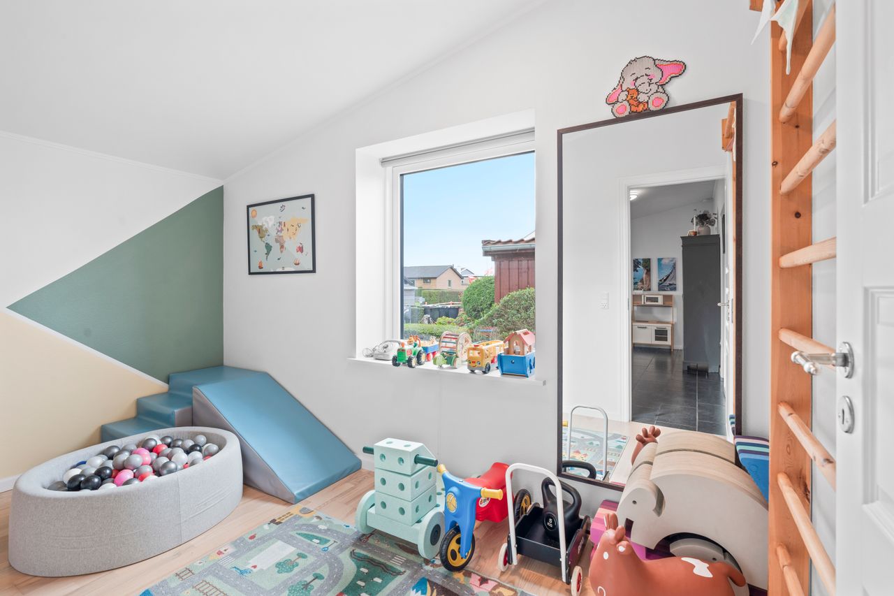 Der er tre gode værelser, som alle er regulære og nemme at indrette, uanset om det skal være børneværelser, gæsteværelse eller soveværelse. Hertil kommer et ekstra kontor, der giver dig mulighed for hjemmearbejdsplads, hobbyrum eller legeområde alt efter behov.