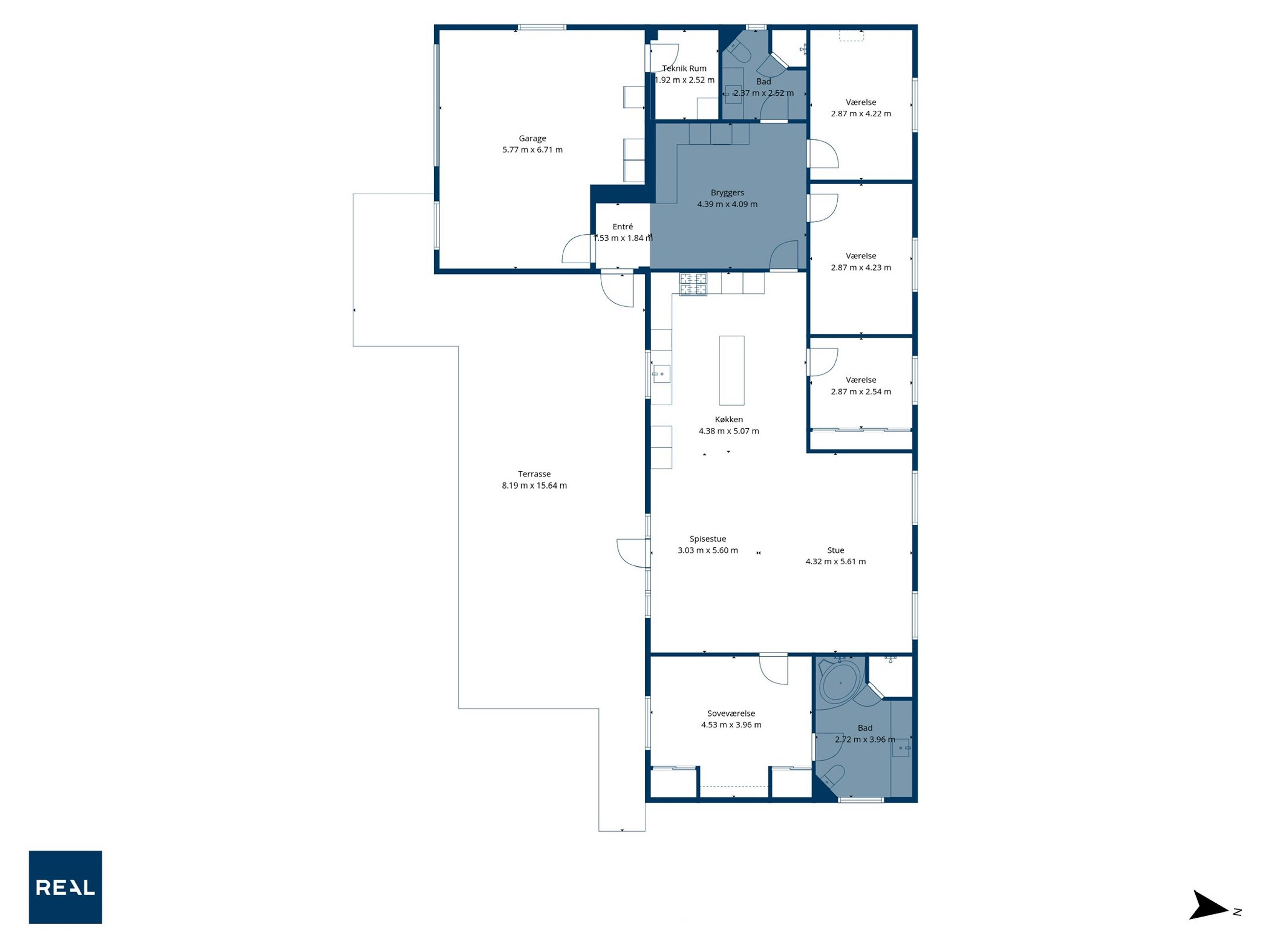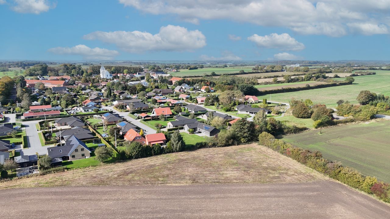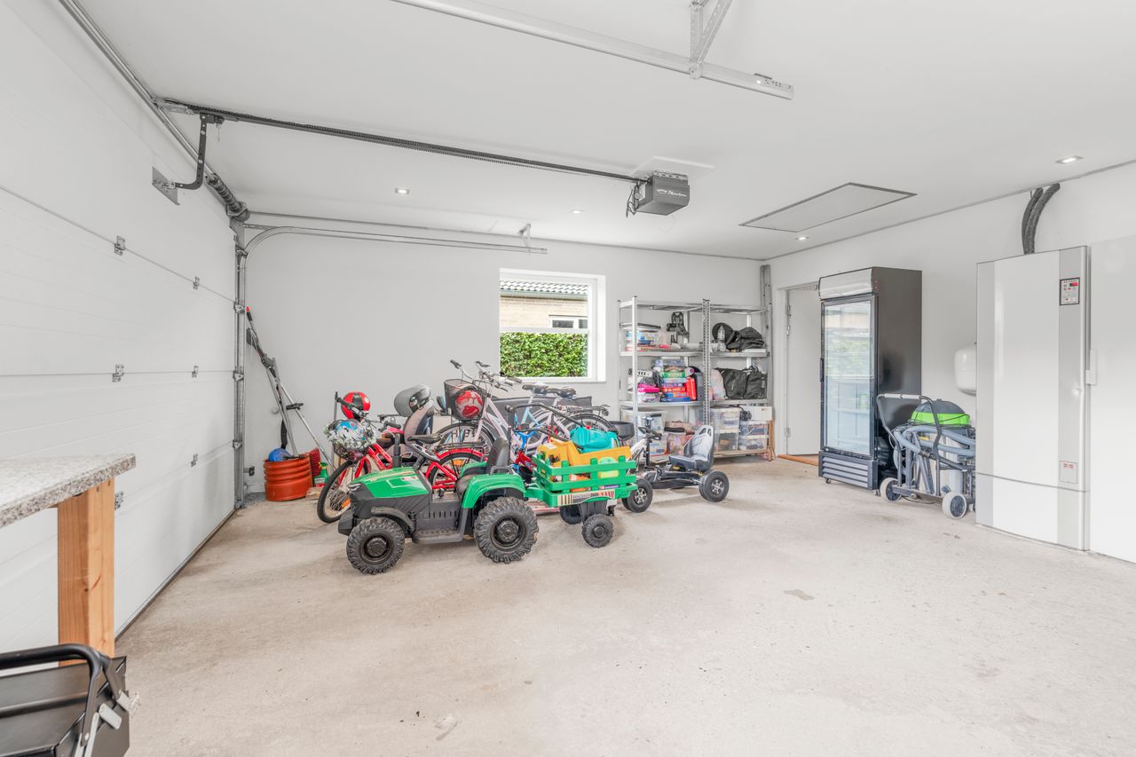 Ejendommen er opført på en 1.340 m2 stor grund, og huset rummer 184 m2 boligkvadratmeter med gulvvarme i hele huset. Hertil kommer en integreret garage og udhus som naturligvis også er med gulvvarme – perfekt til både parkering, opbevaring og hobby.