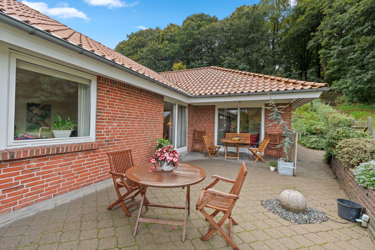Velkommen til Bøgely 35 – en ejendom der kombinerer privat, naturrig beliggenhed med en central adresse i Haderslev. Her får I et hjem, hvor hverdagen fungerer med plads til hele familien og med naturen som nærmeste nabo, samtidig med at byens faciliteter ligger inden for kort afstand.