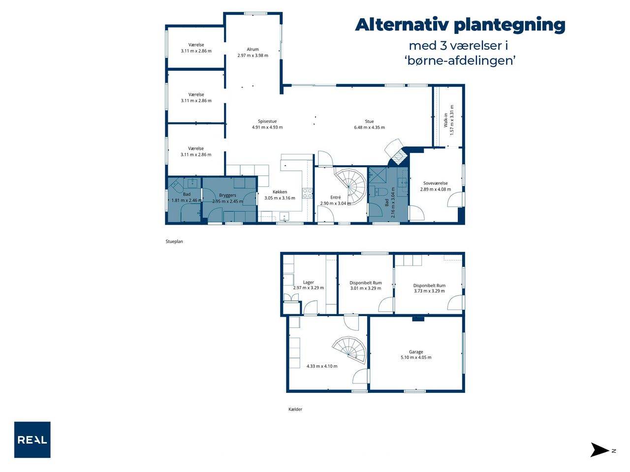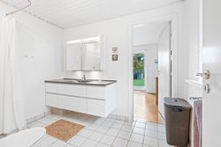 I den ene ende finder I en børneafdeling med to gode værelser samt et badeværelse. Fra fordelingsgangen er der desuden adgang til et praktisk bryggers.