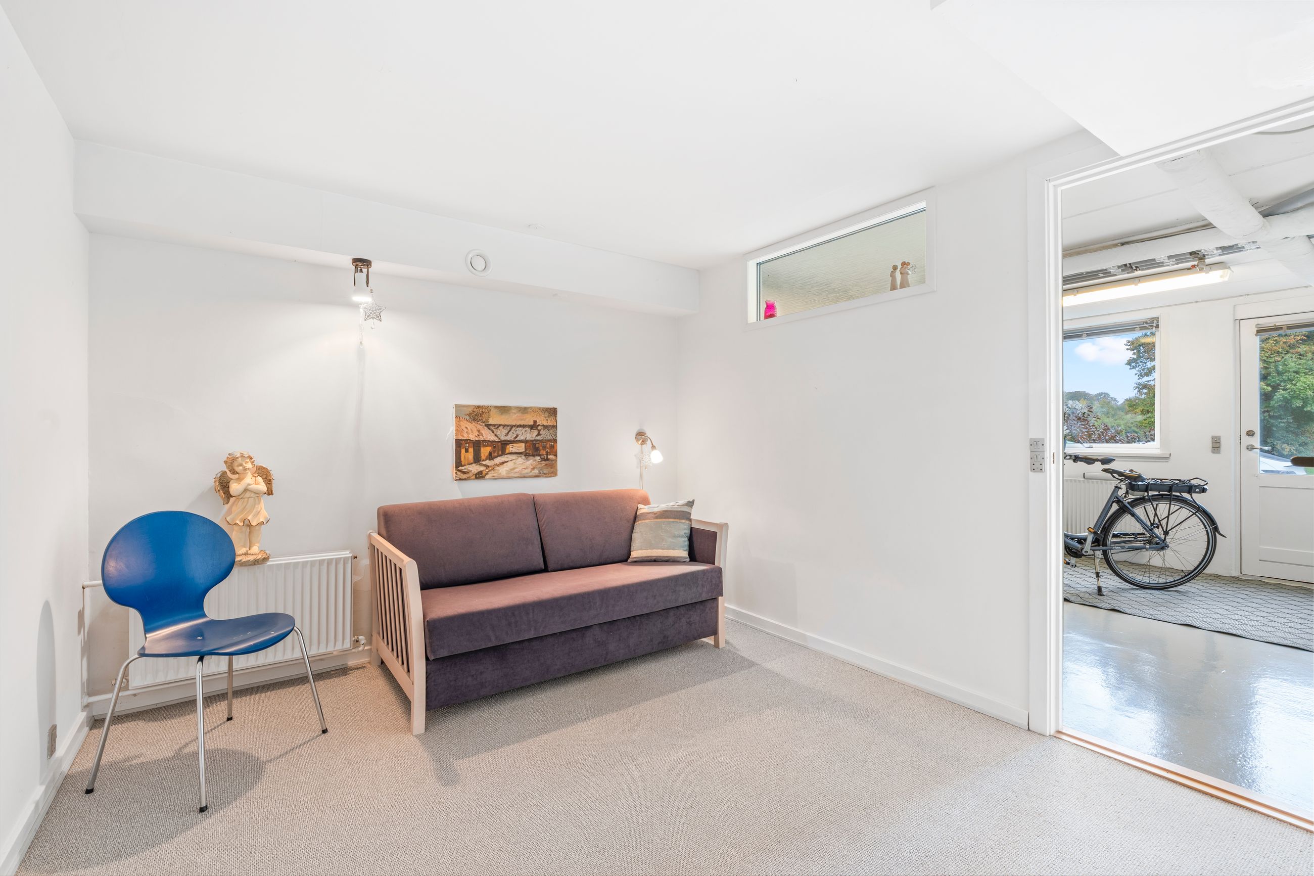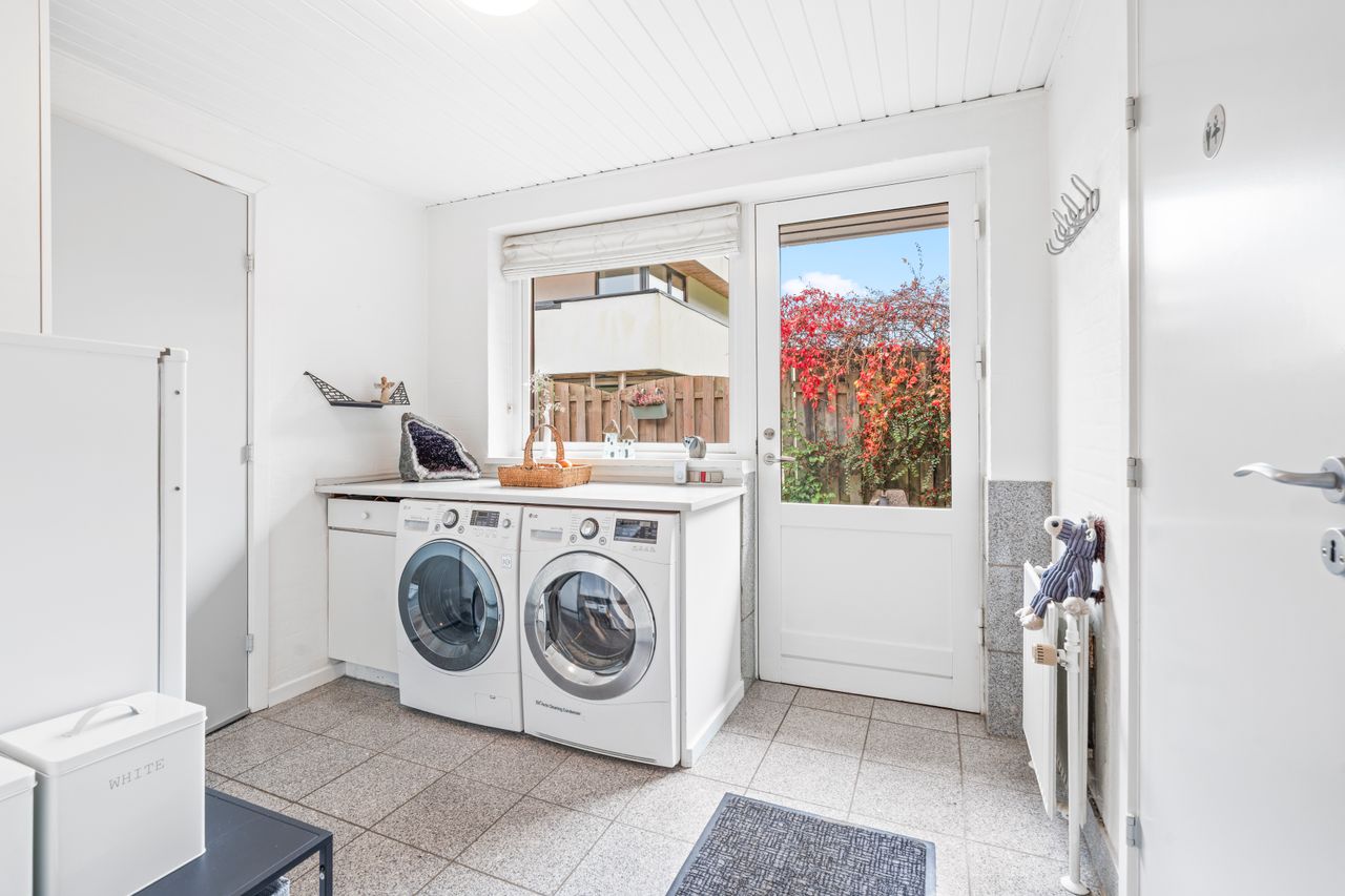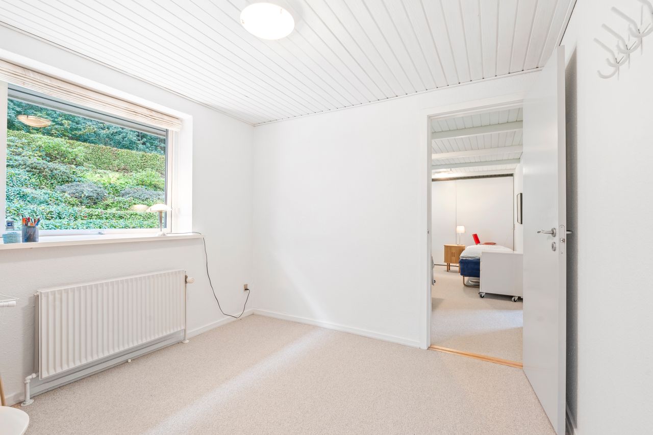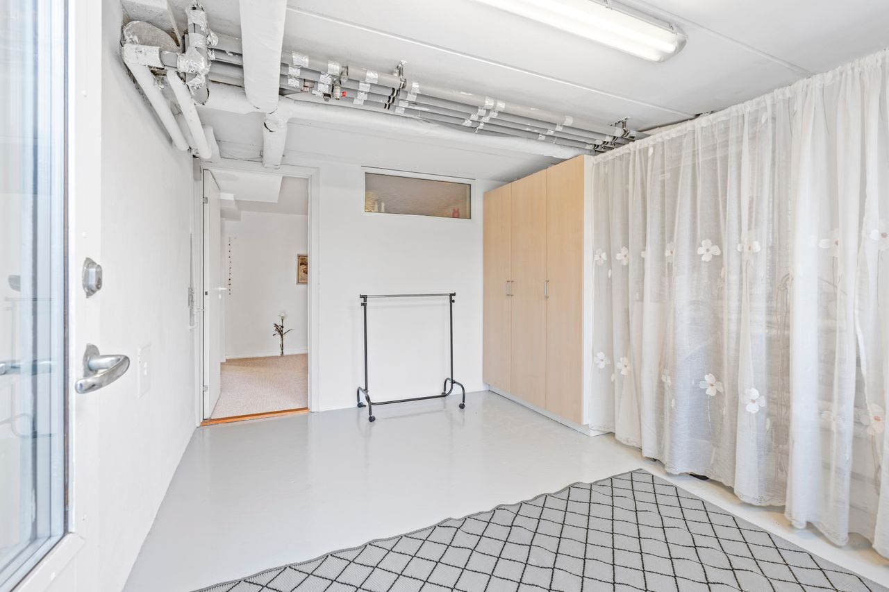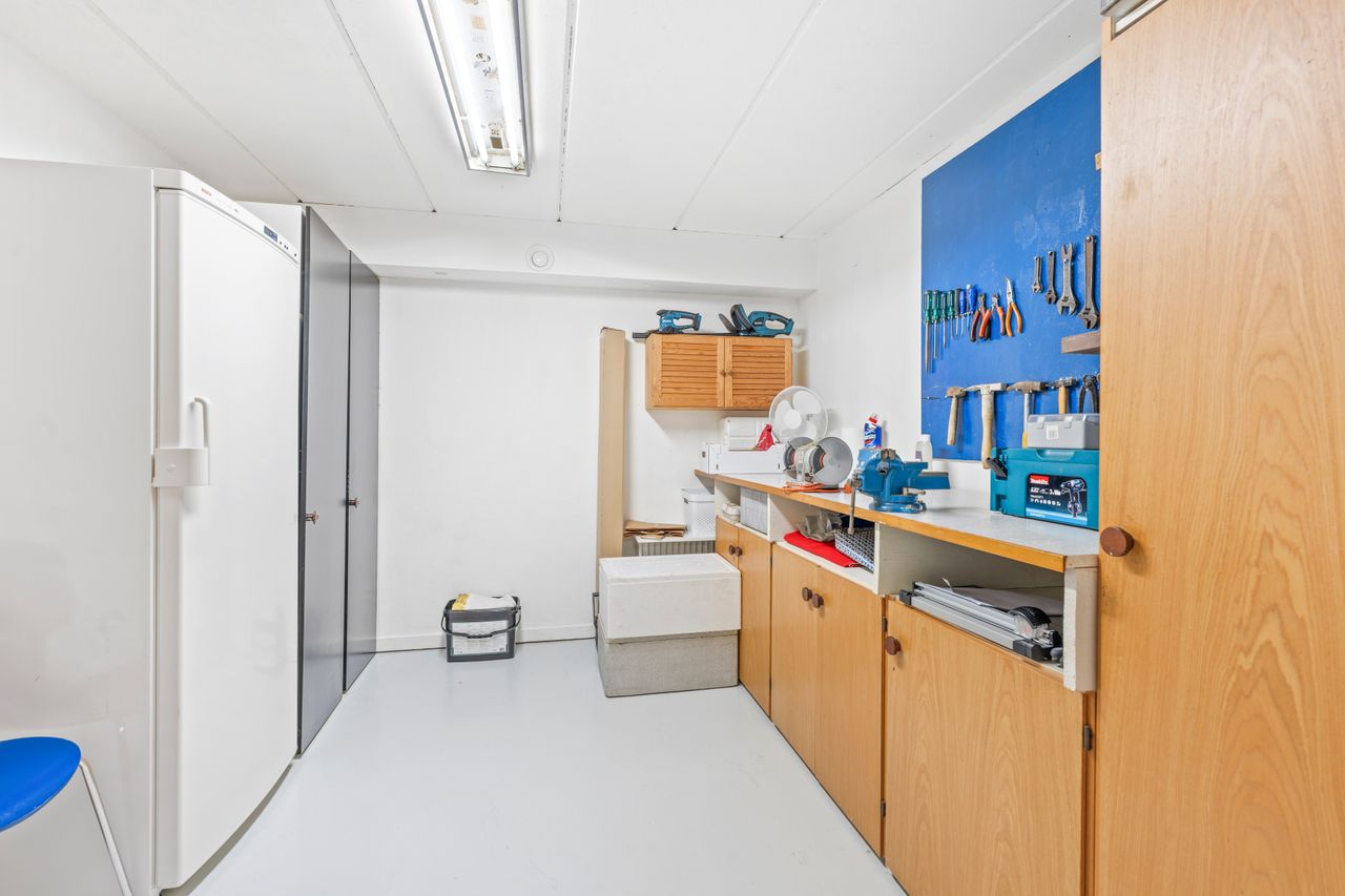Indretning – kælderEjendommen råder også over en rummelig kælder, der byder på flere disponible rum, som kan bruges til hobby, opbevaring eller hjemmekontor. Der er desuden et separat lagerrum samt en garage med direkte adgang, hvilket gør dagligdagen både nem og praktisk.