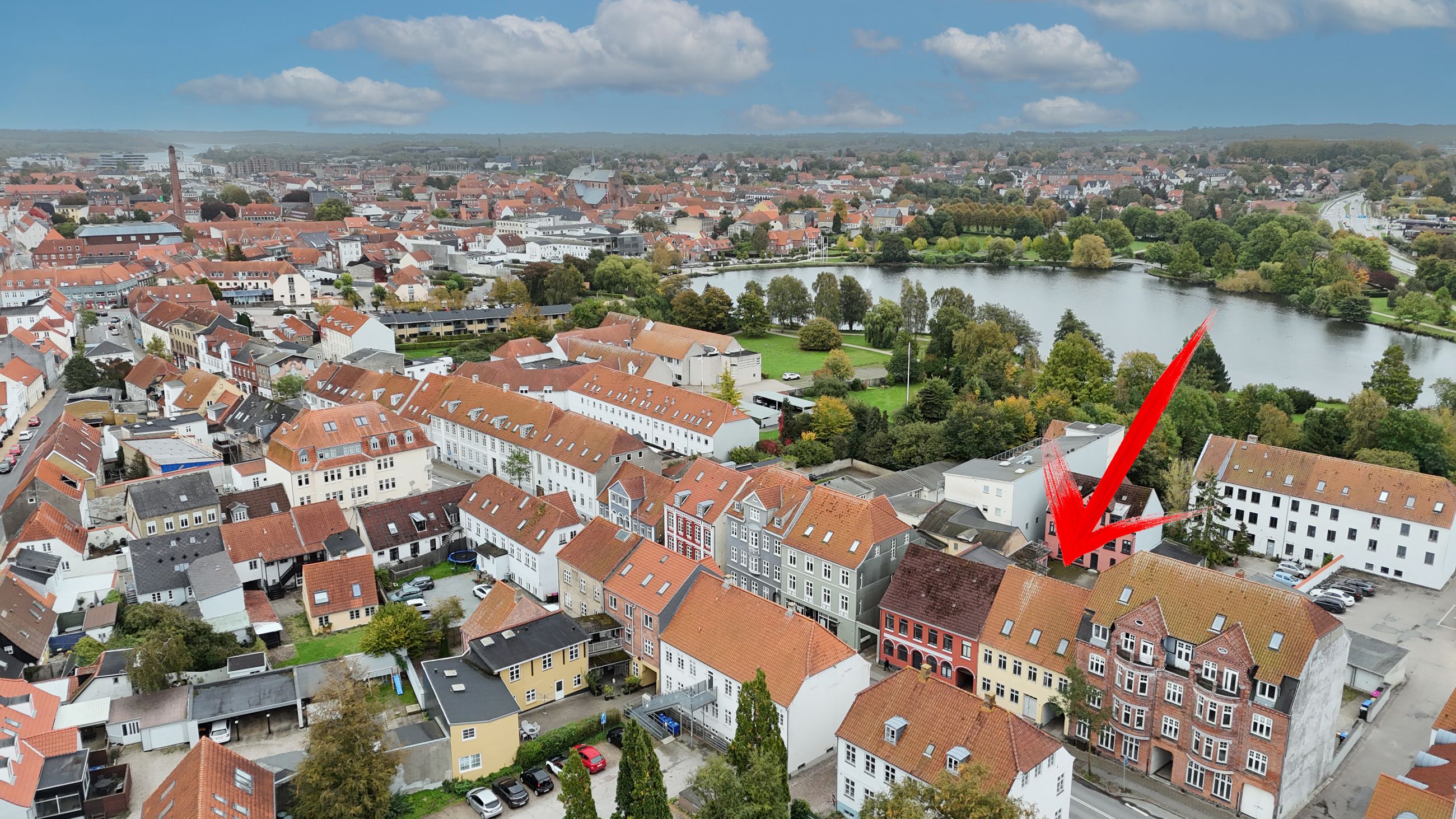En særdeles velholdt og lys lejlighed med masser af charme, god beliggenhed og mange muligheder – lige midt i Haderslev.