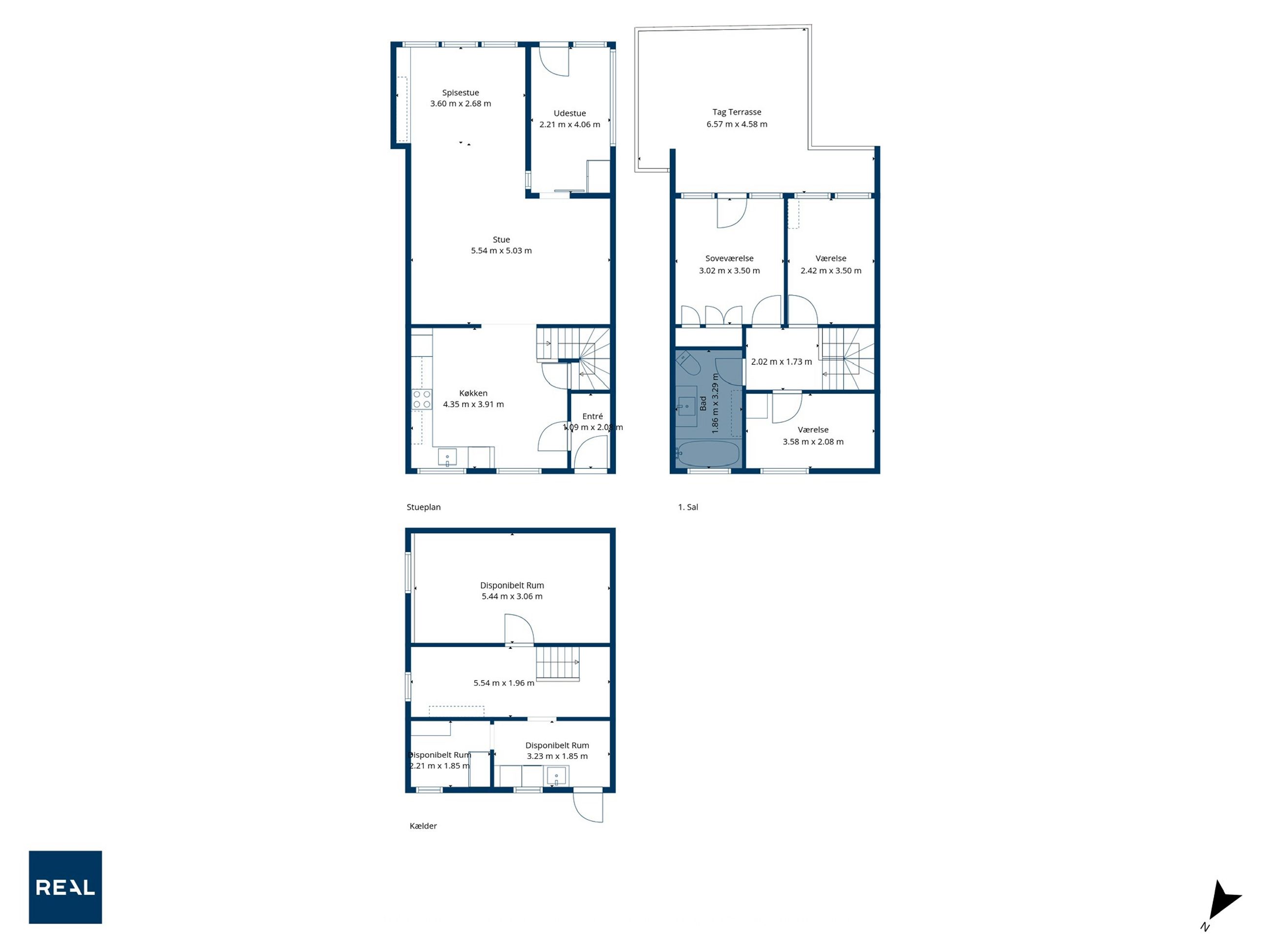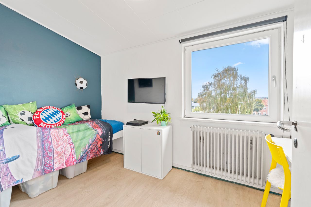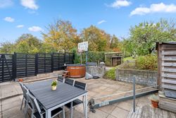 På førstesalen finder du tre gode værelser – heraf et soveværelse med direkte udgang til den skønne, sydvendte tagterrasse med udsigt over byen – samt et badeværelse, der ligeledes blev renoveret i 2009 og står pænt og tidssvarende.